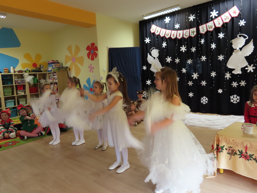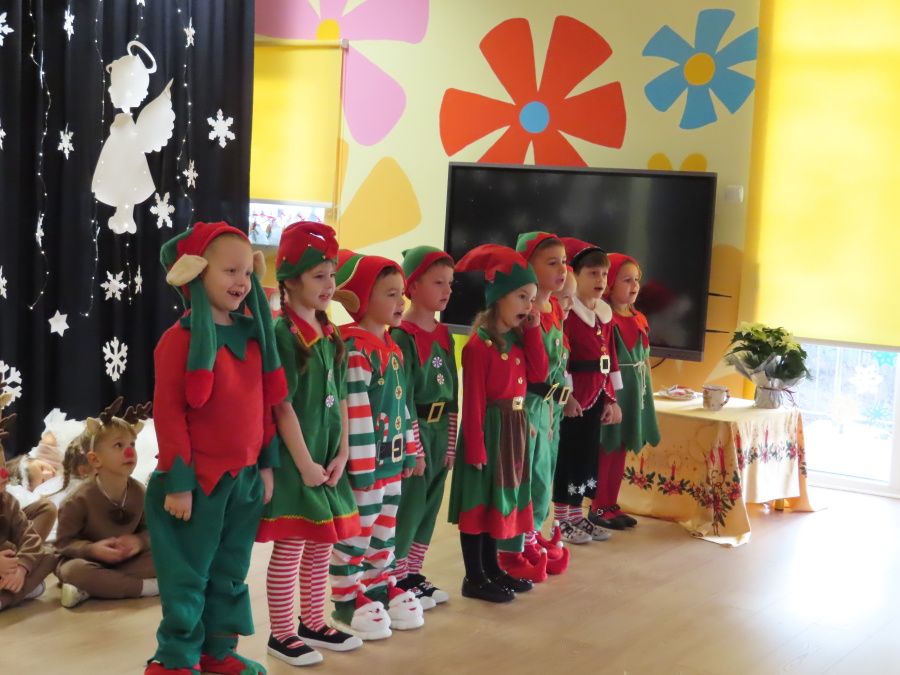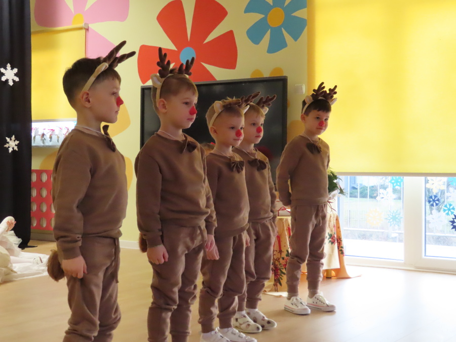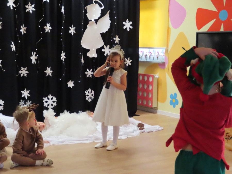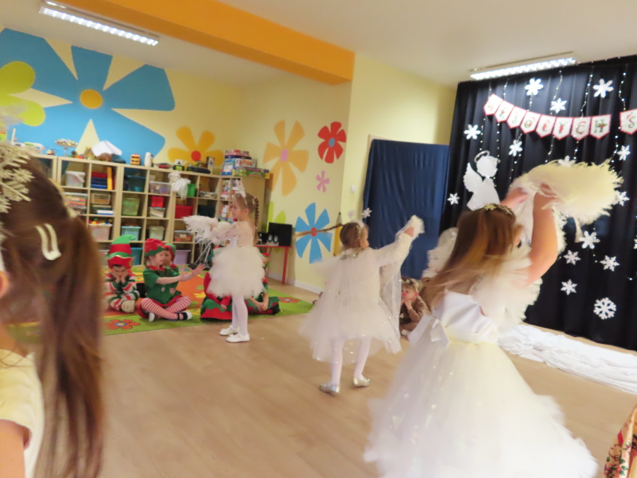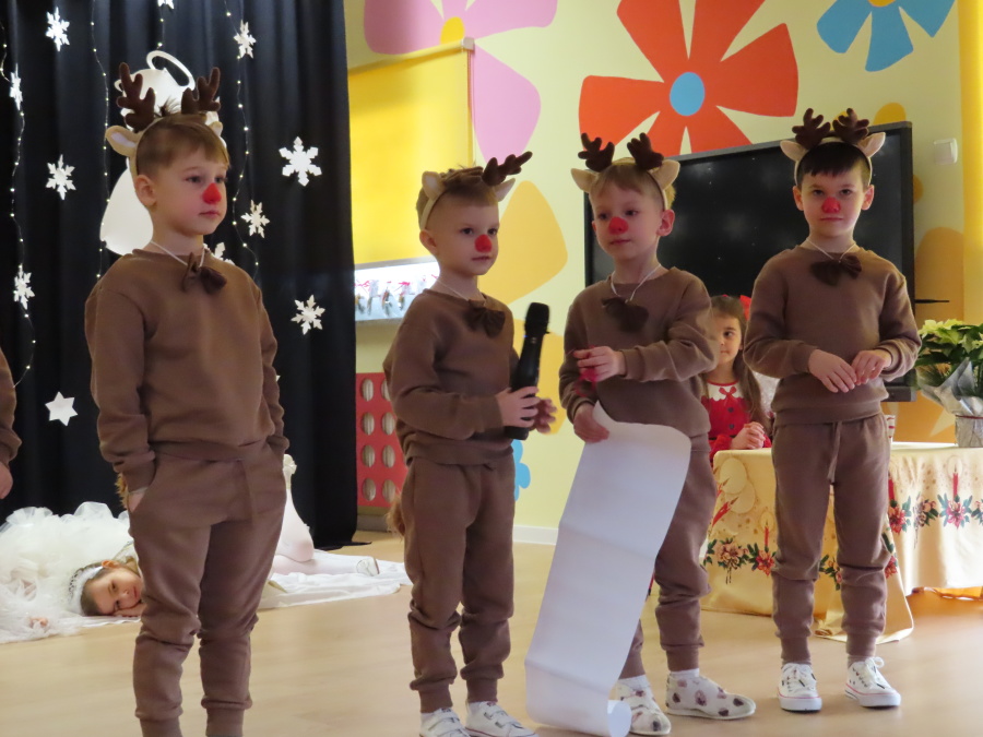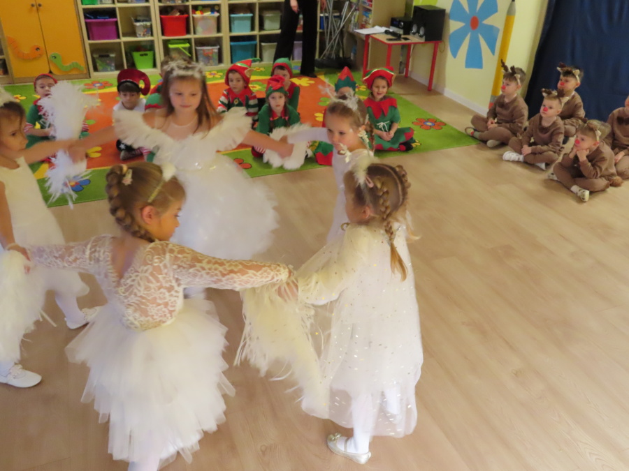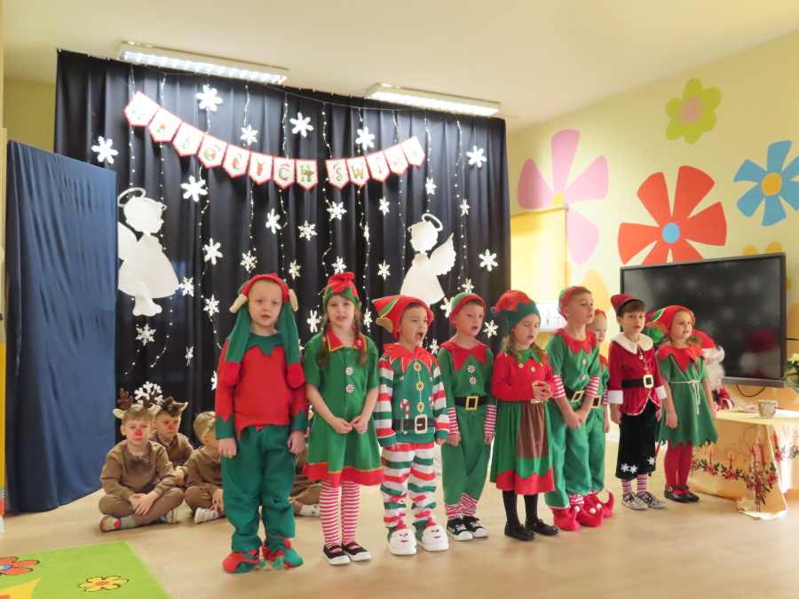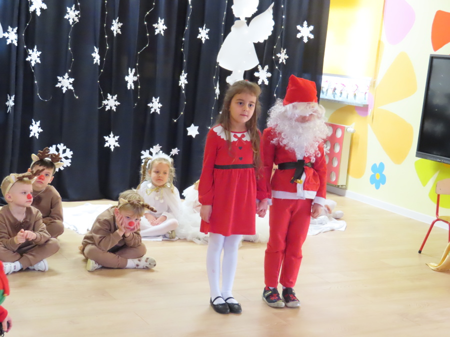 W dniu dzisiejszym Misie wystawiły dla rodziców wyjątkowe jasełka pt. ,, Zapominalskie Śnieżynki”. Na scenie pojawiły się śnieżynki, renifery, elfy oraz Mikołaj ze swoją żoną, którzy wspólnie wprowadzili wszystkich w świąteczny nastrój. Mali artyści z wielkim zaangażowaniem zaprezentowali swoje rolę, a występ został nagrodzony gromkimi brawami i uśmiechami wzruszonych rodziców.