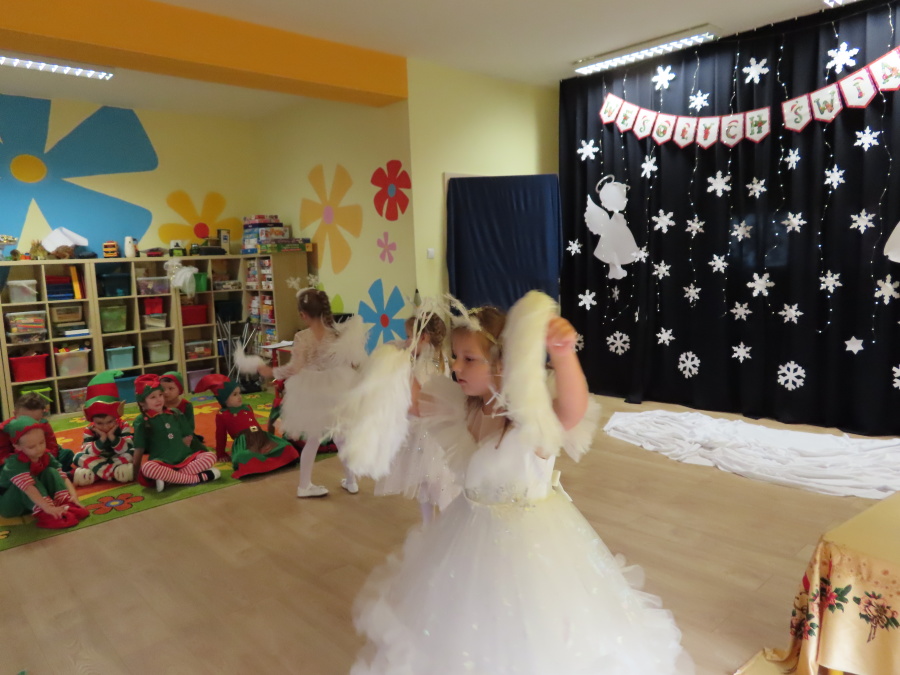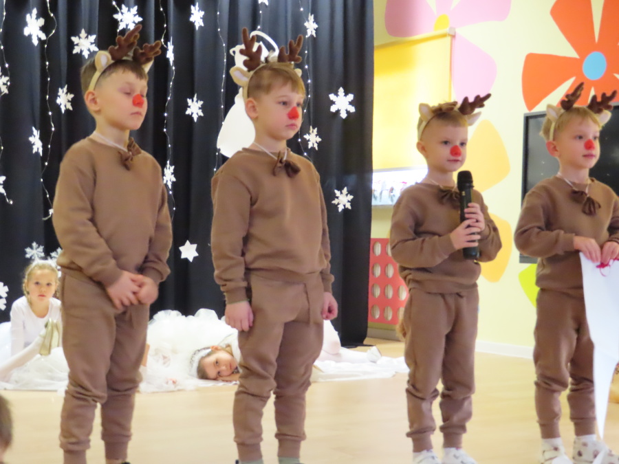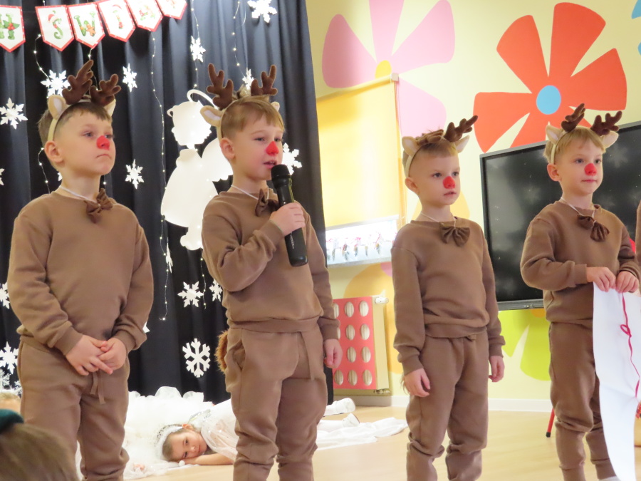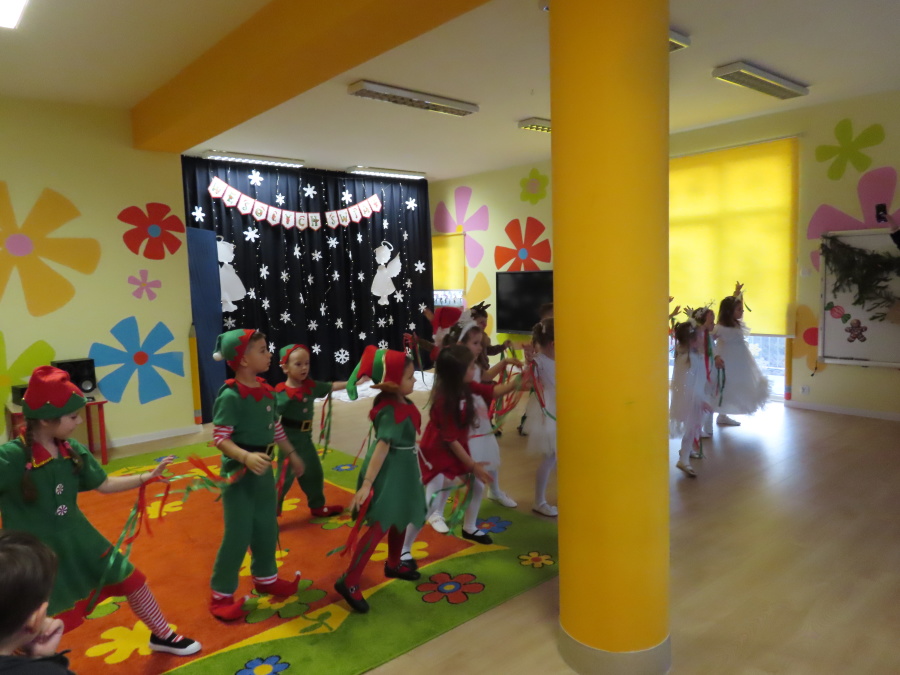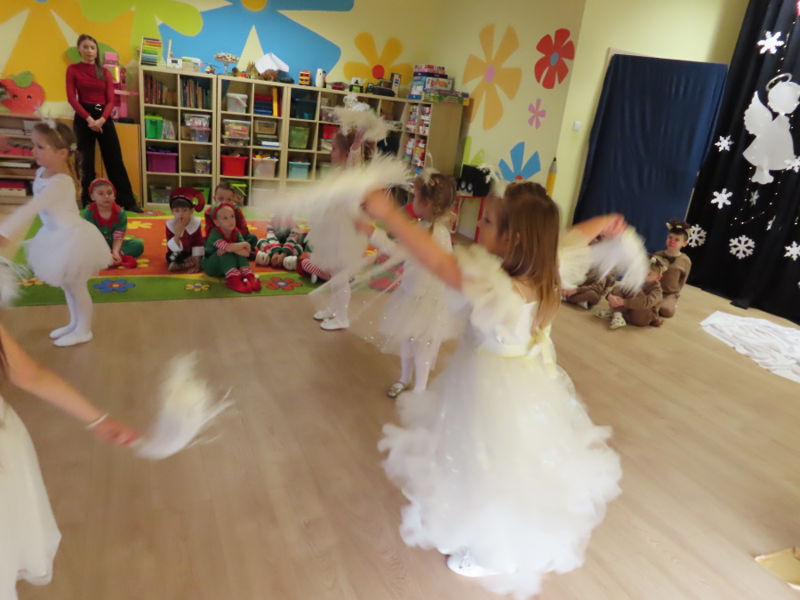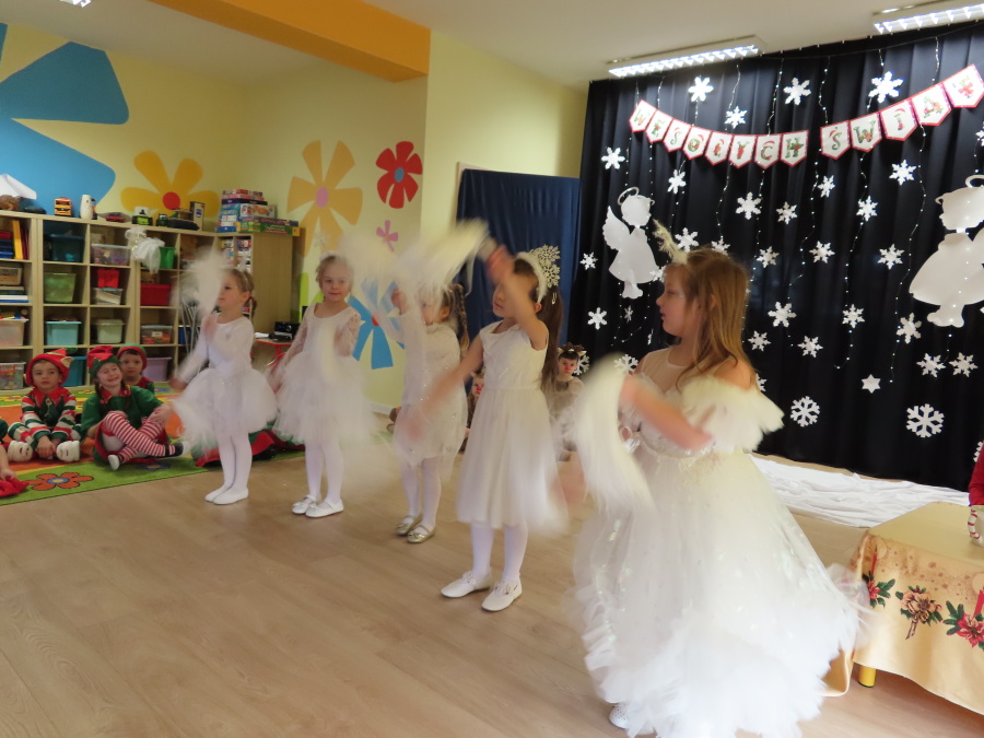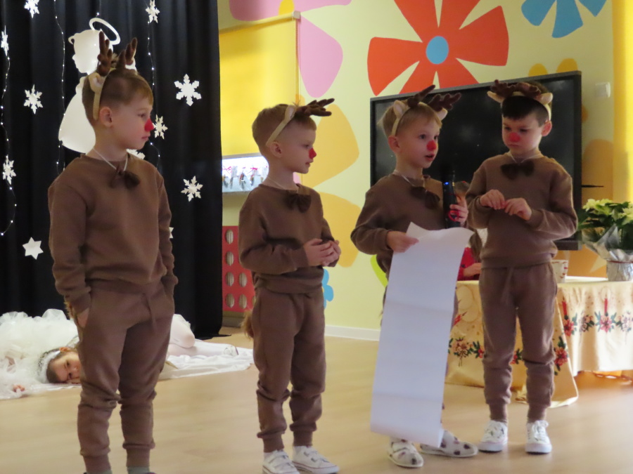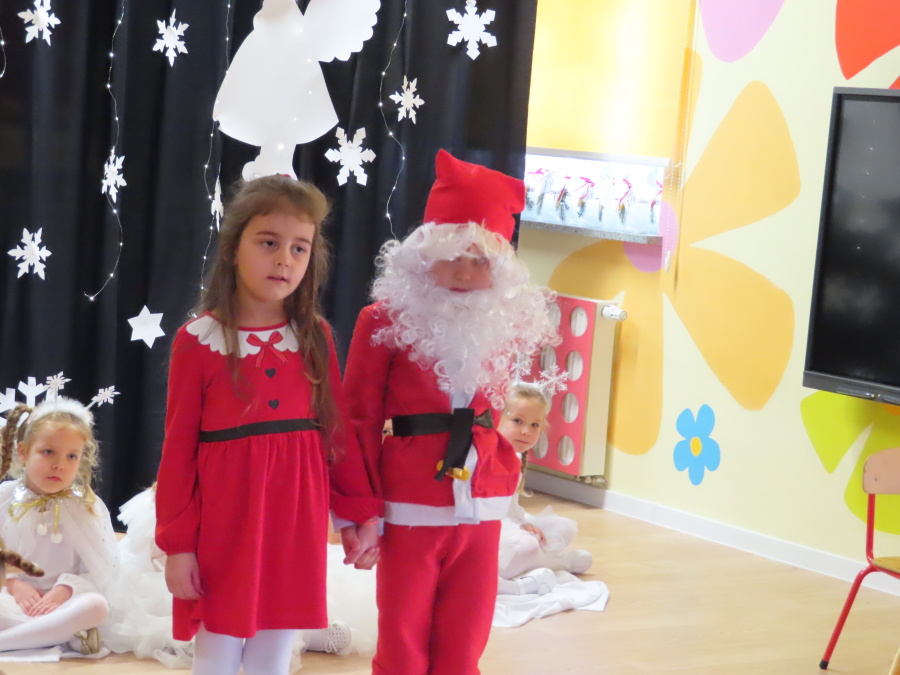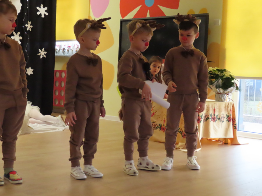 W dniu dzisiejszym Misie wystawiły dla rodziców wyjątkowe jasełka pt. ,, Zapominalskie Śnieżynki”. Na scenie pojawiły się śnieżynki, renifery, elfy oraz Mikołaj ze swoją żoną, którzy wspólnie wprowadzili wszystkich w świąteczny nastrój. Mali artyści z wielkim zaangażowaniem zaprezentowali swoje rolę, a występ został nagrodzony gromkimi brawami i uśmiechami wzruszonych rodziców.