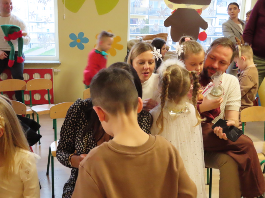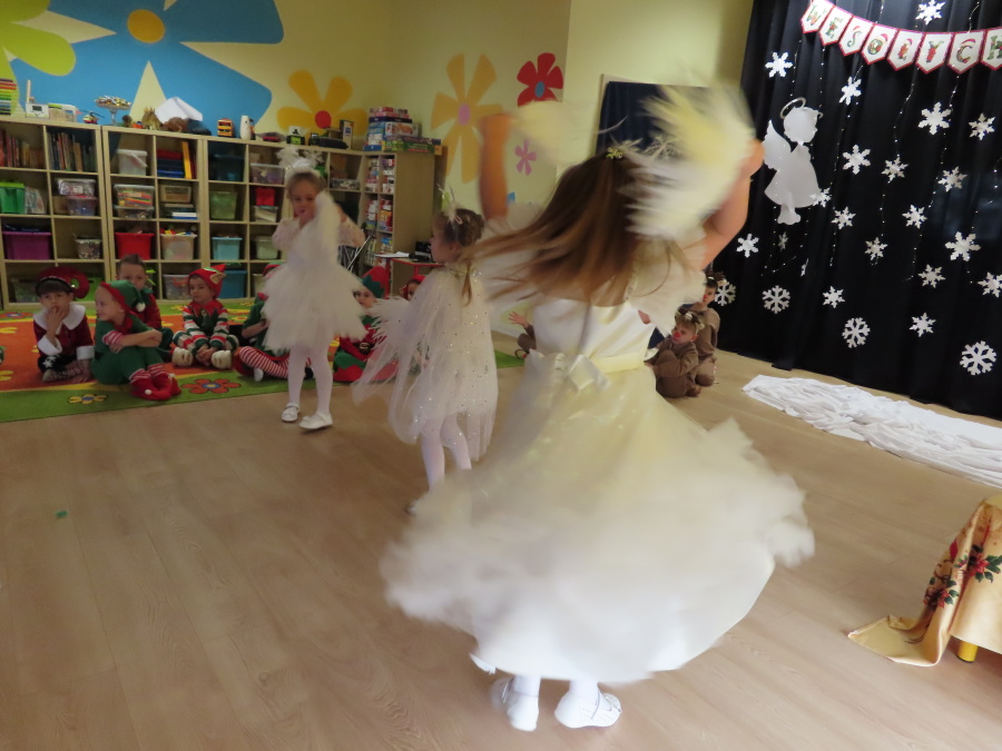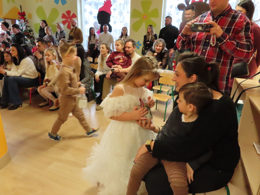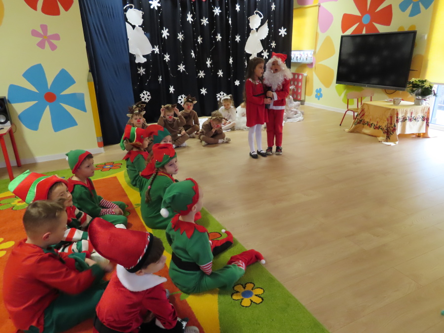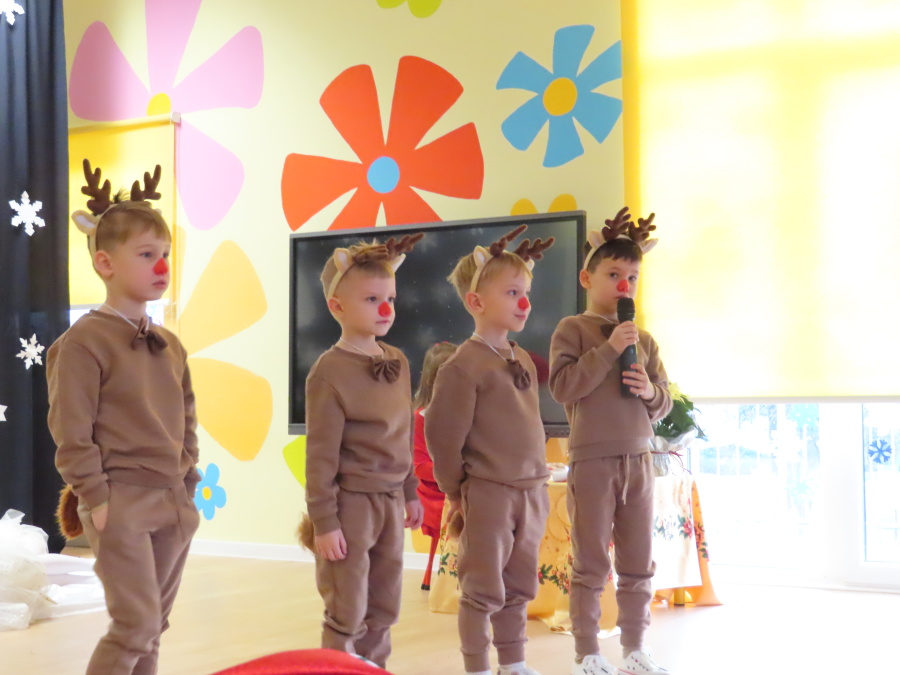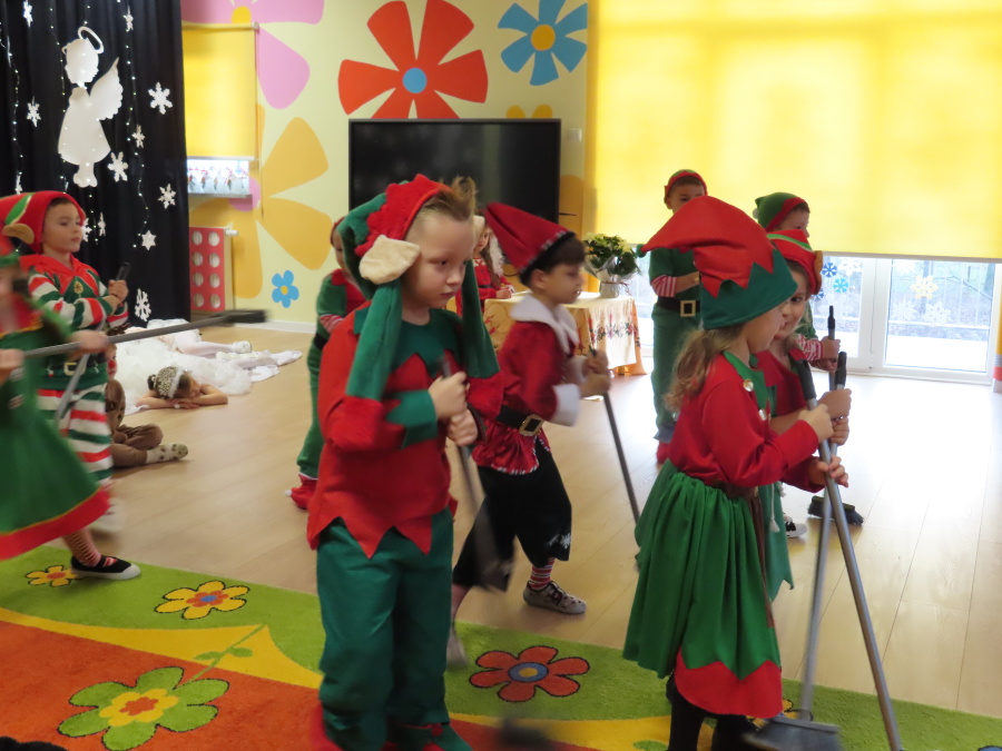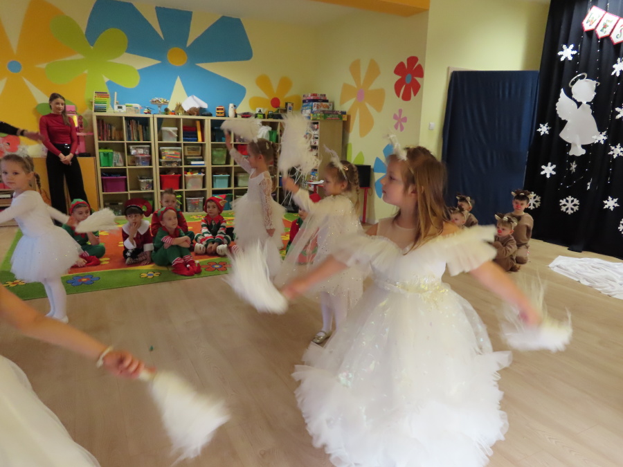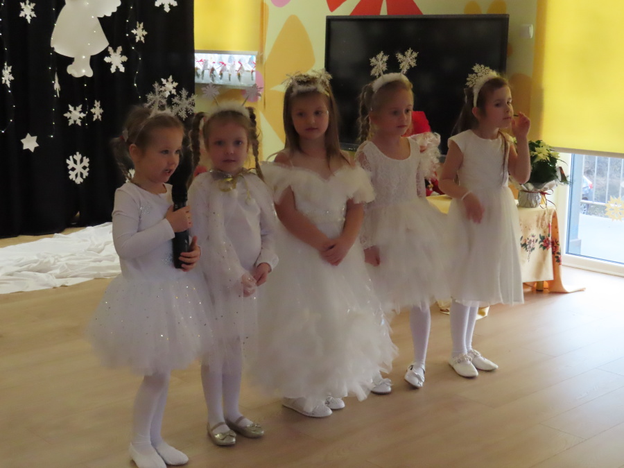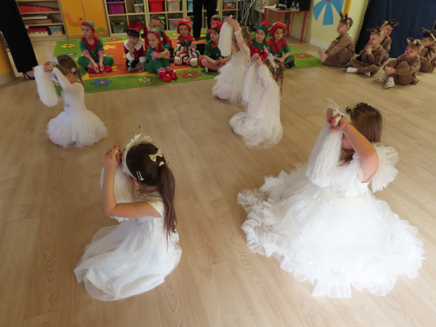 W dniu dzisiejszym Misie wystawiły dla rodziców wyjątkowe jasełka pt. ,, Zapominalskie Śnieżynki”. Na scenie pojawiły się śnieżynki, renifery, elfy oraz Mikołaj ze swoją żoną, którzy wspólnie wprowadzili wszystkich w świąteczny nastrój. Mali artyści z wielkim zaangażowaniem zaprezentowali swoje rolę, a występ został nagrodzony gromkimi brawami i uśmiechami wzruszonych rodziców.