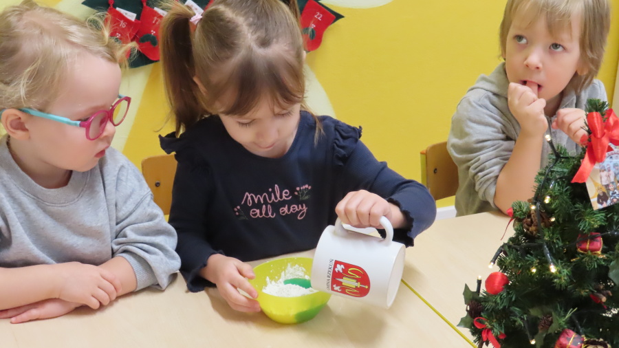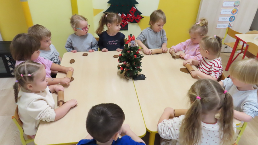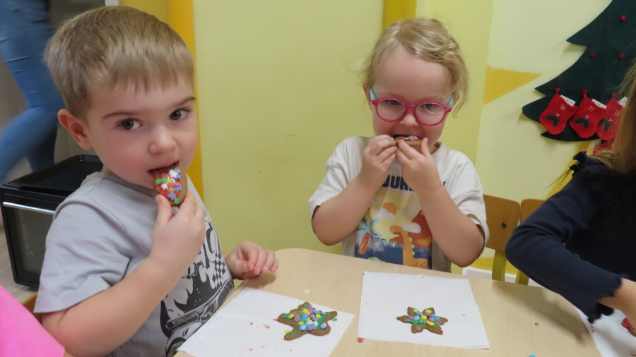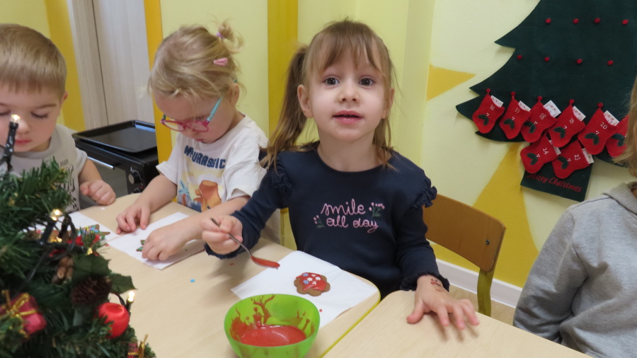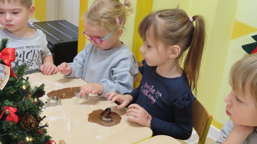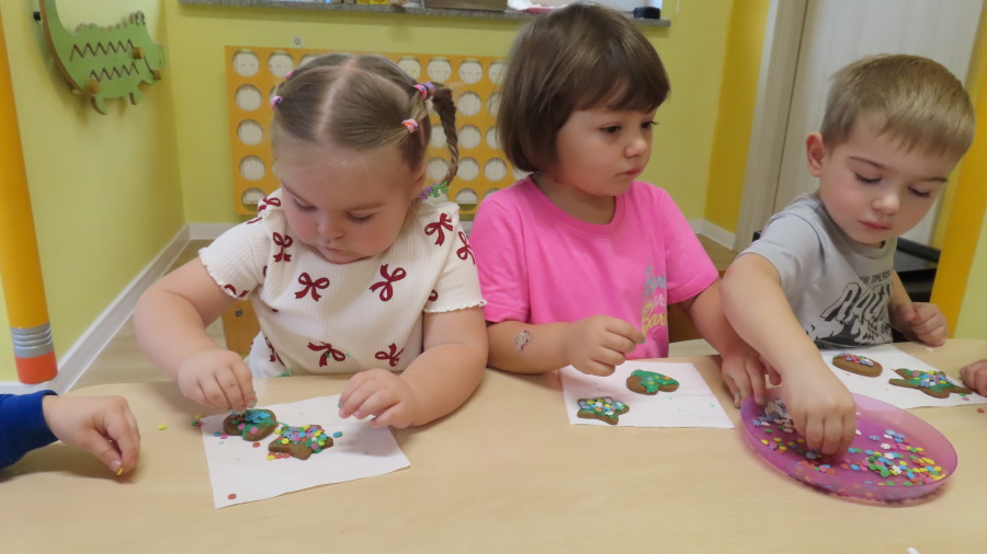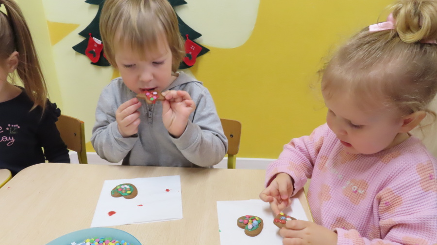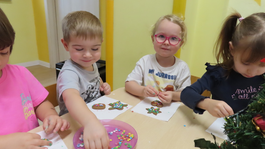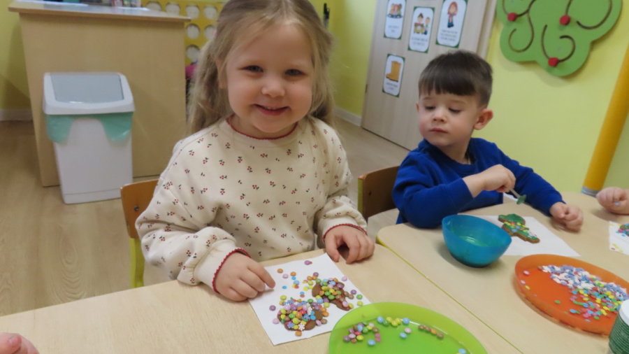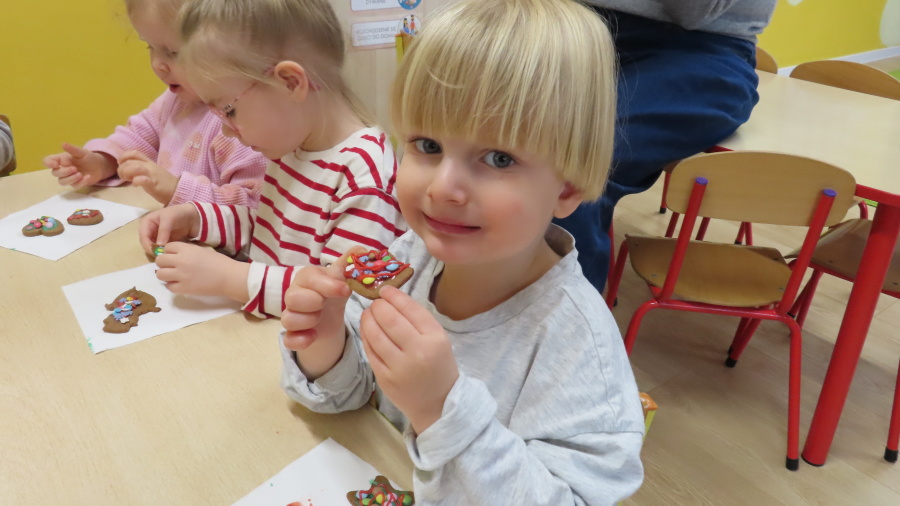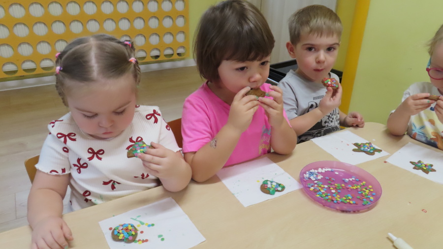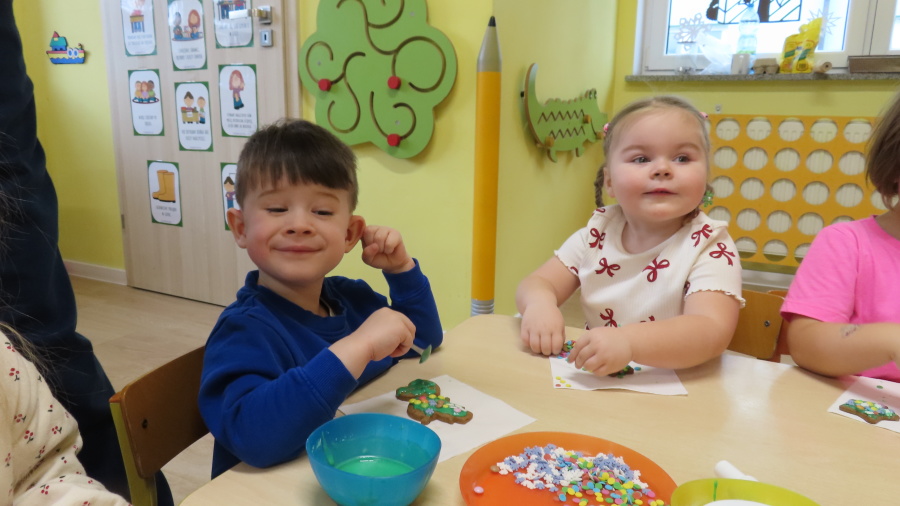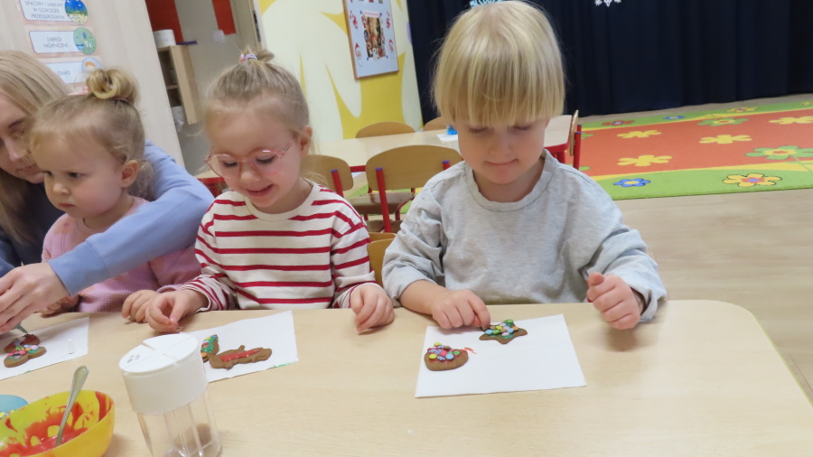 W ramach zajęć kulinarnych nasza grupa Kwiatuszków zamieniła się dziś w prawdziwych małych cukierników ???????????? Dzieci z wielkim zaangażowaniem piekły oraz dekorowały pierniczki. Było wałkowanie ciasta, wycinanie foremkami, a potem najprzyjemniejsza część, w której ozdabiali pierniki kolorowym lukrem i posypkami ✨ Zajęcia sprawiły wszystkim ogromną radość, rozwijały samodzielność, kreatywność oraz współpracę w grupie