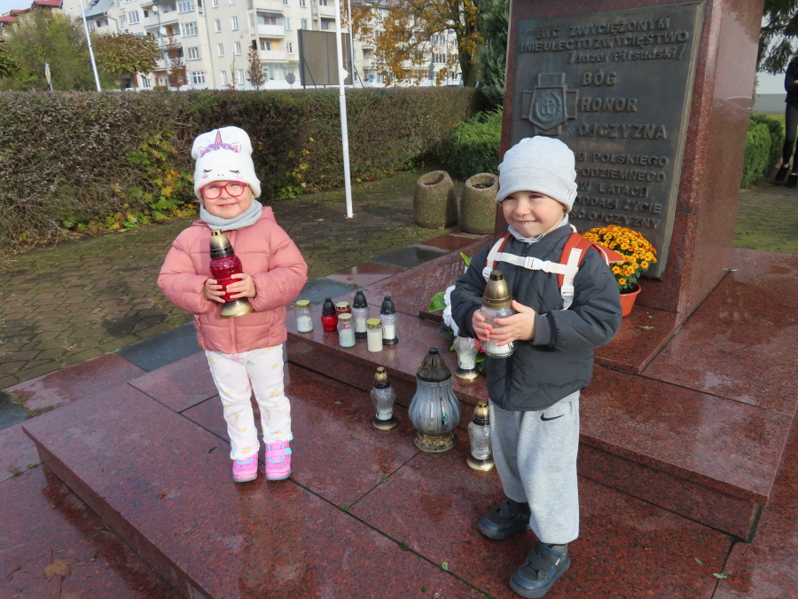 Zbliżajace się Święto Zmarłych to czas refeksji, zadumy i pamięci o tych, , którzy odeszli. To również czas przypomnienia o osobach, które zajmują szczególne miejsce w historii naszego kraju.???????? Dziś Pszczóki i Kwiatuszki wybrały się na pobliski Pomnik Żołnierzy Armi Krajowej.❤️ Dzieci wspólnie z panaimi zapaliły znicze przed pomnikiem upomiętniajacym bohaterów poległym w walce.???? Przedszkolaki mogły w ciszy i zadumie posłuchać opowieści wychowawcy na temat przeszłośi naszej ojczyzny oraz zapalić lampki przed tablicą pamiątkową.????