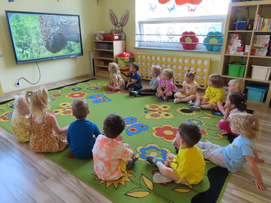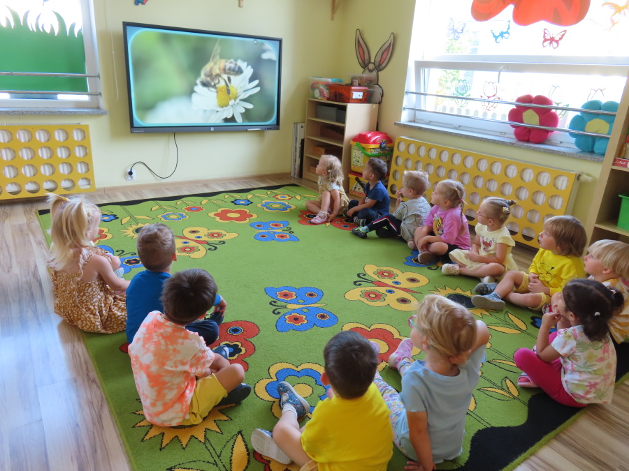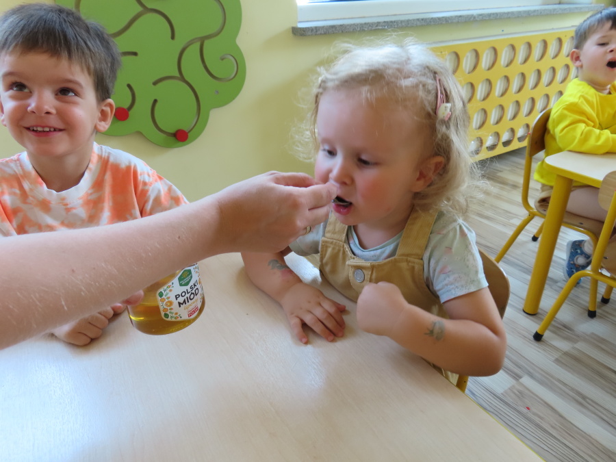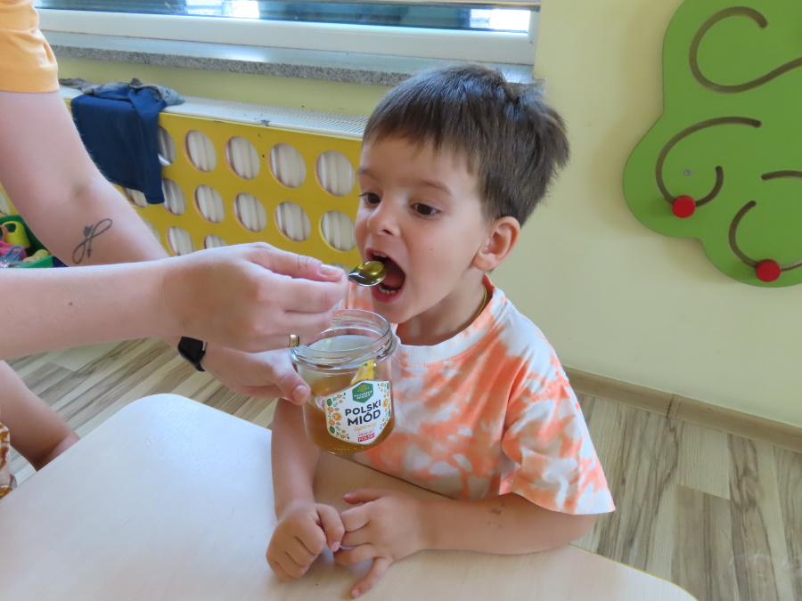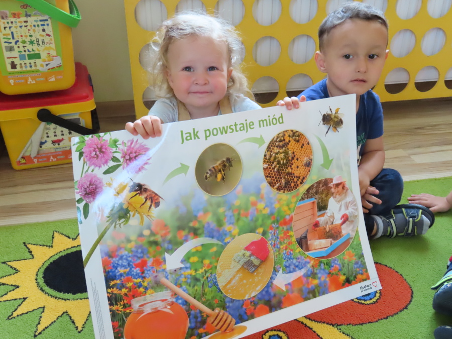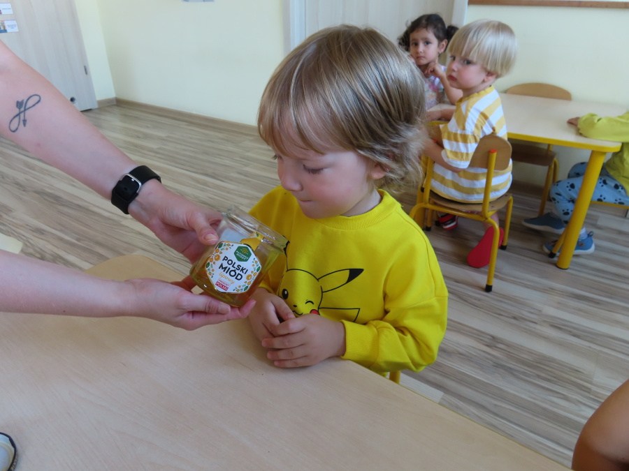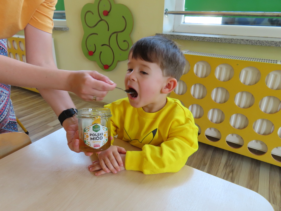 Dzisiaj w naszym przedszkolu obchodziliśmy Dzień Pszczół – wyjątkowe święto mające na celu przybliżenie dzieciom roli pszczół w przyrodzie oraz znaczenia ich ochrony. Obchody rozpoczęły się od zajęć edukacyjnych, podczas których dzieci dowiedziały się wielu ciekawostek o życiu pszczół, ich budowie, pracy w ulu oraz znaczeniu zapylania roślin. Przedszkolaki z dużym zainteresowaniem oglądały prezentacje, książeczki edukacyjne i plansze tematyczne. Następnie wspólnie wykonaliśmy plakat grupy Pszczółek. Chętne dzieci mogły skorzystać z fotoramki i zrobić pamiątkowe zdjęcie. Na zakończenie odbyła się degustacja miodu.
