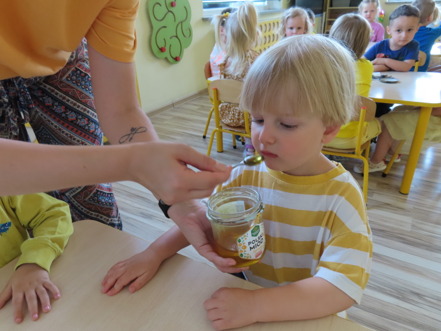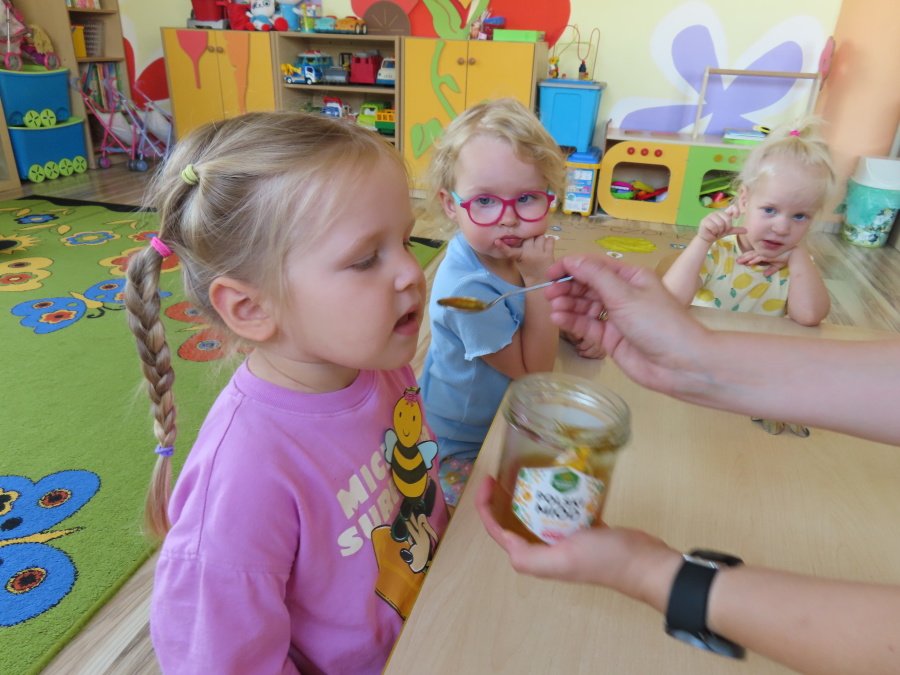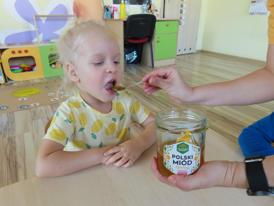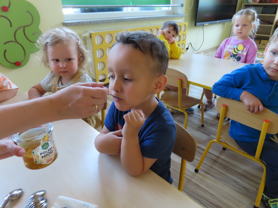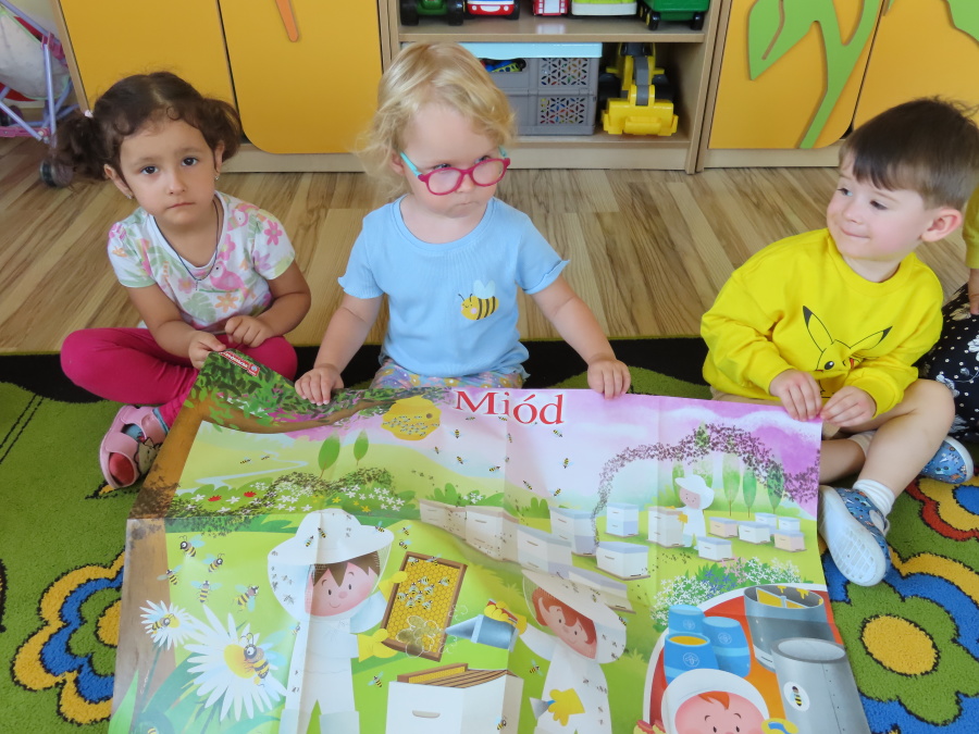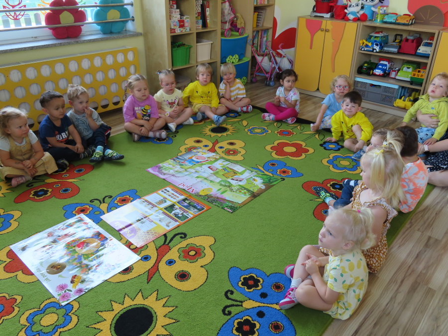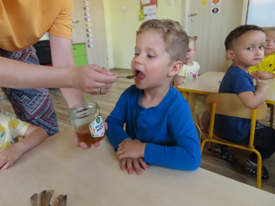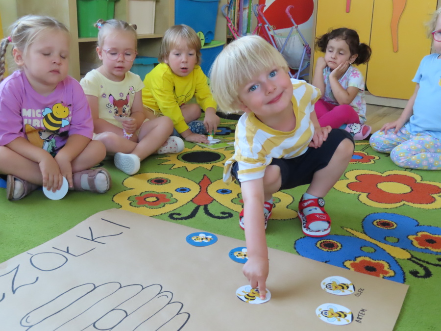 Dzisiaj w naszym przedszkolu obchodziliśmy Dzień Pszczół – wyjątkowe święto mające na celu przybliżenie dzieciom roli pszczół w przyrodzie oraz znaczenia ich ochrony. Obchody rozpoczęły się od zajęć edukacyjnych, podczas których dzieci dowiedziały się wielu ciekawostek o życiu pszczół, ich budowie, pracy w ulu oraz znaczeniu zapylania roślin. Przedszkolaki z dużym zainteresowaniem oglądały prezentacje, książeczki edukacyjne i plansze tematyczne. Następnie wspólnie wykonaliśmy plakat grupy Pszczółek. Chętne dzieci mogły skorzystać z fotoramki i zrobić pamiątkowe zdjęcie. Na zakończenie odbyła się degustacja miodu.