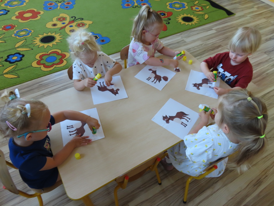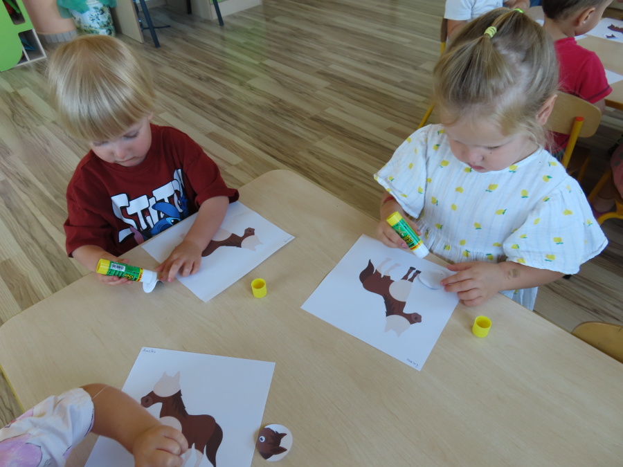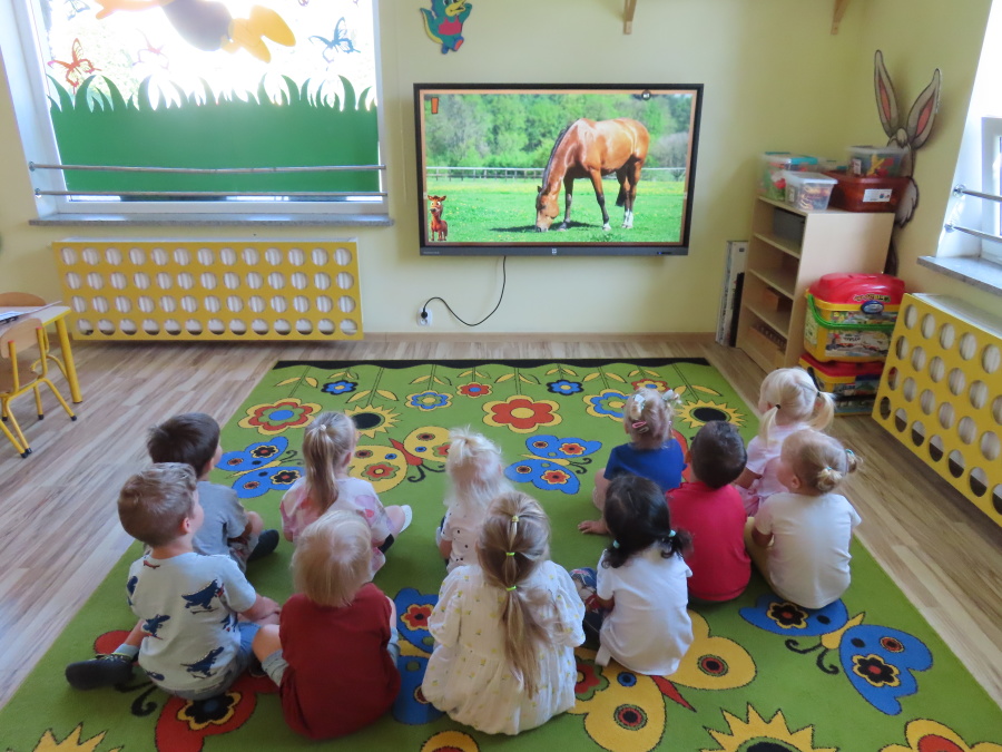 Dziś nasza grupa Pszczółek przeniosła się na wieś, aby bliżej poznać wspaniałe zwierzęta gospodarskie – a w szczególności konia. ???????? ???? Oglądaliśmy ciekawy film edukacyjny o koniu, ???? rozpoznawaliśmy odgłosy zwierząt mieszkających na wsi, ???? bawiliśmy się w interaktywną grę na telewizorze, ???? a na koniec stworzyliśmy piękne prace plastyczne, wklejając brakujące elementy konika. Było dużo śmiechu, nauki i świetnej zabawy! ????✨