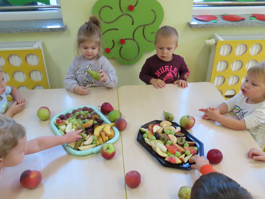 W tym tygodniu Pszczółki poznawały owoce i ich znaczenie dla zdrowia. Przyświecał temu główny cel aby nasze maluszki zachęcić do codziennego spożywania owoców. Przedszkolaki poznawały owoce poprzez zabawę i działania praktyczne. Poznawały smak i zapach owoców poprzez degustację. Segregowały je według koloru, kształtu i rodzaju. Rozpoznawały owoce po smaku i dotyku. Na koniec zajęć maluszki po malowały własne jabłuszka. Ten dzień to prawdziwie owocowe szaleństwo!