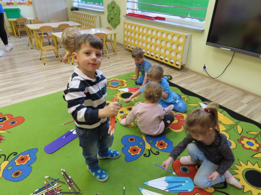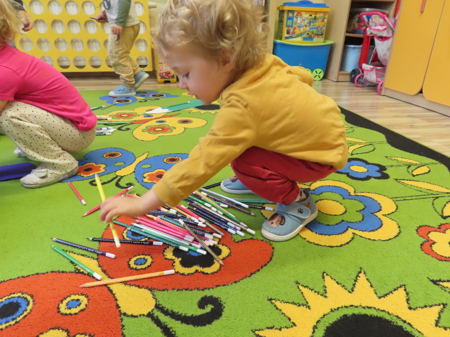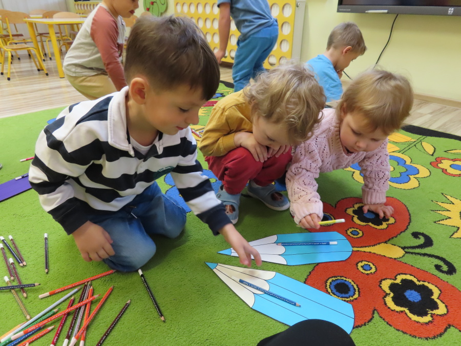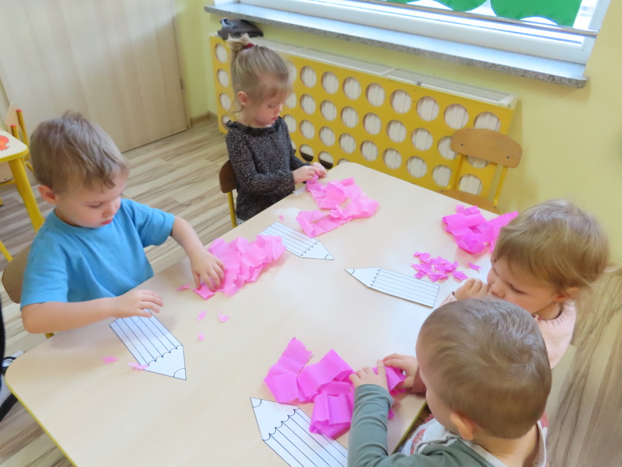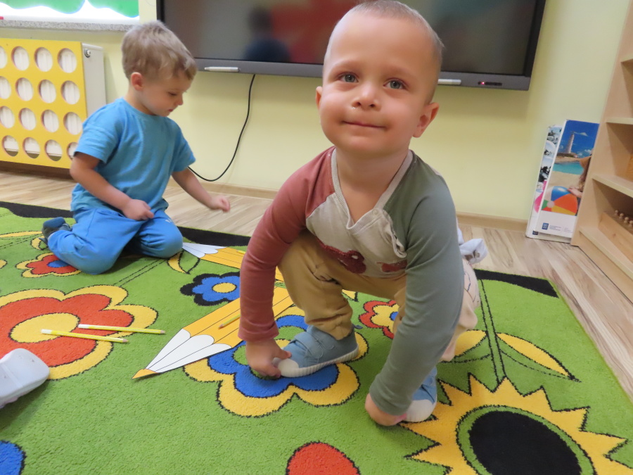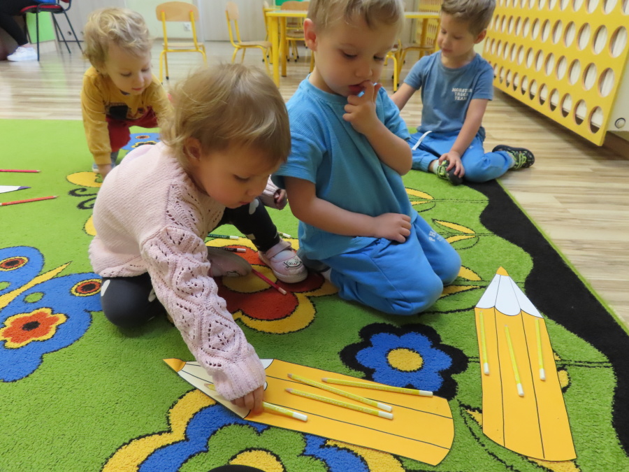 Dziś w grupie Pszczółek obchodziliśmy „Dzień Kredki”. Z tej okazji u maluszków odbywały się zabawy z kredkami w roli głównej. Dzieci porządkowały wymieszane kredki, ćwicząc klasyfikowanie i nazywanie barw. Następnie stworzyliśmy wspólną kredkę, którą wypełniliśmy ścinkami papieru, pracując nad sprawnością manualną i współpracą. Na koniec każde dziecko ozdobiło własny szablon kredki, przyklejając kawałki bibuły. Dzień był bardzo udany i pełen twórczej zabawy.