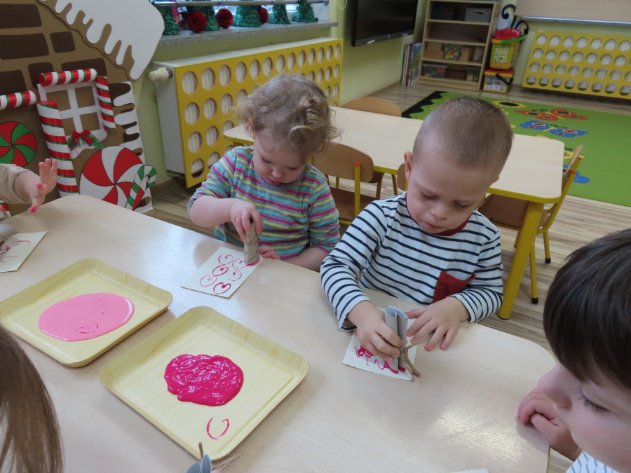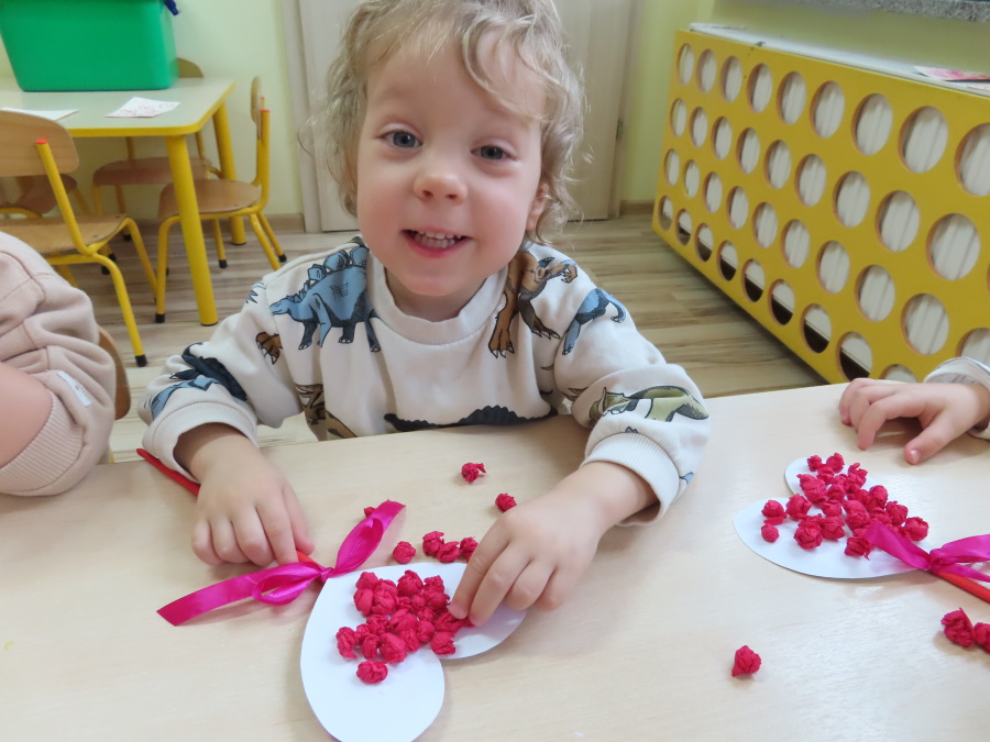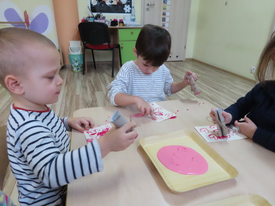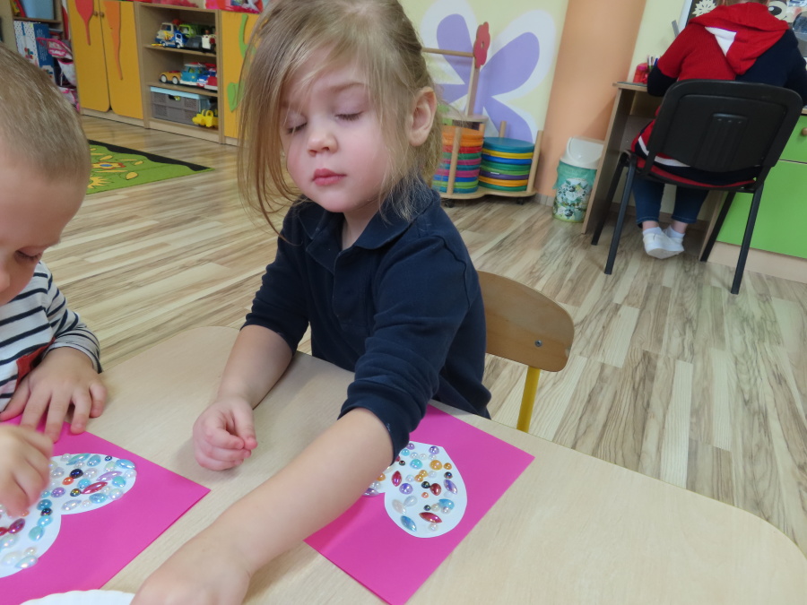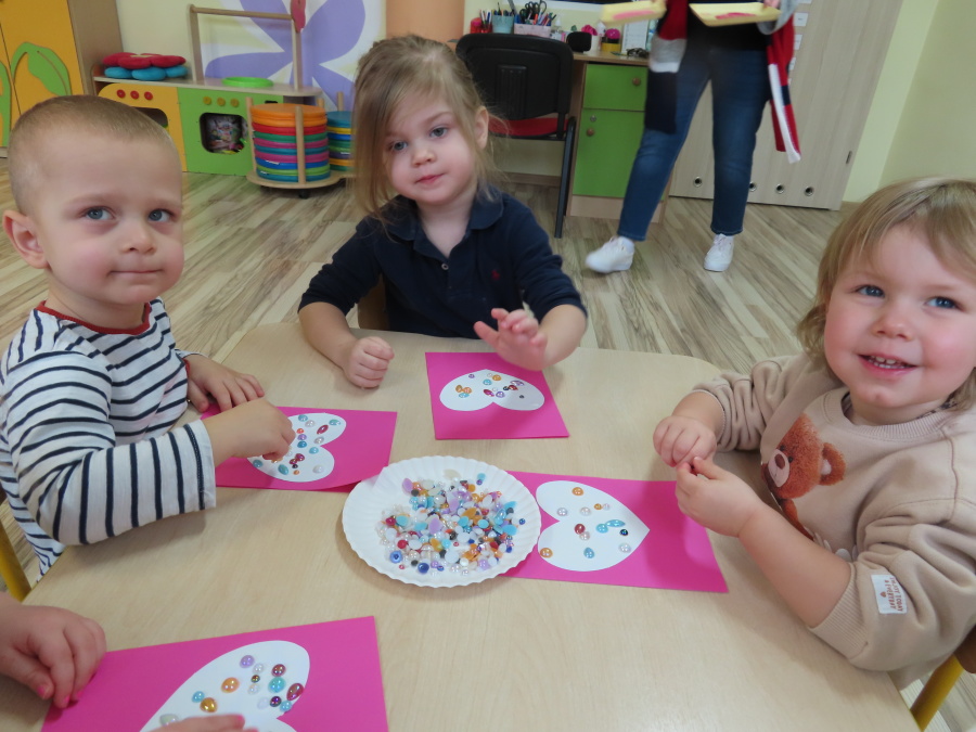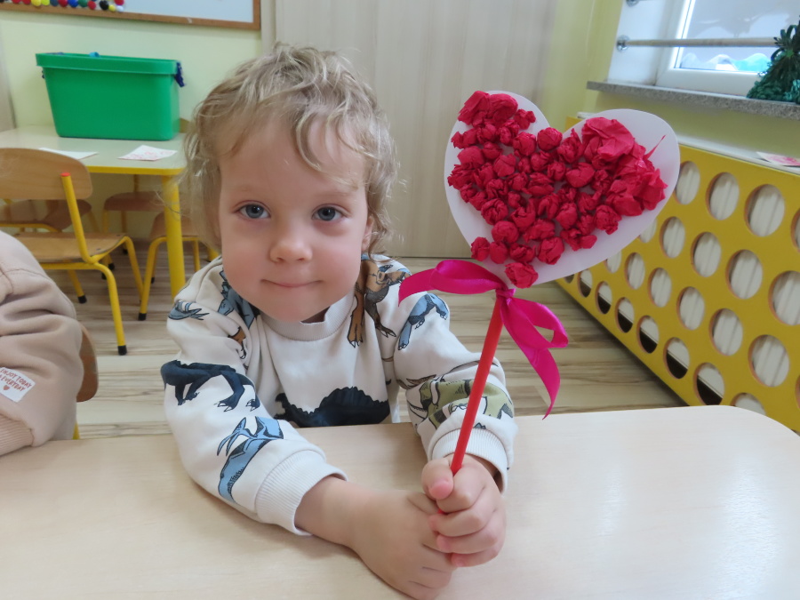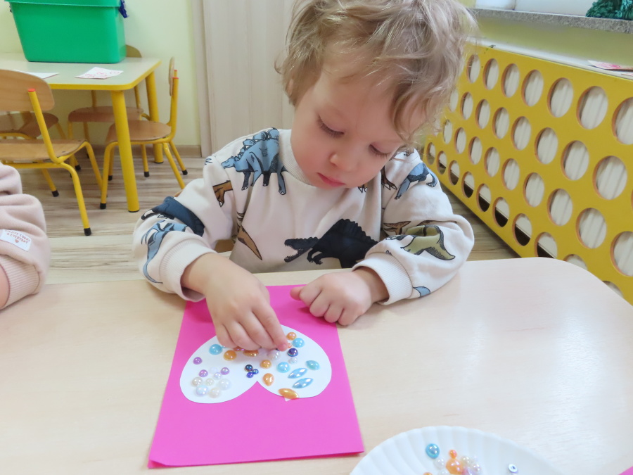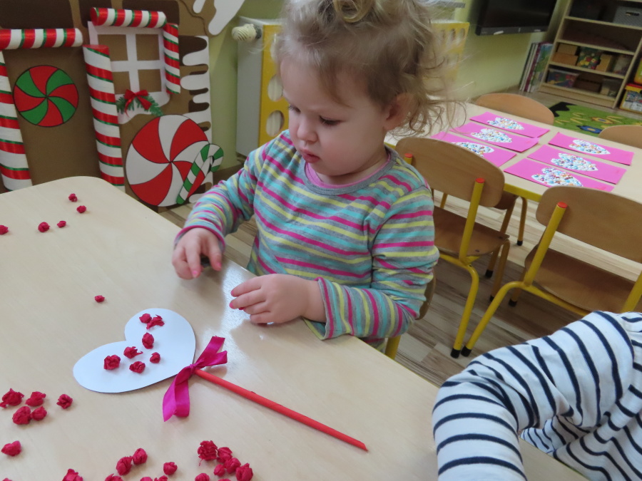 Dzisiejszy dzień w grupie „Pszczółek” upłynął pod znakiem miłości, wdzięczności i intensywnych prac plastycznych! Nasze małe pracowite pszczółki z wielkim zaangażowaniem przygotowywały niespodzianki dla swoich ukochanych dziadków. ???????? Każda Pszczółka ozdobiła swoją kartkę radosnymi stempelkami w kształcie serc. Wykorzystaliśmy do tego intensywne kolory, aby każda laurka była wyjątkowa. ❤️❤️Aby dodać upominkom elegancji, dzieci samodzielnie wyklejały serca błyszczącymi diamentami. ???? Ta czynność była nie tylko świetną zabawą, ale też doskonałym ćwiczeniem motoryki małej i cierpliwości. Na koniec przedszkolaki stworzyły ozdobne lizaki w kształcie serca. ❣️❣️