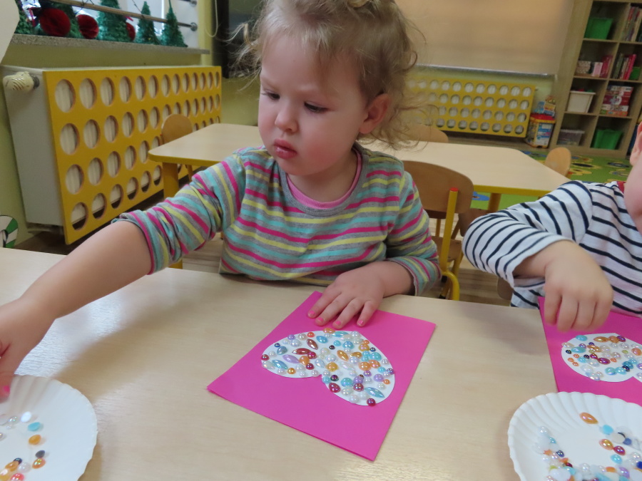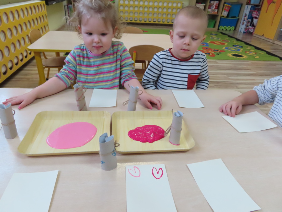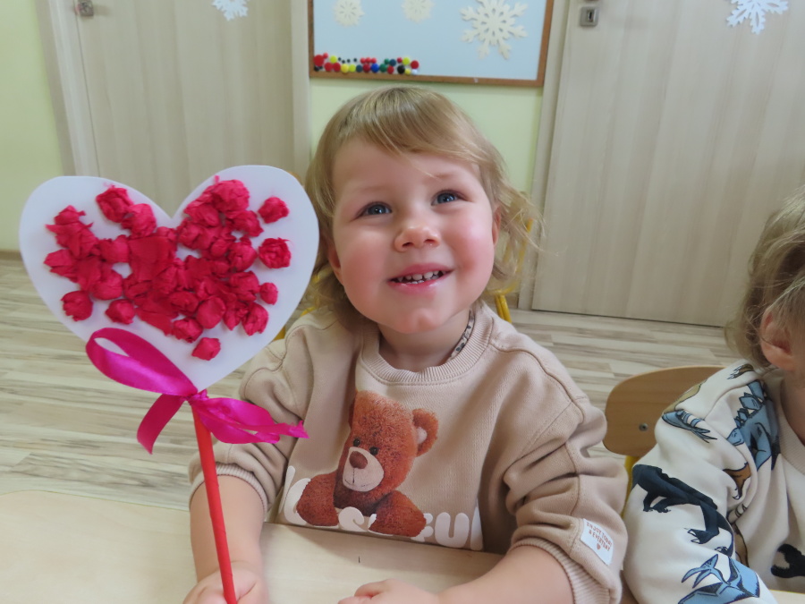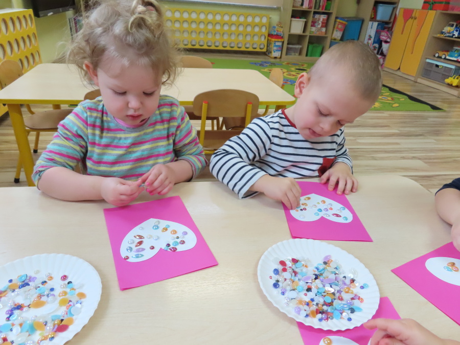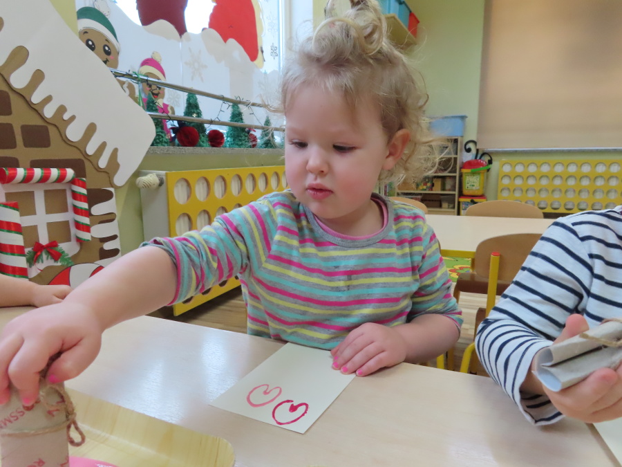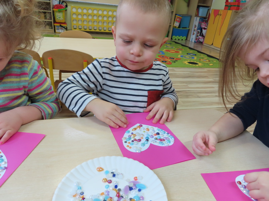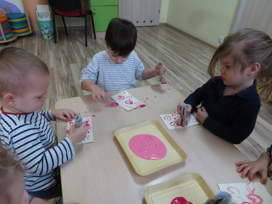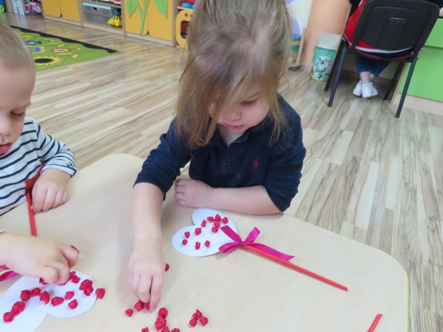 Dzisiejszy dzień w grupie „Pszczółek” upłynął pod znakiem miłości, wdzięczności i intensywnych prac plastycznych! Nasze małe pracowite pszczółki z wielkim zaangażowaniem przygotowywały niespodzianki dla swoich ukochanych dziadków. ???????? Każda Pszczółka ozdobiła swoją kartkę radosnymi stempelkami w kształcie serc. Wykorzystaliśmy do tego intensywne kolory, aby każda laurka była wyjątkowa. ❤️❤️Aby dodać upominkom elegancji, dzieci samodzielnie wyklejały serca błyszczącymi diamentami. ???? Ta czynność była nie tylko świetną zabawą, ale też doskonałym ćwiczeniem motoryki małej i cierpliwości. Na koniec przedszkolaki stworzyły ozdobne lizaki w kształcie serca. ❣️❣️