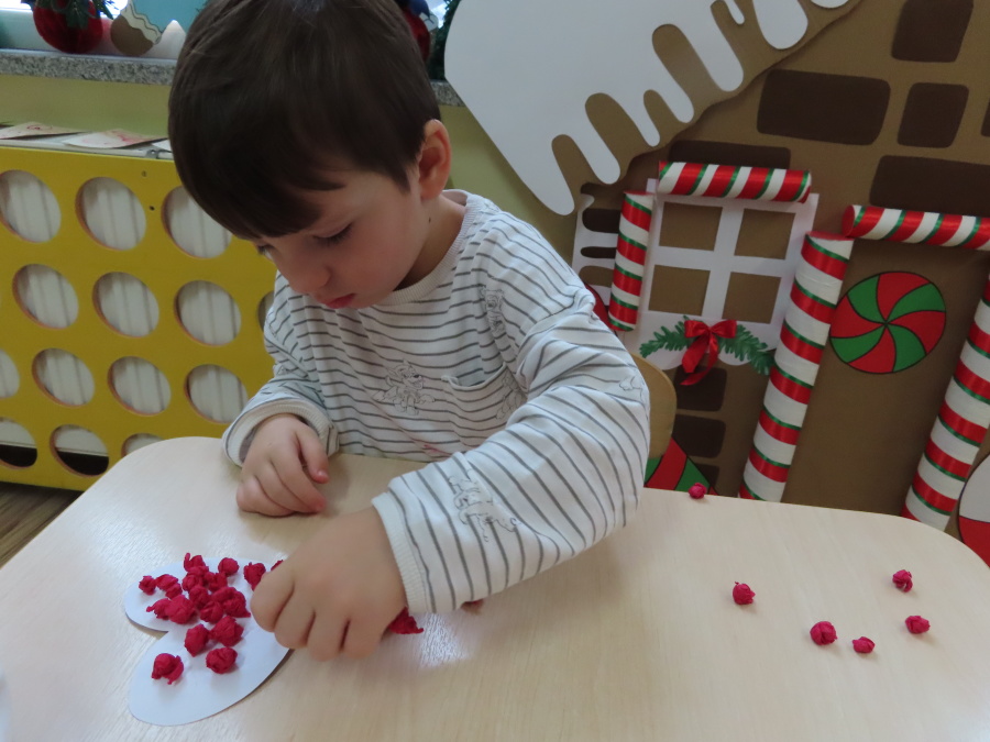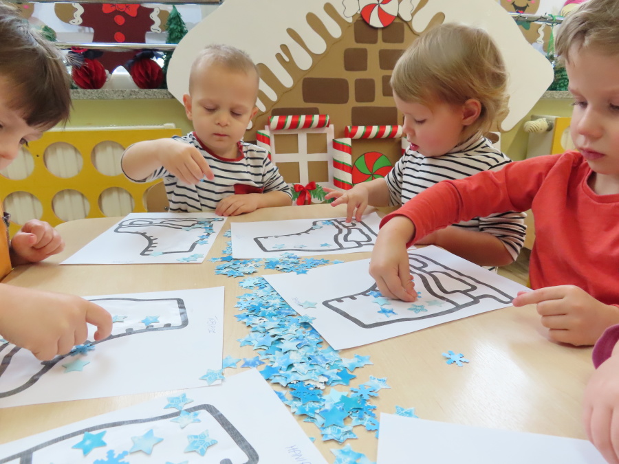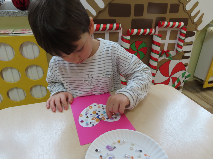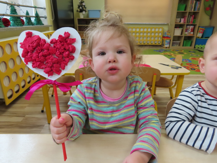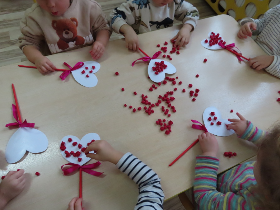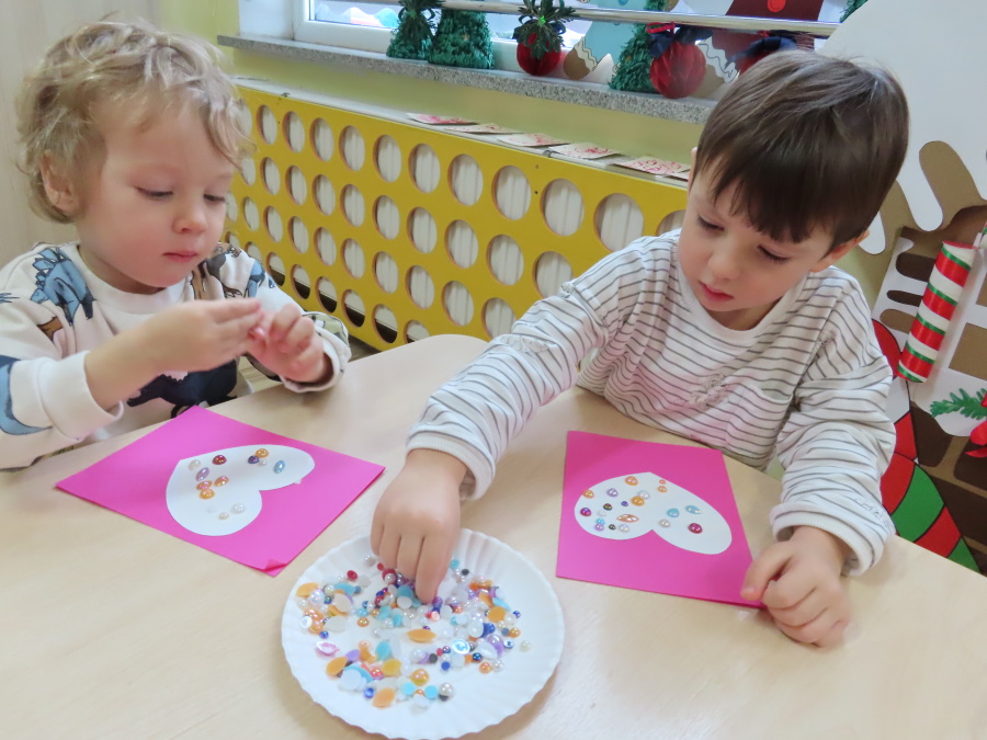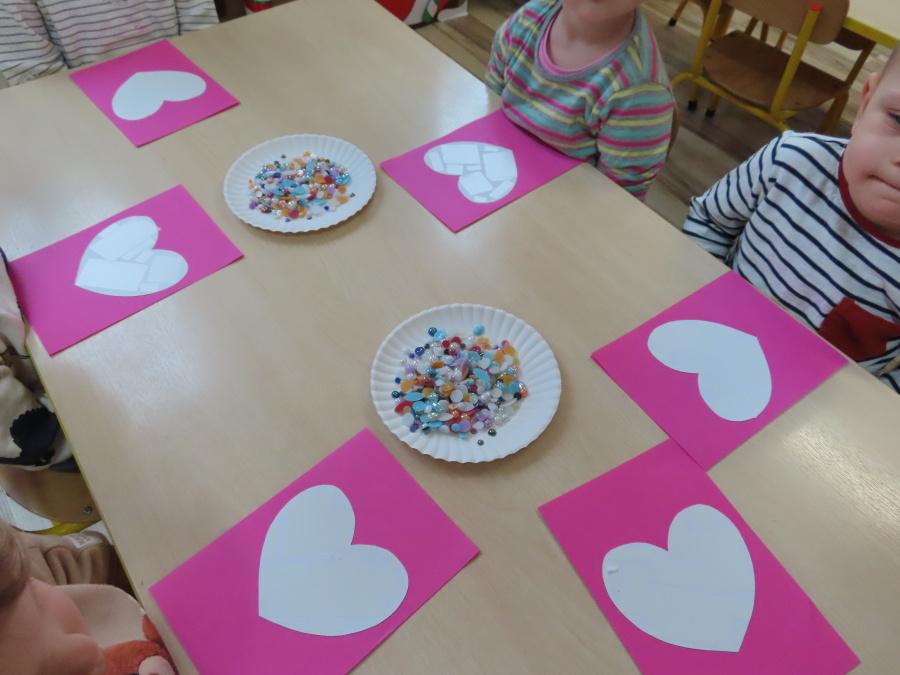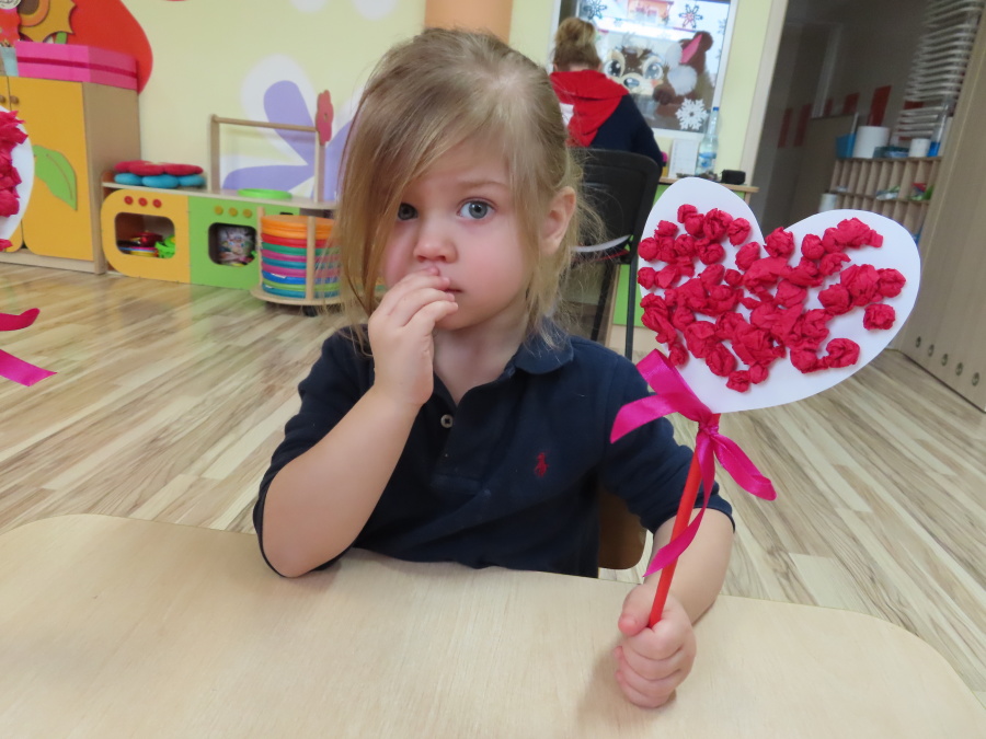 Dzisiejszy dzień w grupie „Pszczółek” upłynął pod znakiem miłości, wdzięczności i intensywnych prac plastycznych! Nasze małe pracowite pszczółki z wielkim zaangażowaniem przygotowywały niespodzianki dla swoich ukochanych dziadków. ???????? Każda Pszczółka ozdobiła swoją kartkę radosnymi stempelkami w kształcie serc. Wykorzystaliśmy do tego intensywne kolory, aby każda laurka była wyjątkowa. ❤️❤️Aby dodać upominkom elegancji, dzieci samodzielnie wyklejały serca błyszczącymi diamentami. ???? Ta czynność była nie tylko świetną zabawą, ale też doskonałym ćwiczeniem motoryki małej i cierpliwości. Na koniec przedszkolaki stworzyły ozdobne lizaki w kształcie serca. ❣️❣️