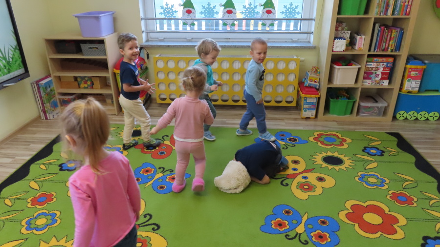 Z okazji święta Babci i Dziadka Pszczółki bawiły się w zabawy dawnych czasów, bo Babcie i Dziadkowie też kiedyś dziećmi byli. ????❤️????????♀️????????♂️????♀️ Nasym dziadkom nie były wymyślne zabawki, często wystarczała jedynie piłka, kamień lub patyczki, niezbędna była jednak wyobraźnia. Pszczółki dały sie porwać zabawom z przeszłości i świetnie się przy tym bawiły. Zaczeliśmy od zabaw kółeczkowych - ,, Stary niedźwiedź mocno śpi\", ,,Kółko graniaste\" i ,,Mam chusteczkę haftowaną\" Po takiej rogrzewce zagraliśmy w klasy, poskakaliśmy w gumę, a na koniec uciekaliśmy od ciuciubabki i Baby Jagi. Przedszkolaki zgodnie uznały, że stare zabawy są super !