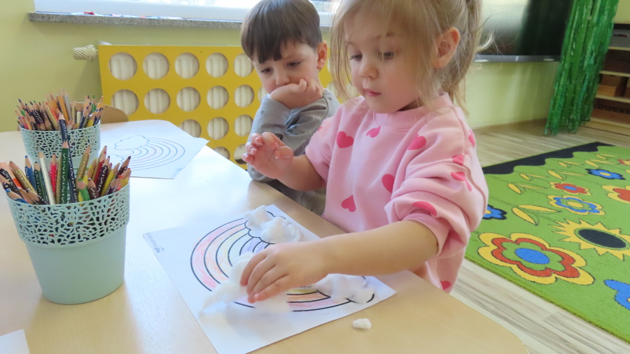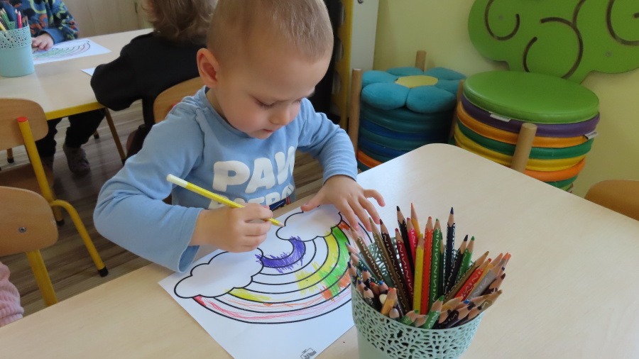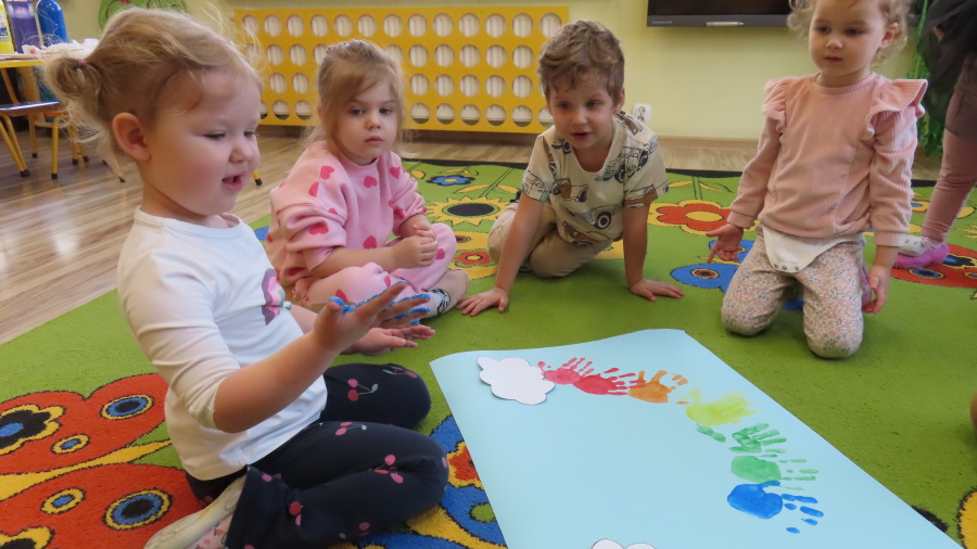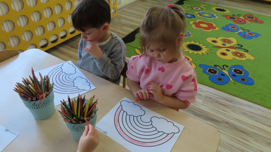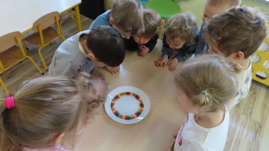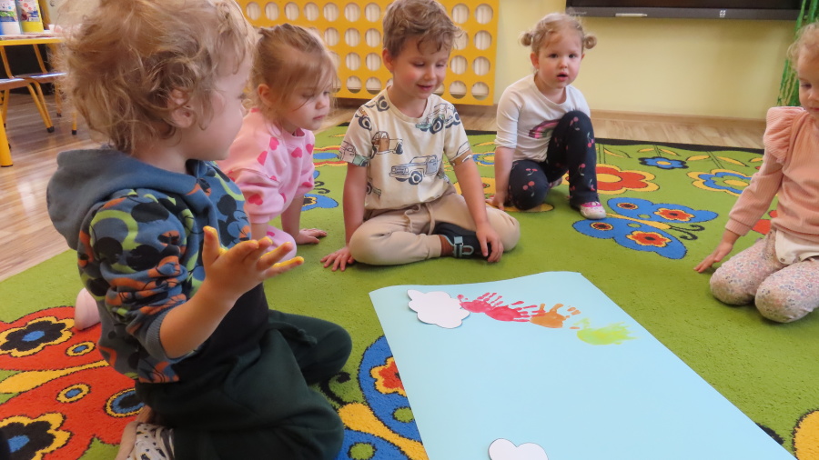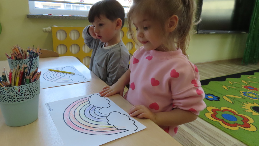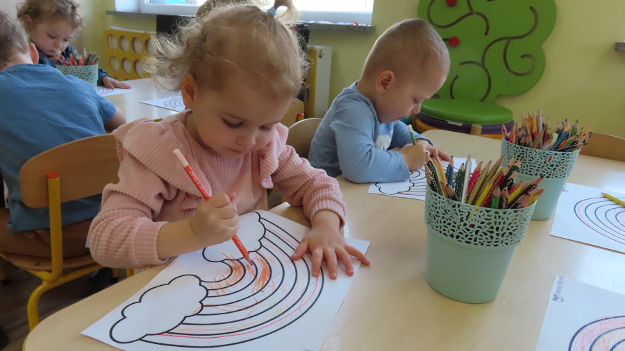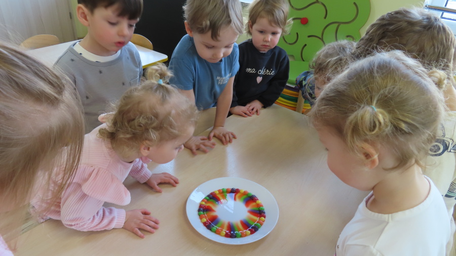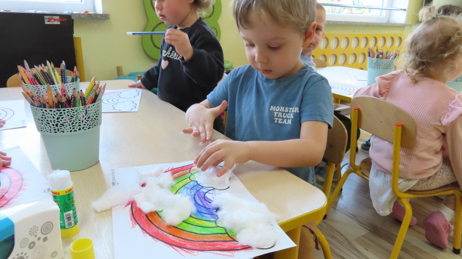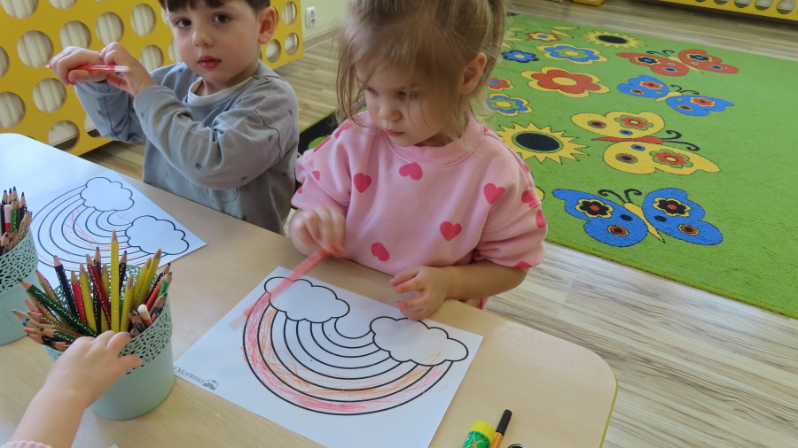 Dzisiejszy dzień w naszym przedszkolu mienił się wszystkimi barwami! Dzieci zamieniły się w małych odkrywców, aby poznać tajemnice jednego z najpiękniejszych zjawisk przyrody. Dowiedzieliśmy się, że do powstania tęczy potrzebne są dwa składniki: słońce i deszcz. ???? Przeprowadziliśmy doświadczenie z kolorowymi cukiereczkami, obserwując, jak pod wpływem wody tworzą na talerzyku barwny krąg. Na wielkim arkuszu brystolu powstała nasza grupowa tęcza. Dzieci z ogromnym entuzjazmem odciskały swoje dłonie zamoczone w farbach, tworząc unikalny, wielobarwny łuk. ????????