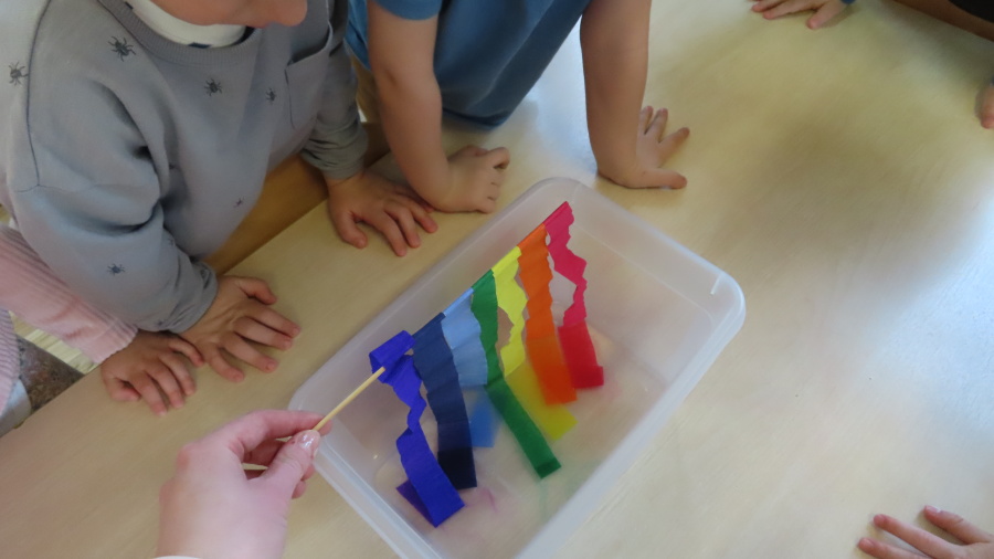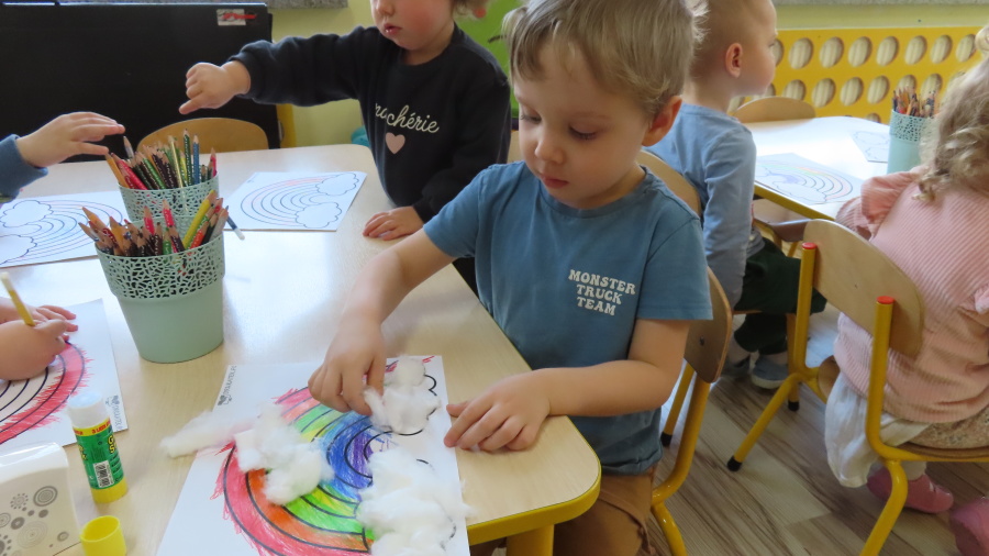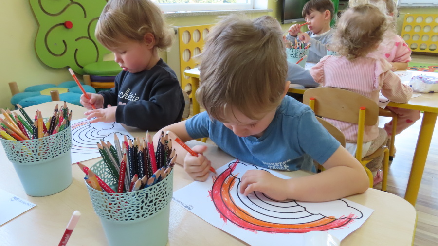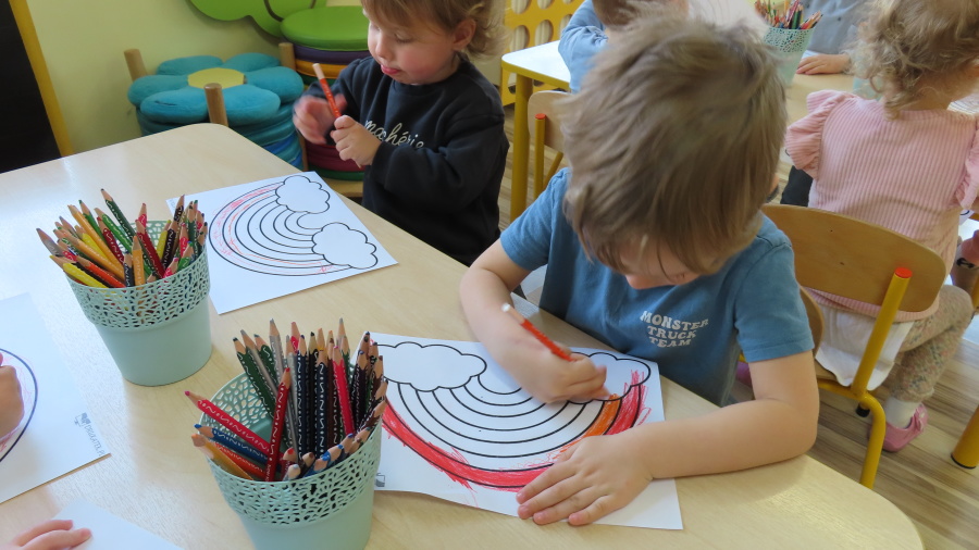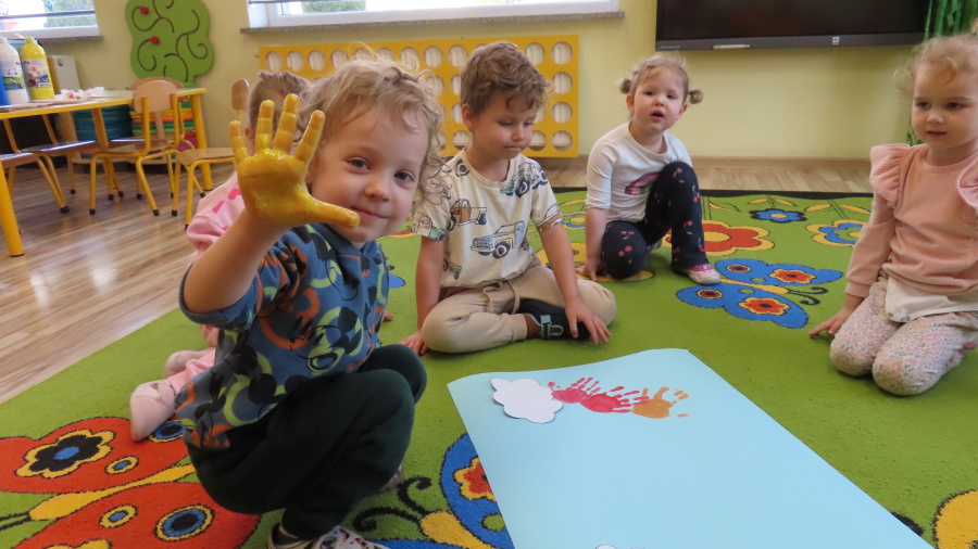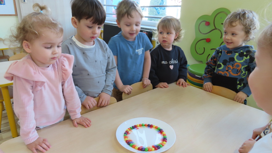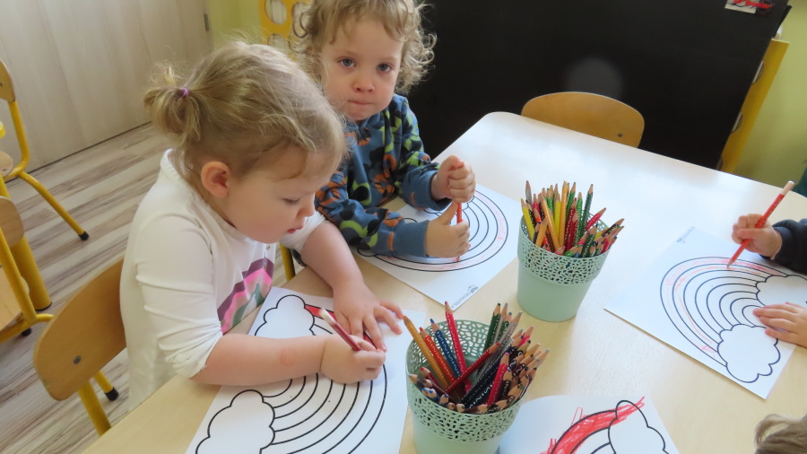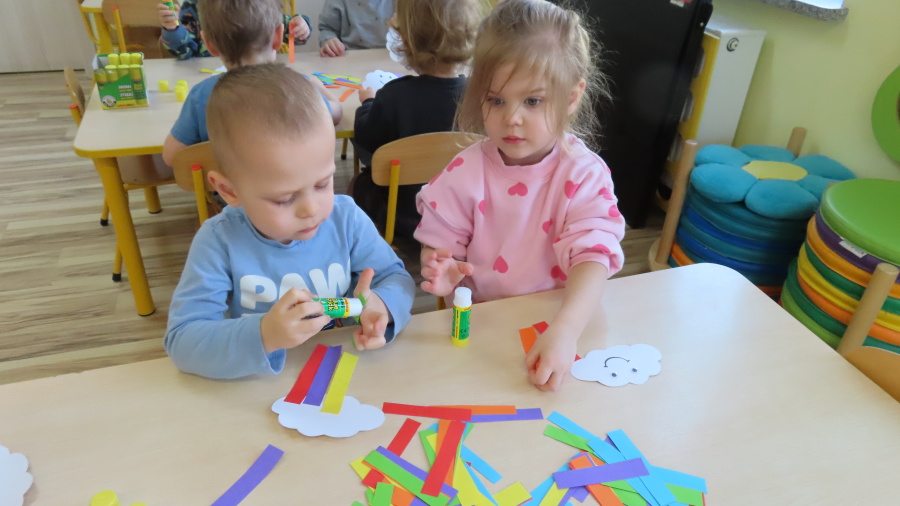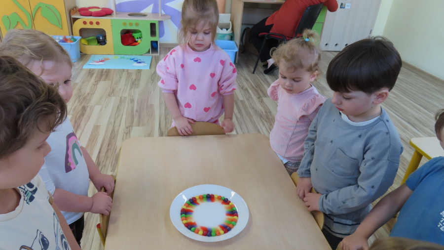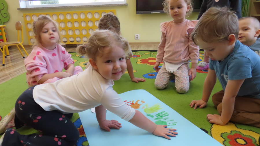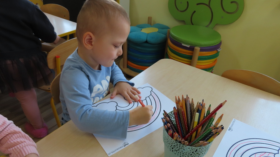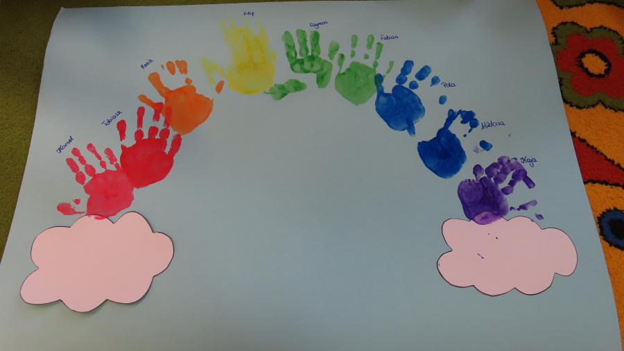 Dzisiejszy dzień w naszym przedszkolu mienił się wszystkimi barwami! Dzieci zamieniły się w małych odkrywców, aby poznać tajemnice jednego z najpiękniejszych zjawisk przyrody. Dowiedzieliśmy się, że do powstania tęczy potrzebne są dwa składniki: słońce i deszcz. ???? Przeprowadziliśmy doświadczenie z kolorowymi cukiereczkami, obserwując, jak pod wpływem wody tworzą na talerzyku barwny krąg. Na wielkim arkuszu brystolu powstała nasza grupowa tęcza. Dzieci z ogromnym entuzjazmem odciskały swoje dłonie zamoczone w farbach, tworząc unikalny, wielobarwny łuk. ????????