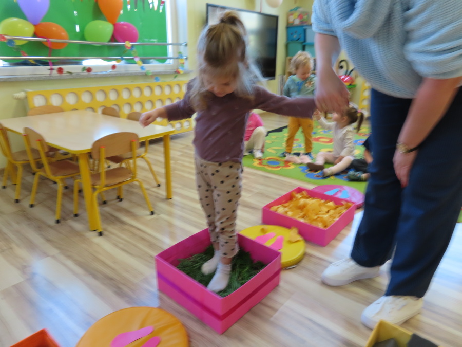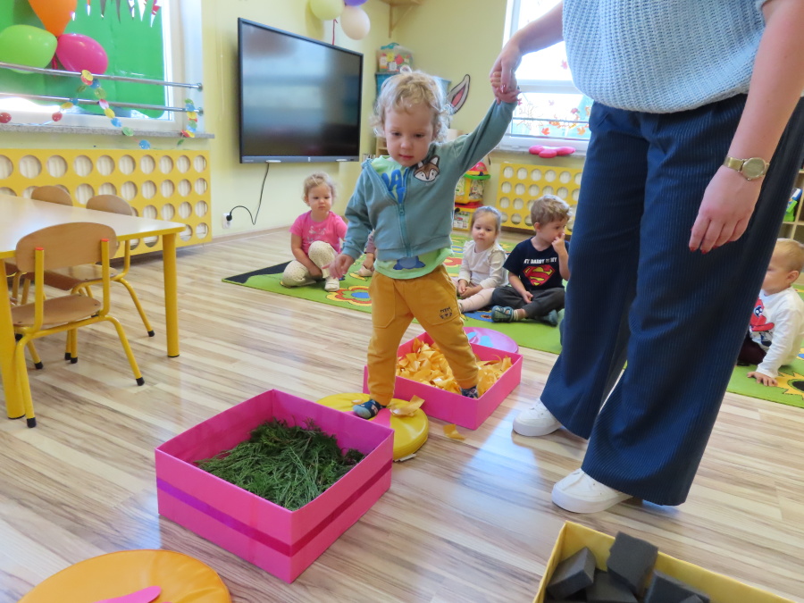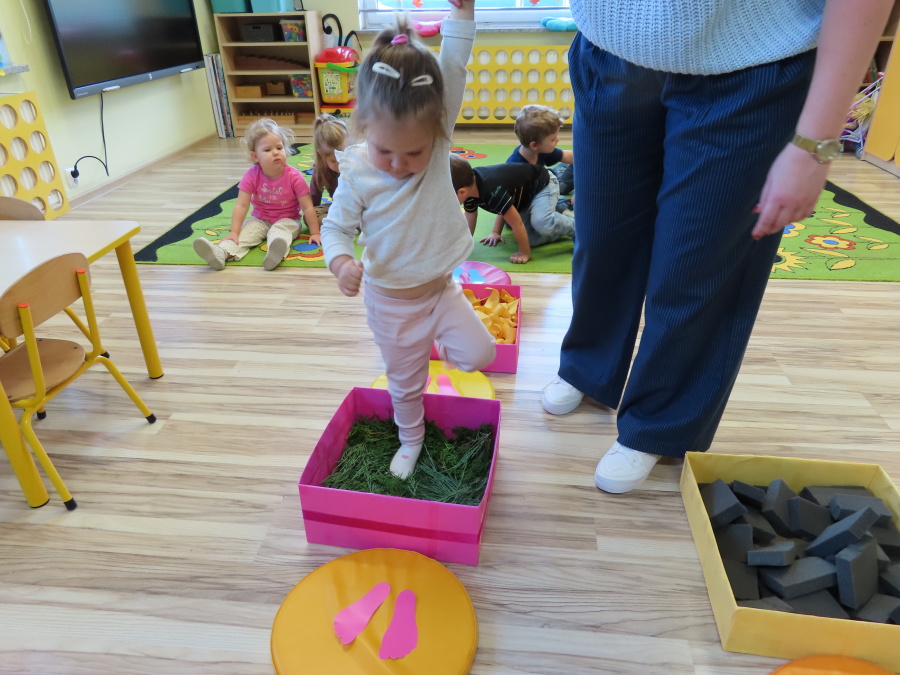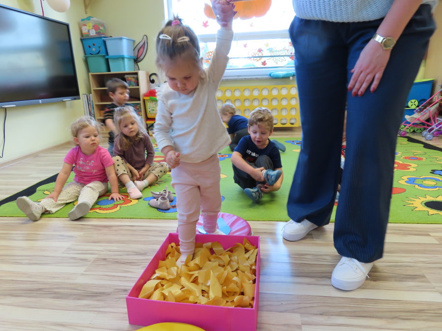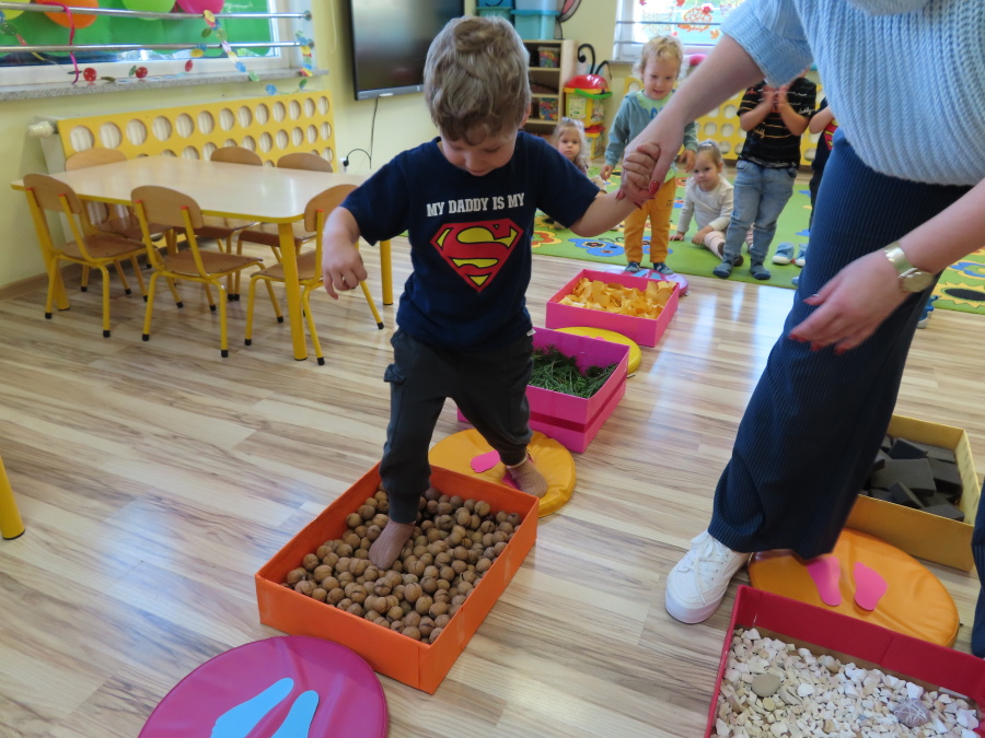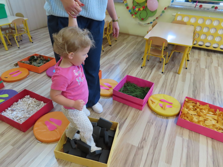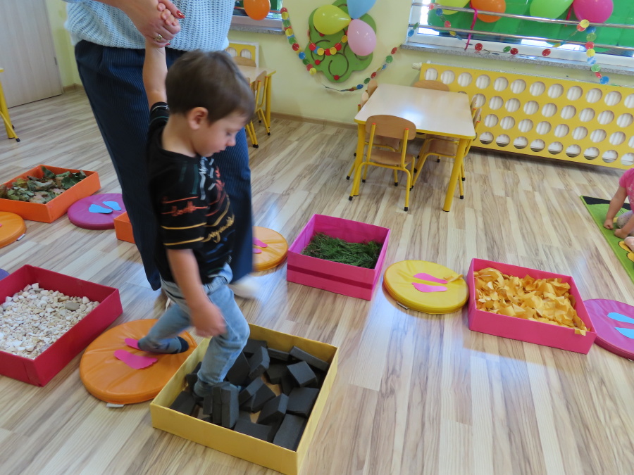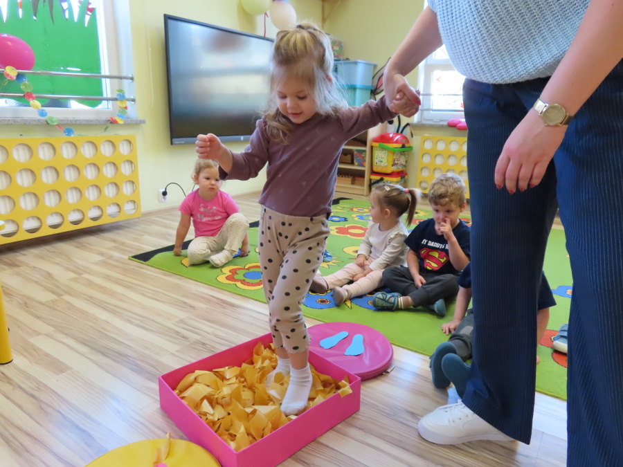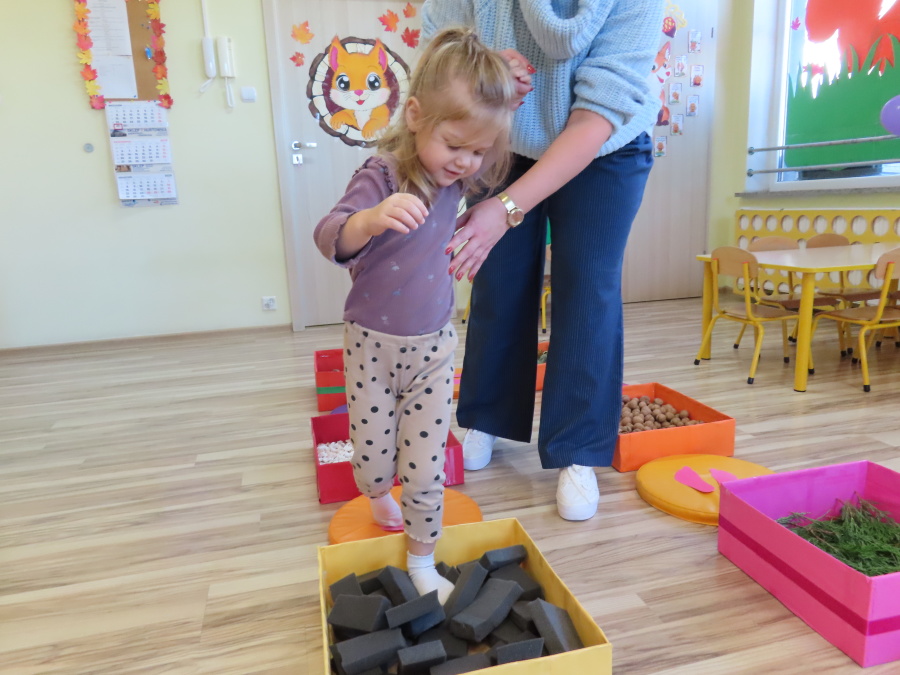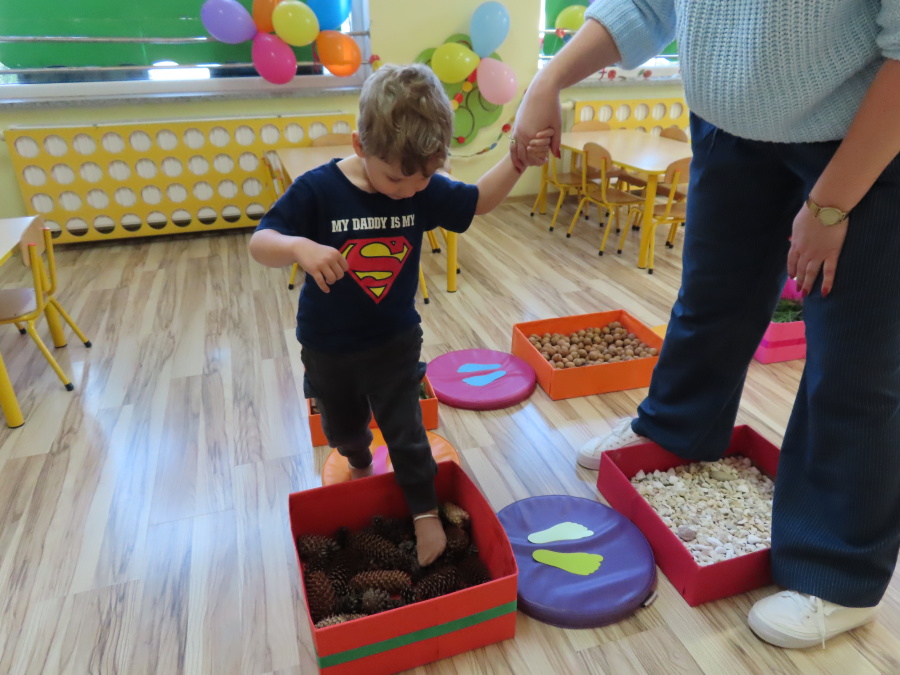 Zajęcia sensoryczne w Pszczółkach.???? Jesień dzisiaj przyszła do nas w postaci ścieżki sensorycznej. Wykorzystaliśmy szyszki, orzechy, liście, kamienie, a także przyjemne w dotyku pianki i szeleszczące papierki. ???????????????? Ścieżka sensoryczna ma ogromne znaczenie dla małych stópek, rozwija równowagę i koordynację ruchową. Usprawnia motorykę, rozwija wrażenia dotykowe, a co najważniejsze pozwala maluszkom rozwinąć wyobraźnię dotykową. ???????????? Ścieżka sensoryczna to również świetna zabawa i test na odwagę, który każda pszczółka zdała na medal.