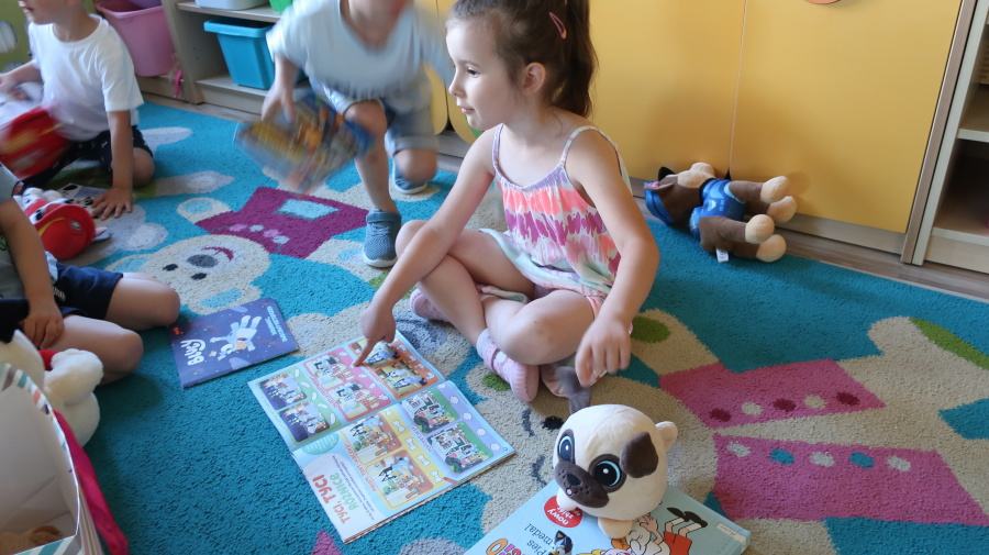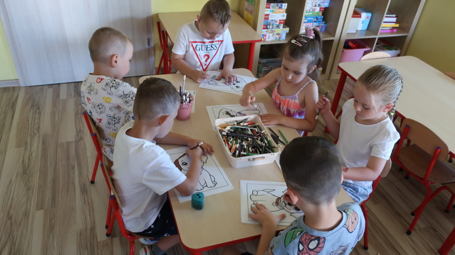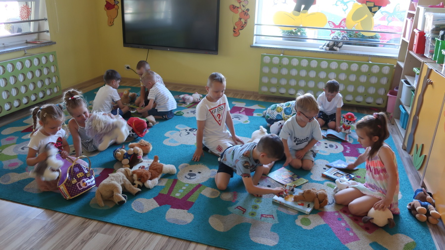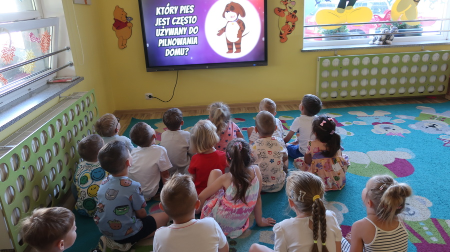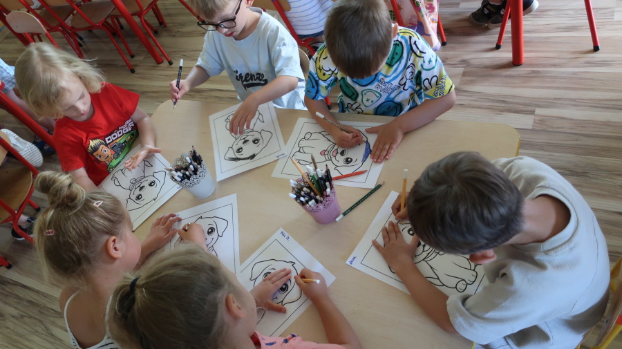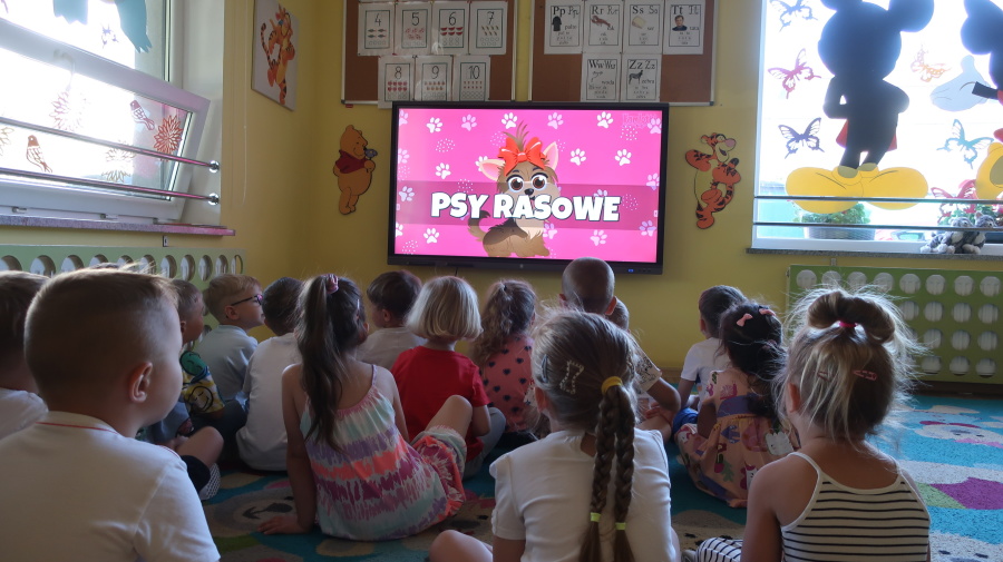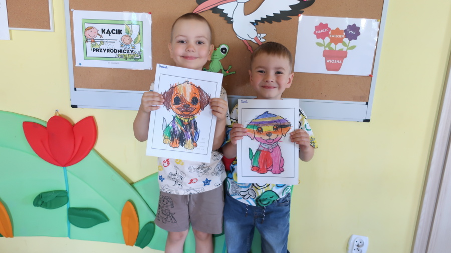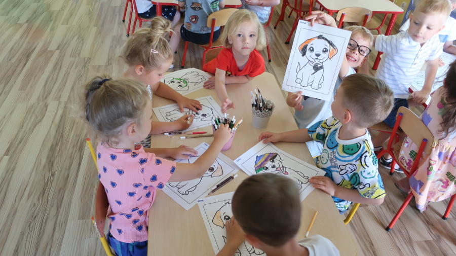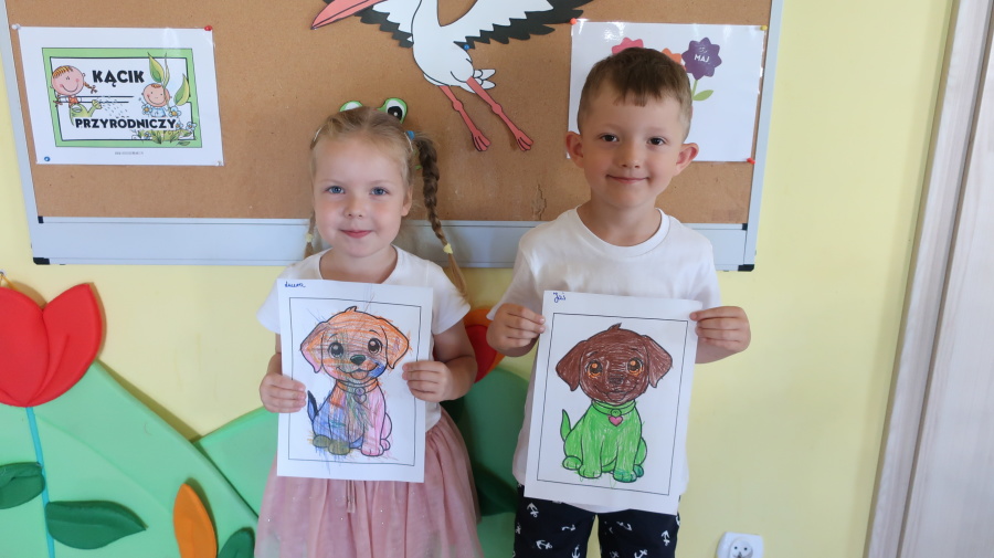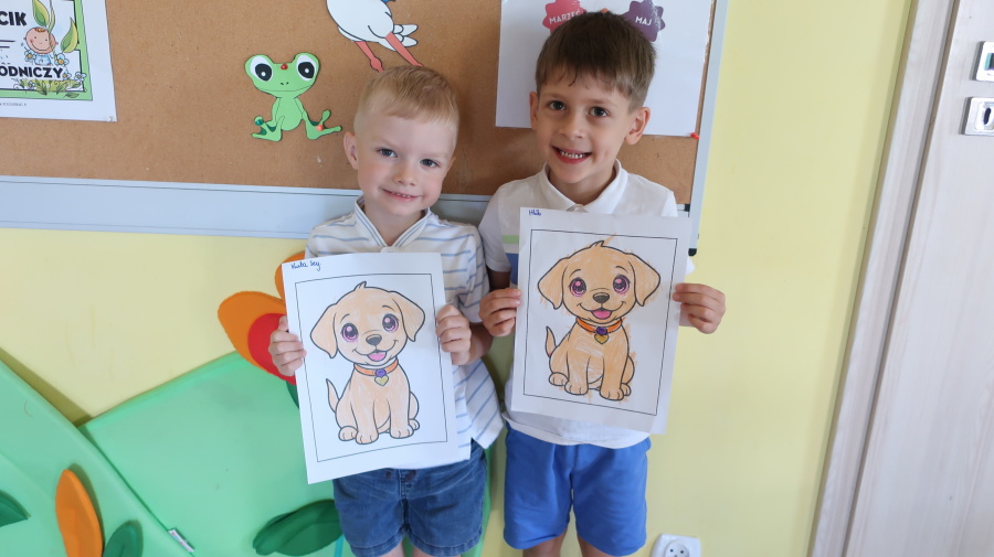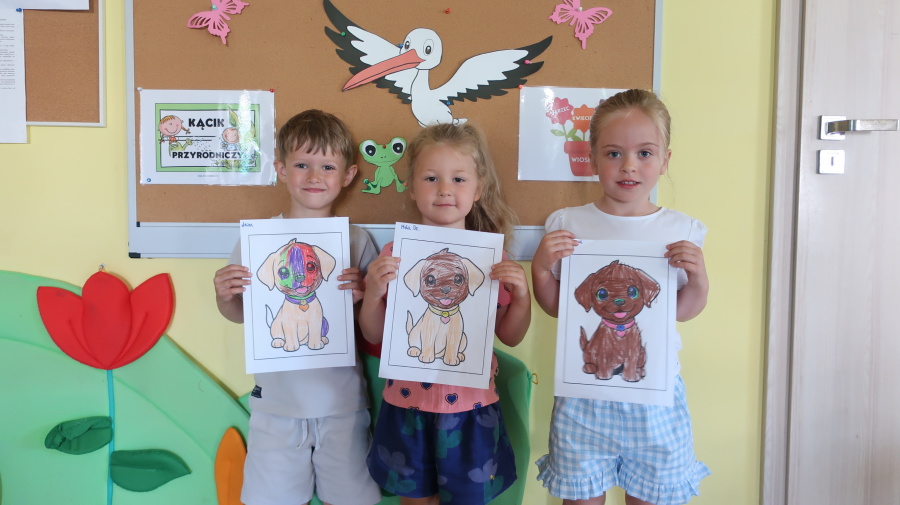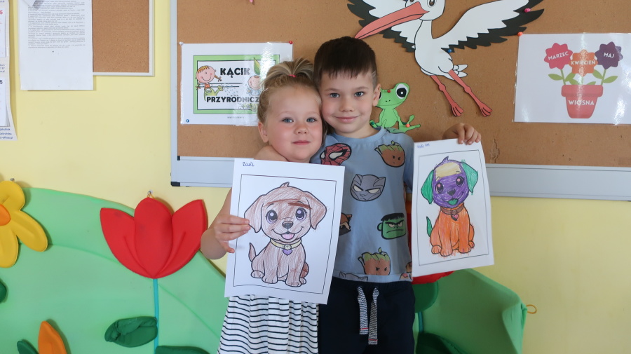 Z okazji „Dnia Psa” tygryski obejrzały film edukacyjne, dzięki którym dowiedziały się, jakie są rasy psów, jak dbać o psy i jakie mają one znaczenie w życiu człowieka. Następnie pokolorowały obrazki przedstawiające psy, rozwijając przy tym kreatywność i sprawność manualną. Dzieci przyniosły również swoje pluszowe pieski oraz książki o psach, które wspólnie oglądaliśmy i omawialiśmy. Dzień upłynął w miłej i radosnej atmosferze.