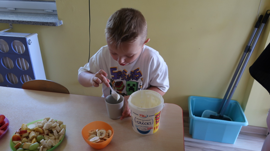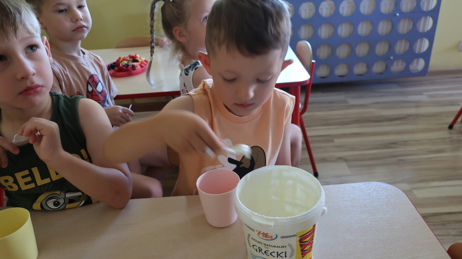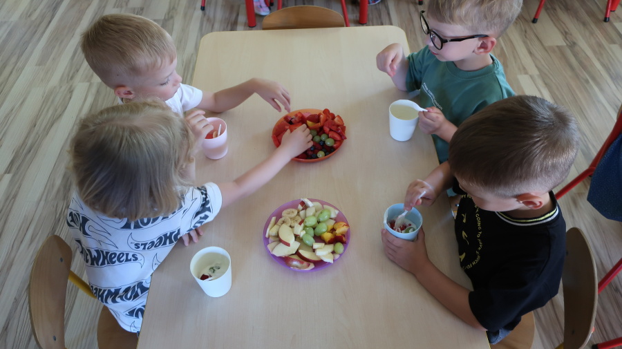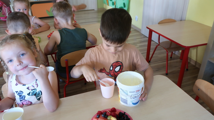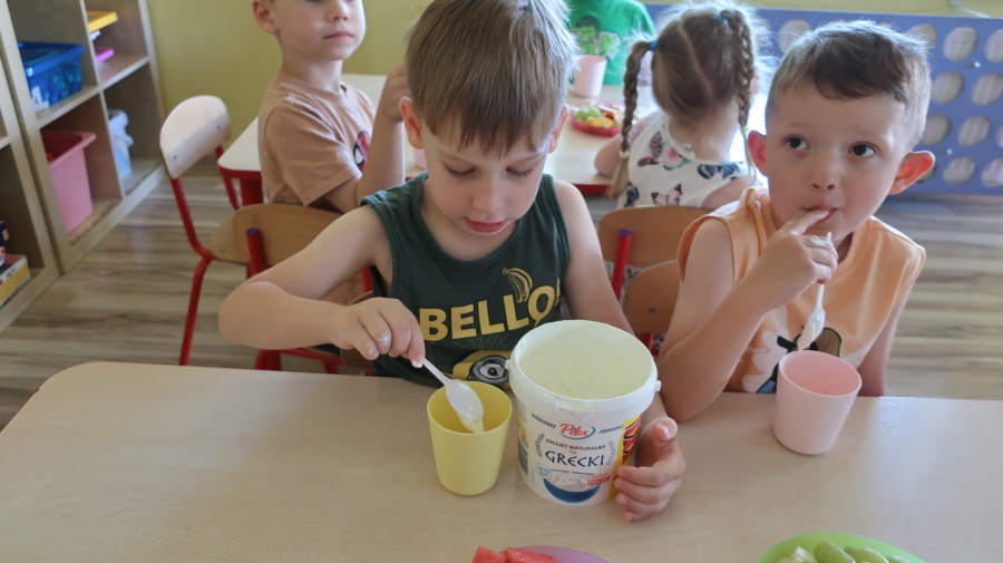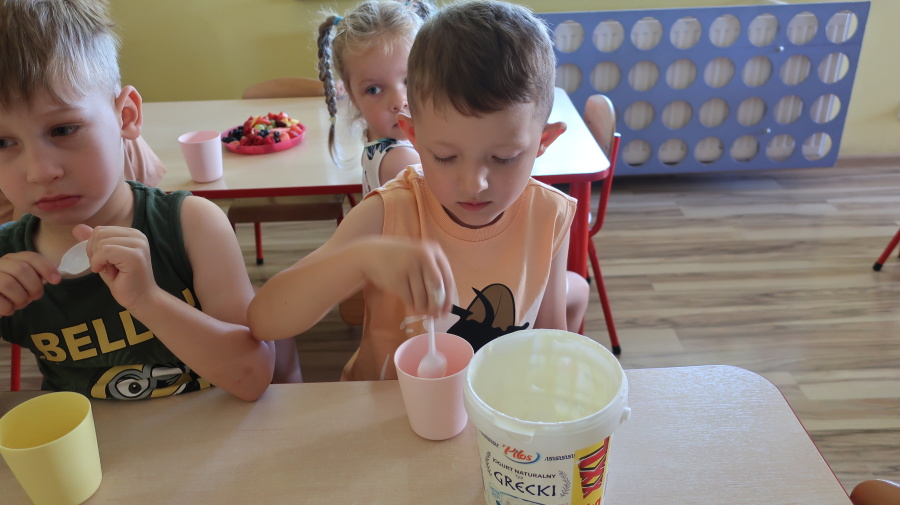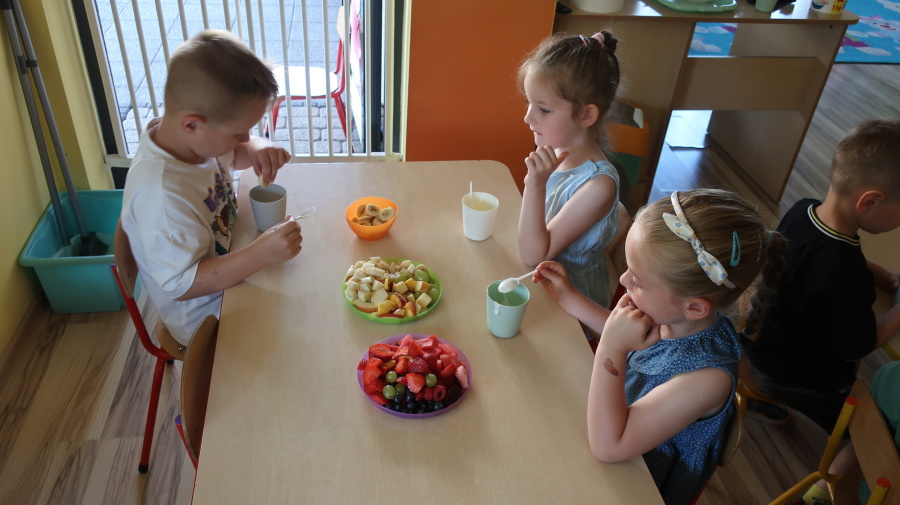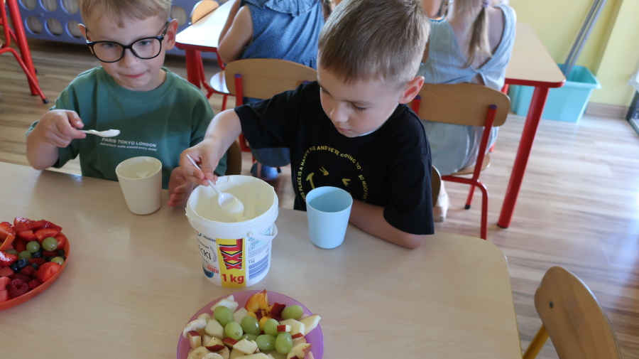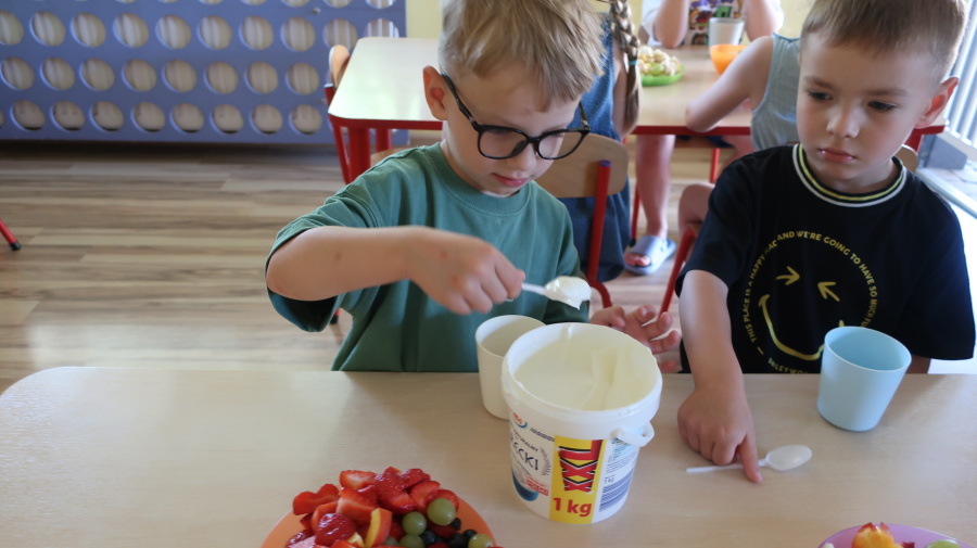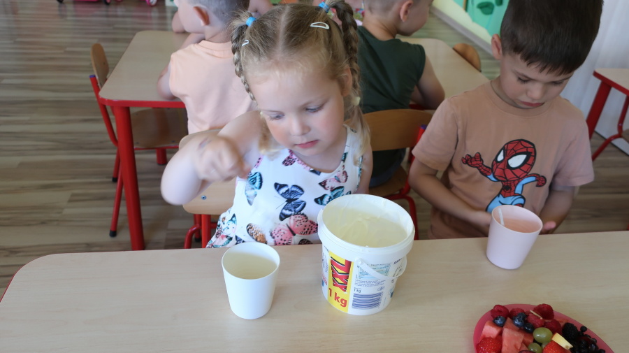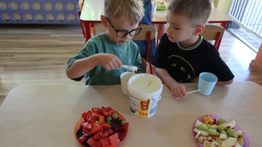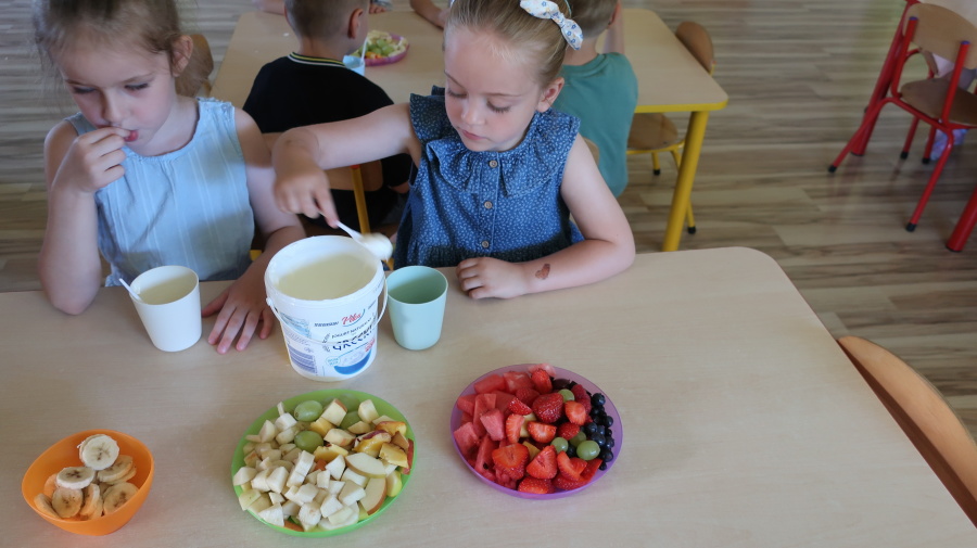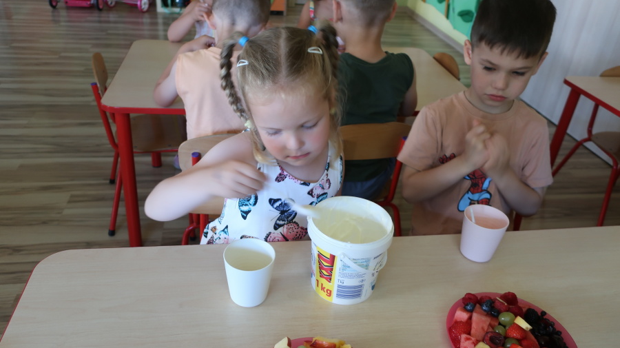 Podczas dzisiejszego Dnia Smakosza Tygryski przyniosły do przedszkola swoje ulubione owoce. Wspólnie przygotowały pyszne deserki, łącząc owoce z zimnym jogurtem naturalnym. Degustacja sprawiła wszystkim dużo radości, a przy okazji była świetną lekcją zdrowego odżywiania.
