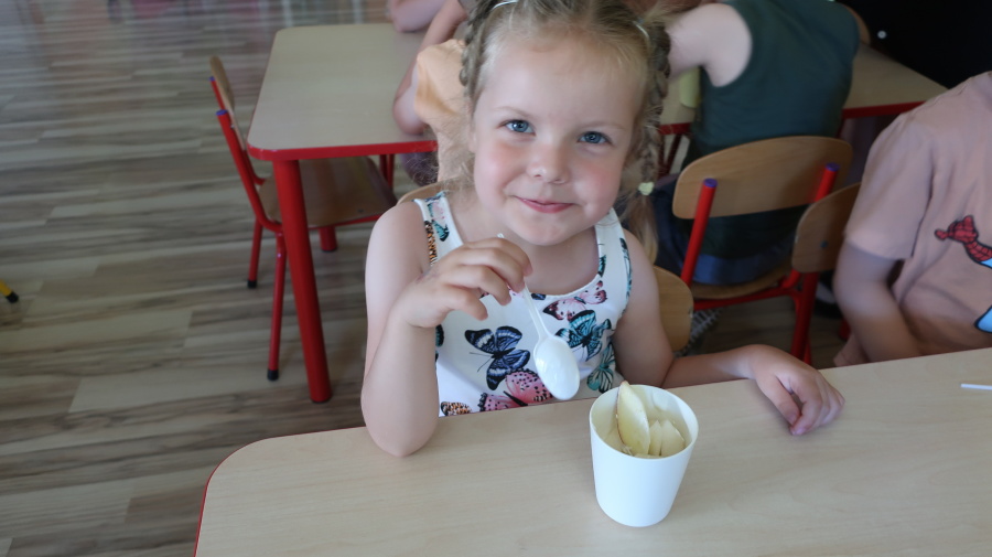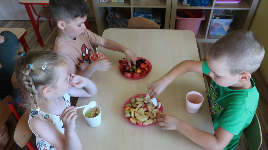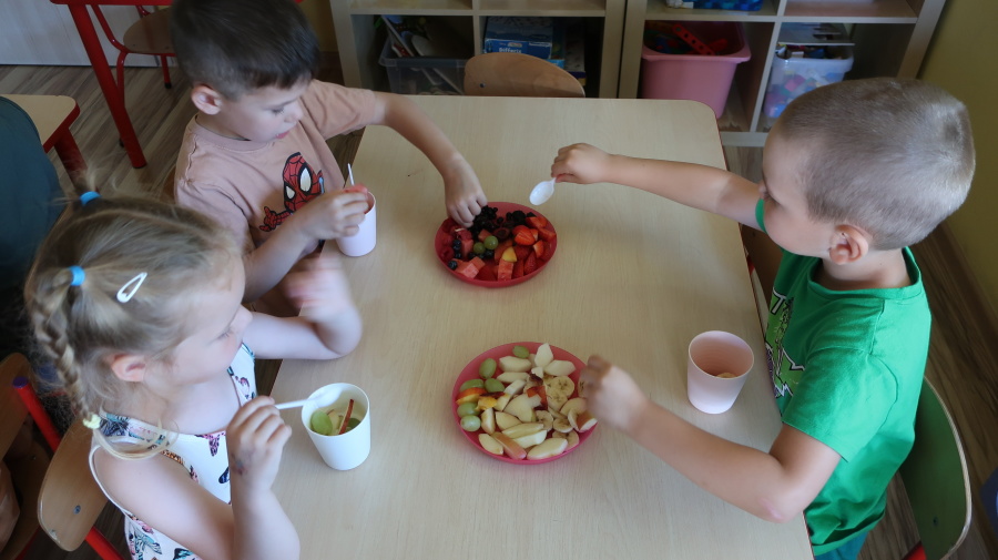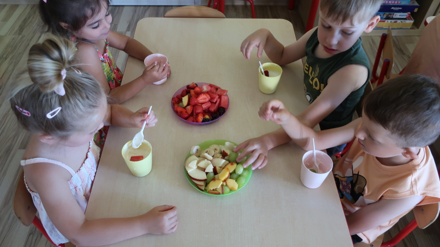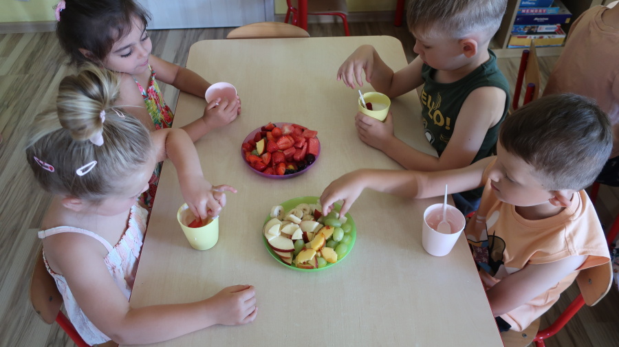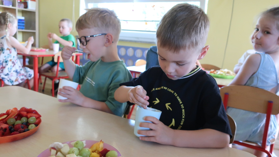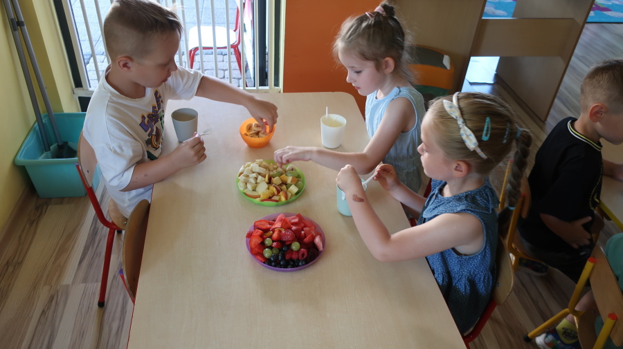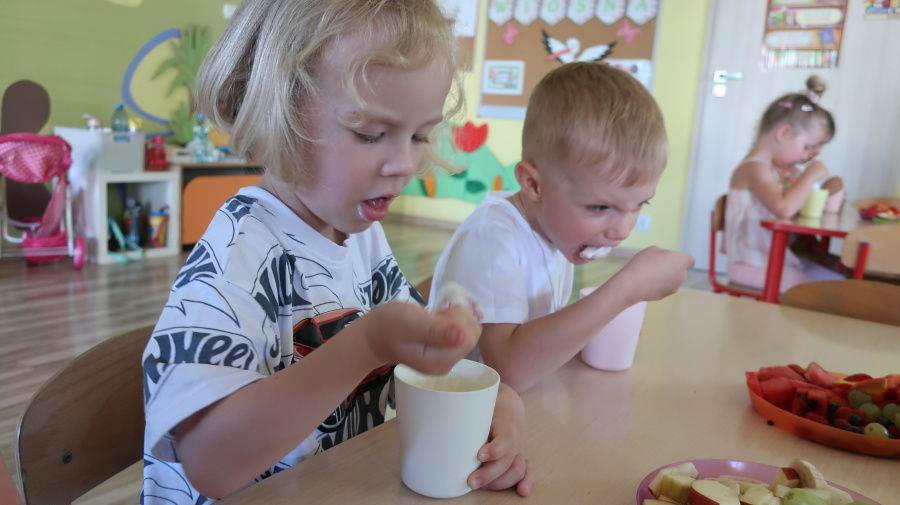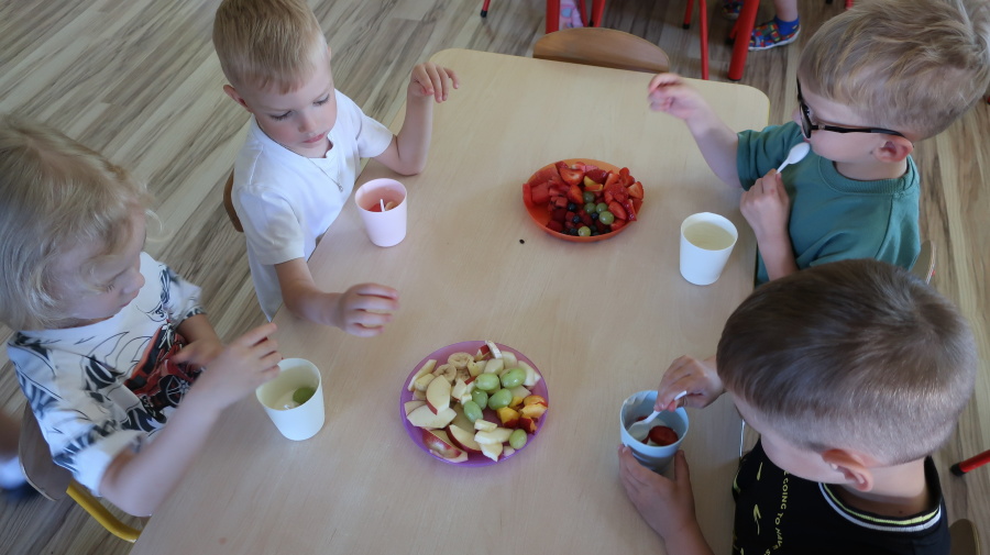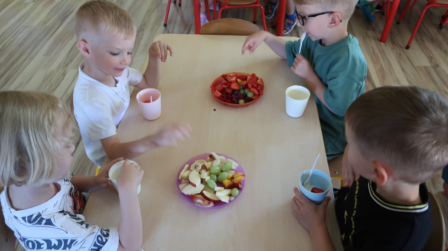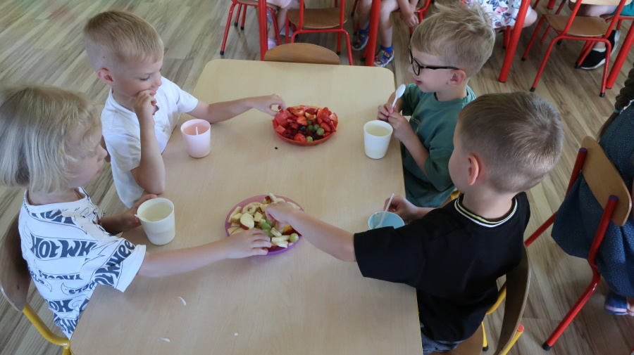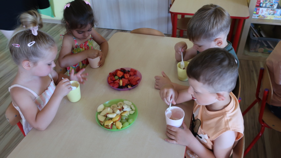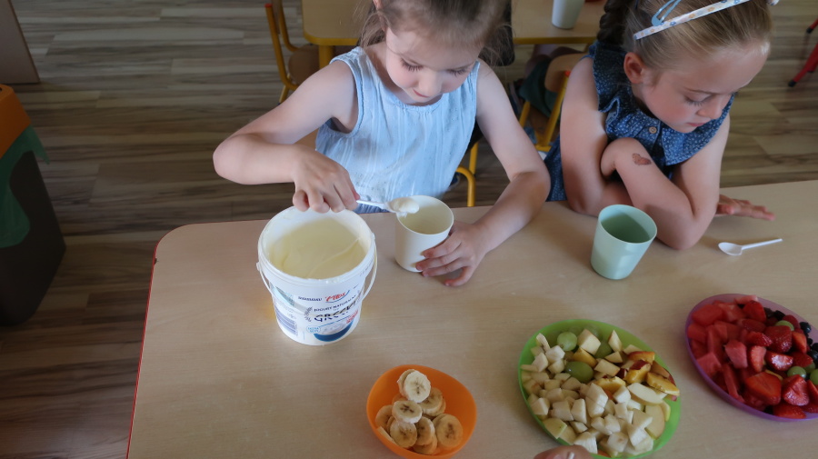 Podczas dzisiejszego Dnia Smakosza Tygryski przyniosły do przedszkola swoje ulubione owoce. Wspólnie przygotowały pyszne deserki, łącząc owoce z zimnym jogurtem naturalnym. Degustacja sprawiła wszystkim dużo radości, a przy okazji była świetną lekcją zdrowego odżywiania.
