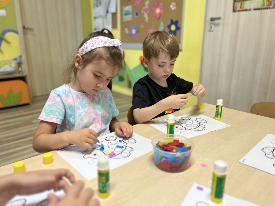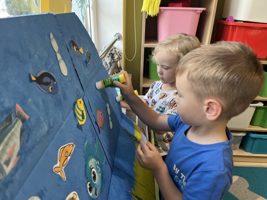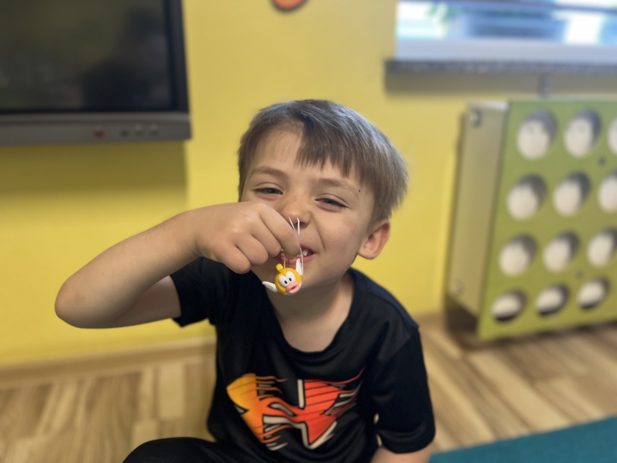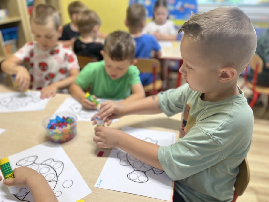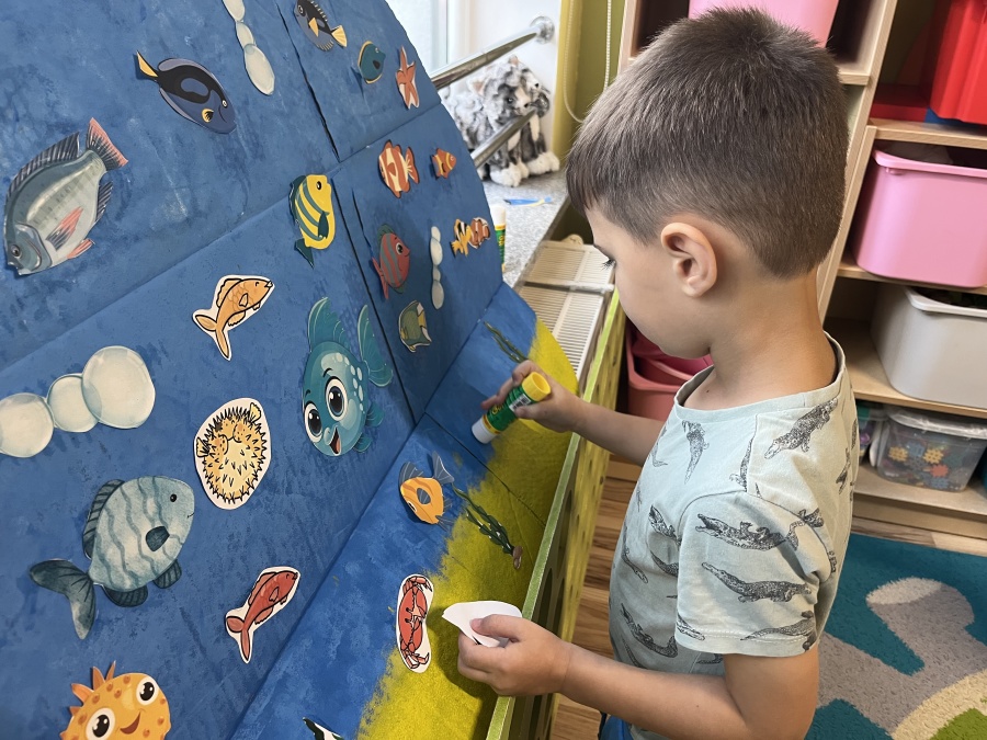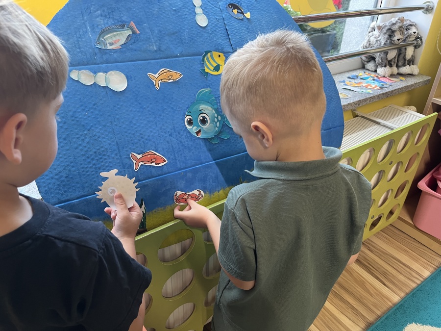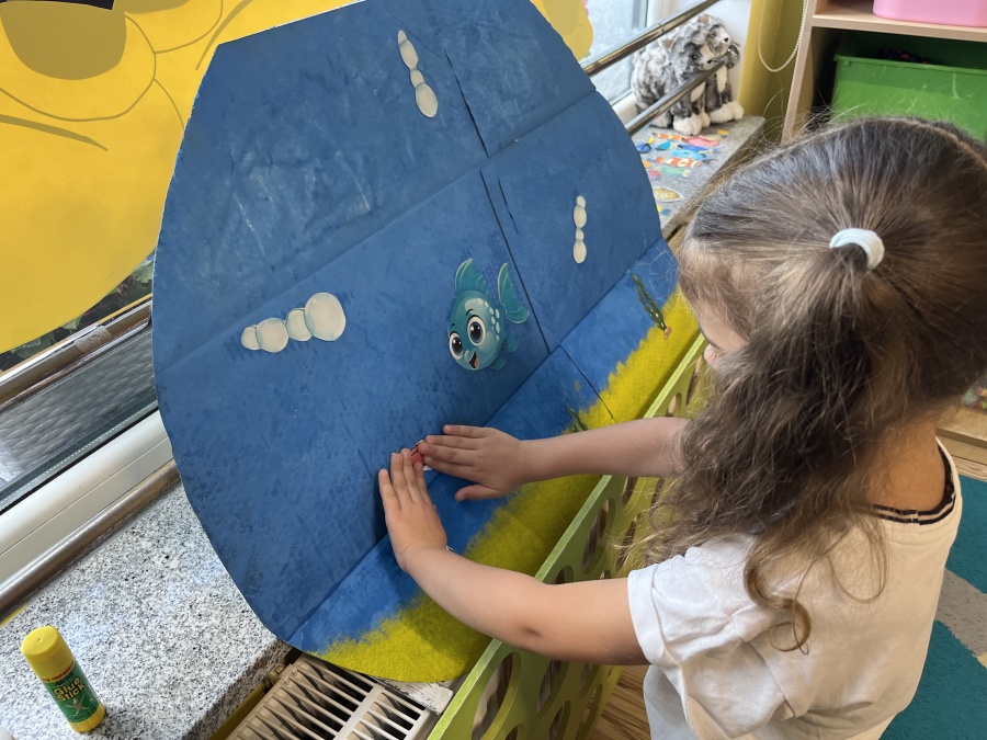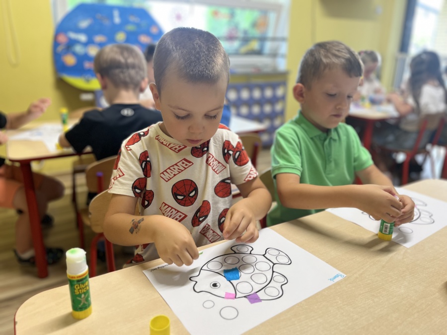 W ramach Dnia Ryby Tygryski obejrzały krótki film edukacyjny o życiu pod wodą, wykleiły bibułą kolorowe rybki oraz wspólnie wykonały akwarium. Przyniosły też z domu gadżety związane z rybami, którymi chętnie się dzieliły. Dzień upłynął w radosnej i twórczej atmosferze.