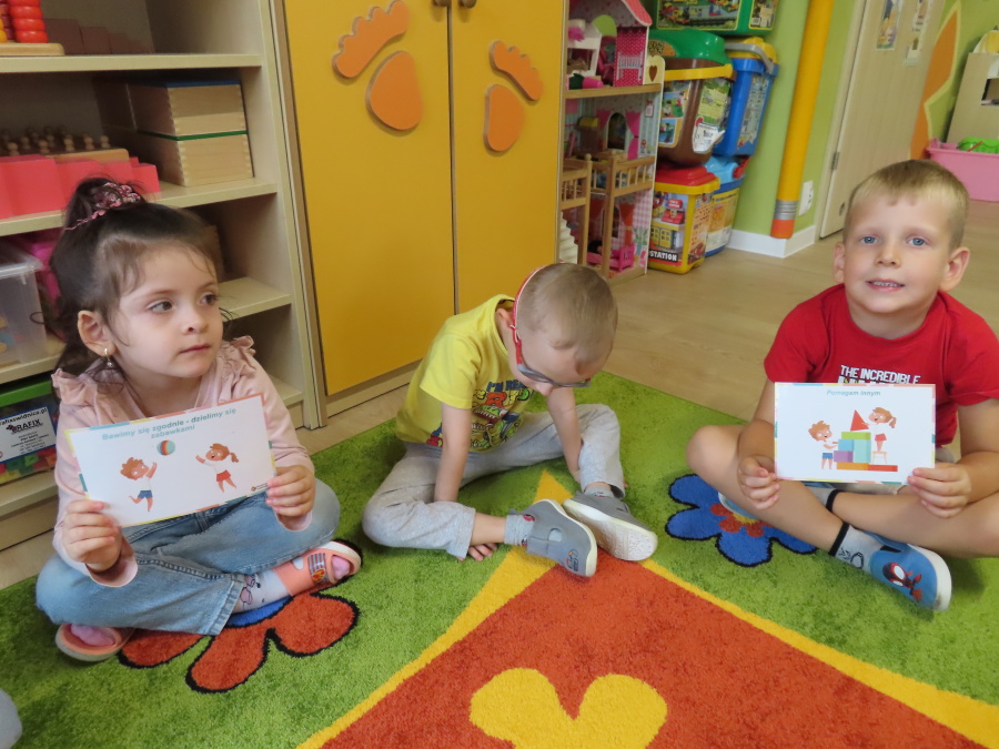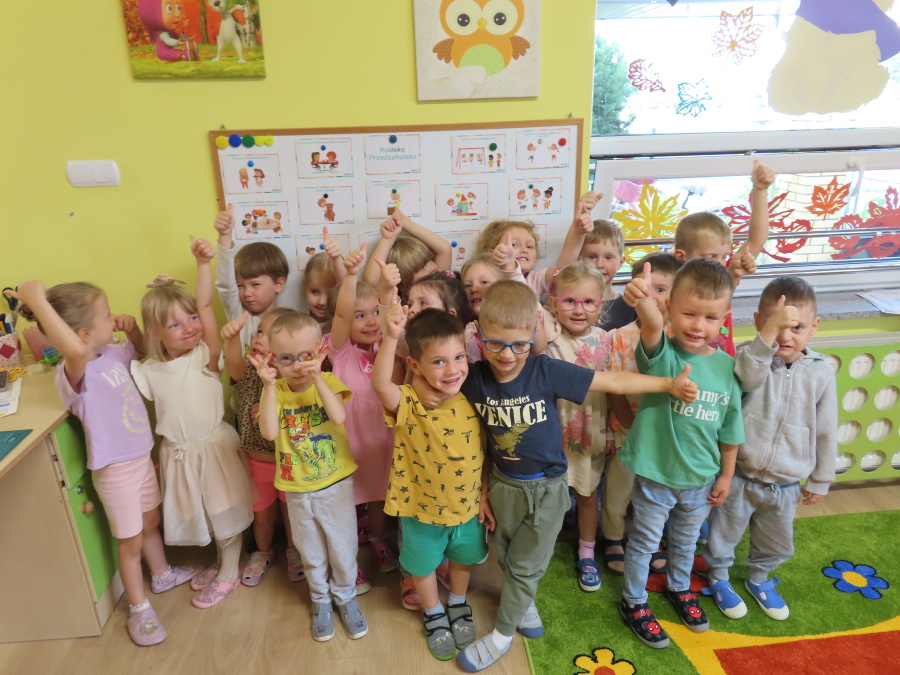 Dziś w naszej grupie rozmawialiśmy o Kodeksie Przedszkolaka. Wspólnie przypomnieliśmy sobie zasady, które pomagają nam miło i bezpiecznie spędzać czas. Dzieci podawały swoje pomysły, a następnie razem stworzyliśmy nasz kodeks, który będzie nam towarzyszył każdego dnia. Dzięki temu wszyscy wiemy, jak ważne jest bycie koleżeńskim, dbanie o zabawki, słuchanie siebie nawzajem i przestrzeganie ustalonych reguł.