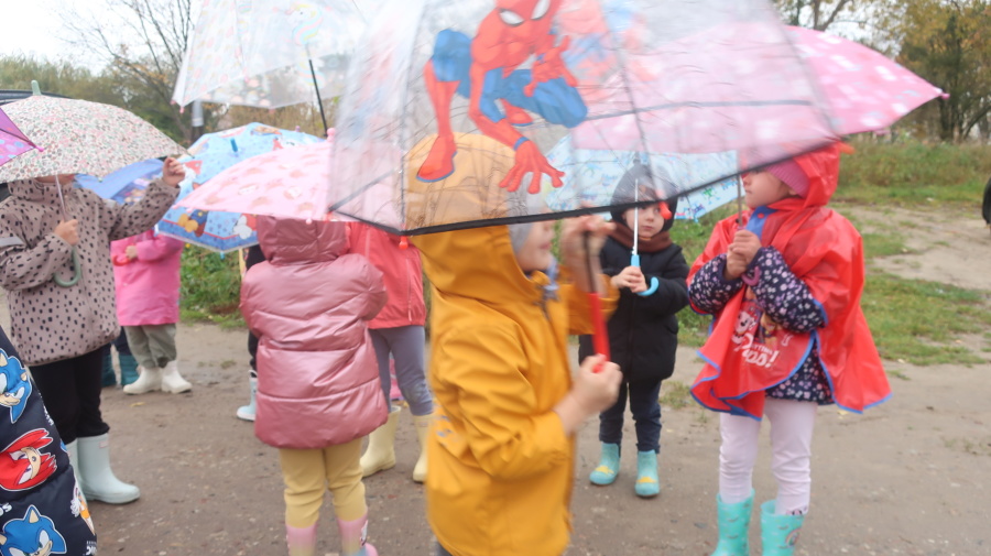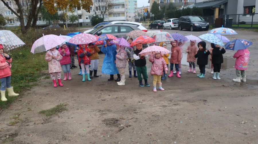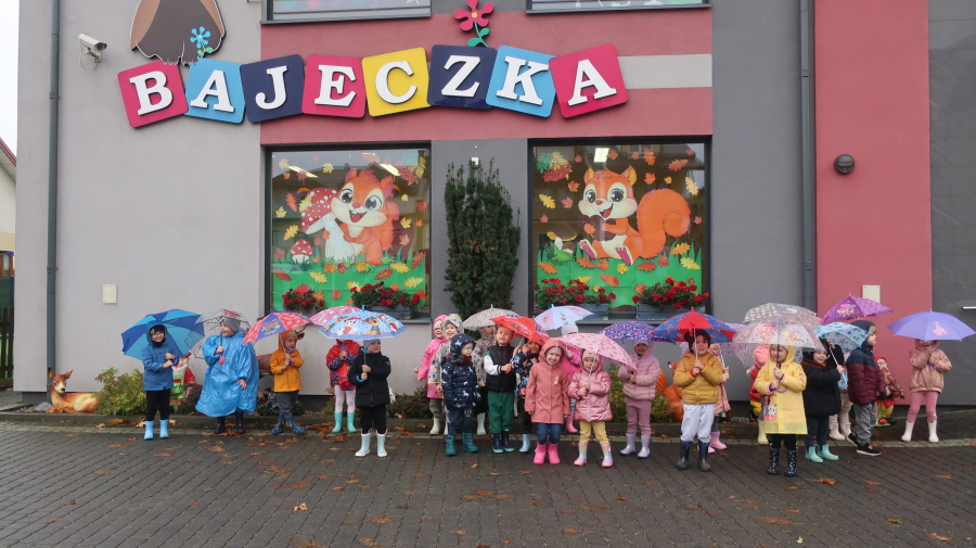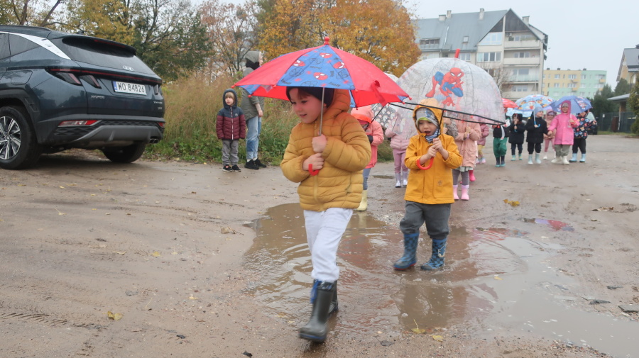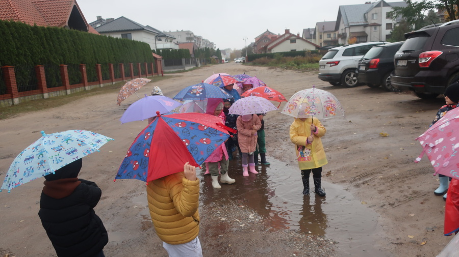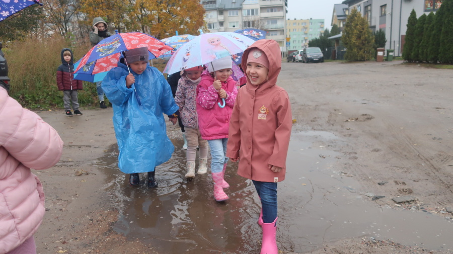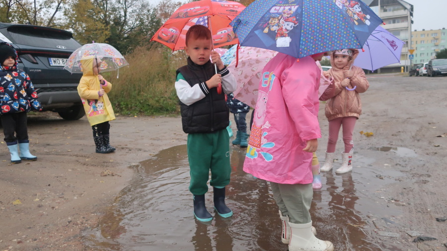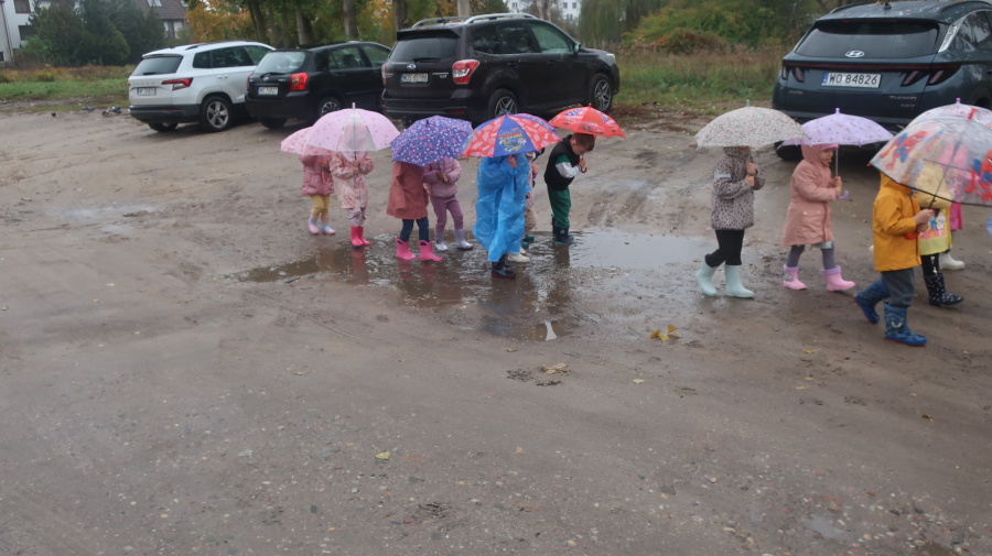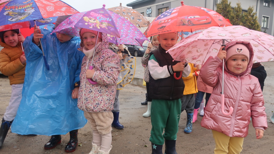 Dziś w grupie Tygrysków odbył się wyjątkowy dzień pod hasłem „Skaczemy po kałużach”. Dzieci przyszły do przedszkola wyposażone w kalosze, kolorowe parasole i płaszcze przeciwdeszczowe, gotowe na wspólną zabawę na świeżym powietrzu. Po krótkich przygotowaniach wszyscy wyruszyliśmy na jesienny spacer, podczas którego podziwialiśmy barwne liście i z radością skakaliśmy w kałużach. Dzieci miały mnóstwo frajdy, śmiechu i ruchu na świeżym powietrzu, a ten deszczowy dzień okazał się pełen ciepła i wspaniałych wspomnień.