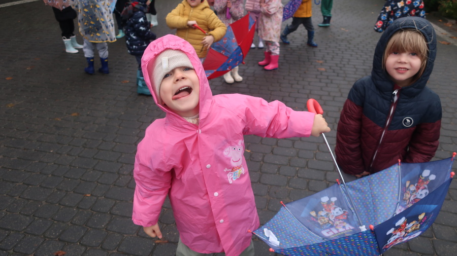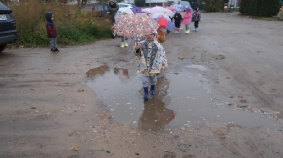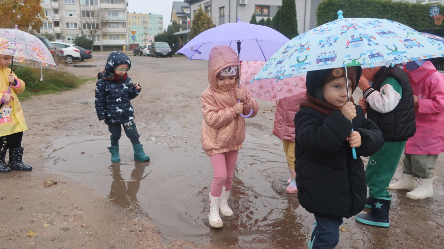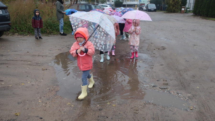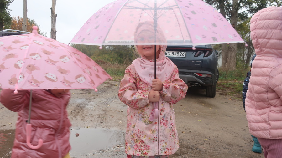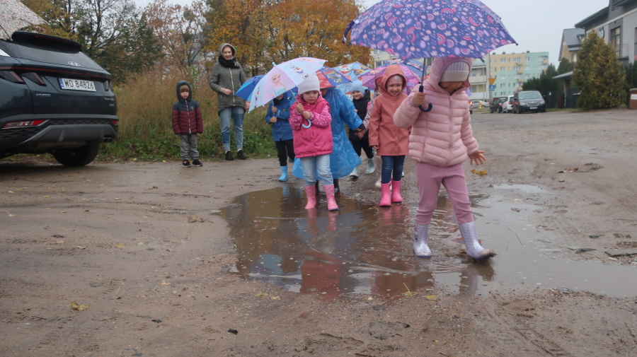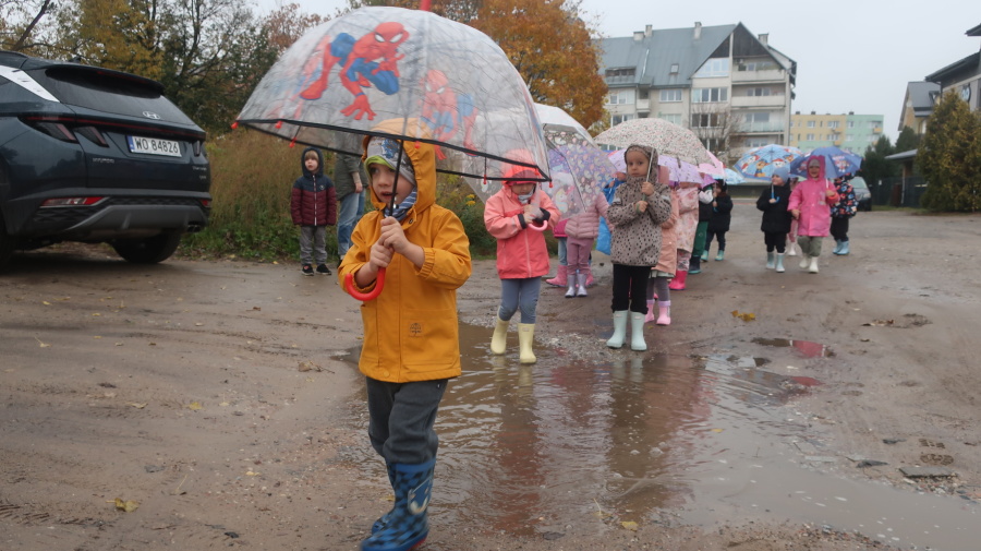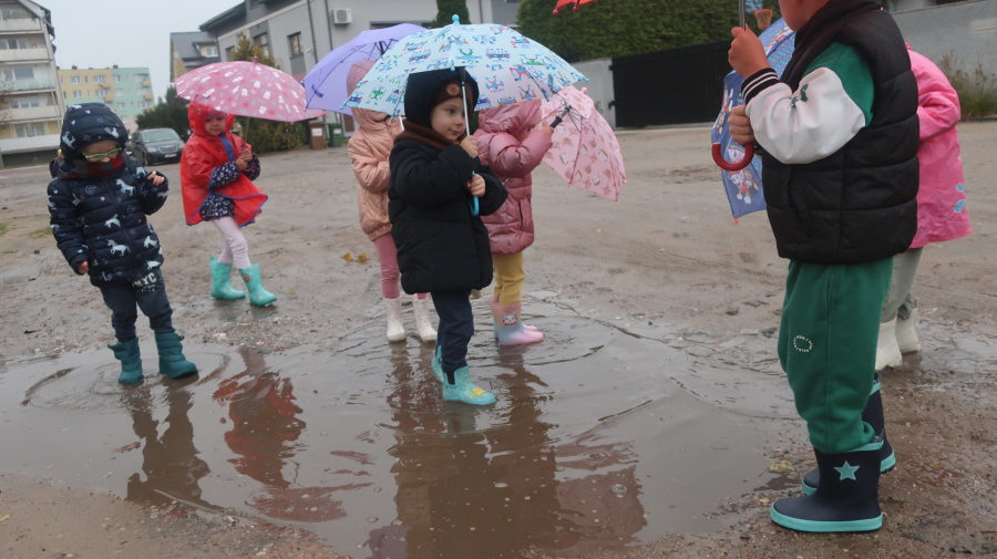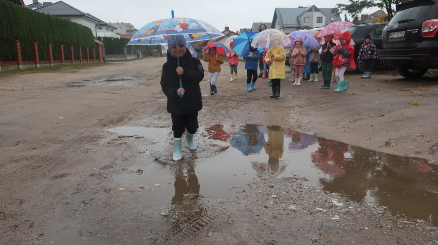 Dziś w grupie Tygrysków odbył się wyjątkowy dzień pod hasłem „Skaczemy po kałużach”. Dzieci przyszły do przedszkola wyposażone w kalosze, kolorowe parasole i płaszcze przeciwdeszczowe, gotowe na wspólną zabawę na świeżym powietrzu. Po krótkich przygotowaniach wszyscy wyruszyliśmy na jesienny spacer, podczas którego podziwialiśmy barwne liście i z radością skakaliśmy w kałużach. Dzieci miały mnóstwo frajdy, śmiechu i ruchu na świeżym powietrzu, a ten deszczowy dzień okazał się pełen ciepła i wspaniałych wspomnień.