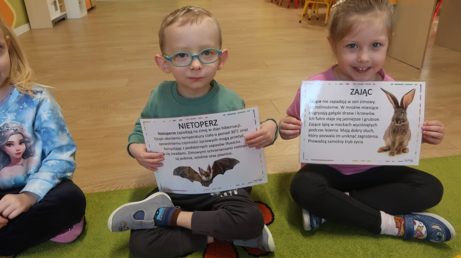 Dziś w naszej grupie odbyły się zajęcia pt. „Zimowe domy zwierząt”. Dzięki nim dzieci dowiedziały się, w jaki sposób różne zwierzęta przygotowują się do zimy, jak nazywają się ich domy oraz jakie gromadzą zapasy pożywienia. Rozmawialiśmy także o tym, jak można pomagać zwierzętom zimą – szczególnie ptakom, które zostają w naszym kraju. Podczas zajęć obejrzeliśmy również film edukacyjny, który pomógł nam lepiej zrozumieć temat, a następnie rozwiązaliśmy quizy, aby utrwalić zdobytą wiedzę. Na zakończenie wykonaliśmy pracę plastyczną – karmnik dla ptaszków, który przypomniał nam, jak ważne jest dokarmianie ptaków w czasie zimy.