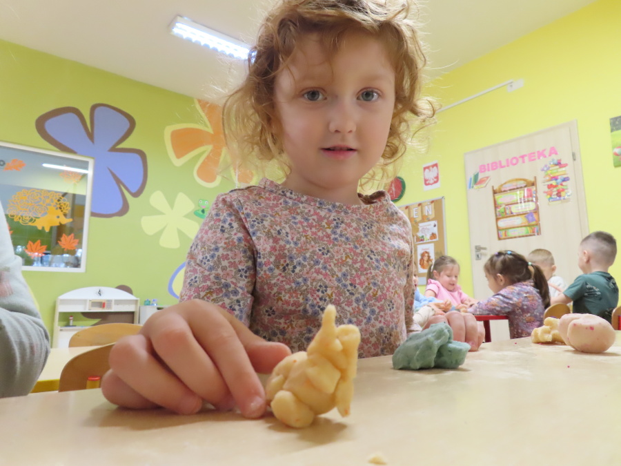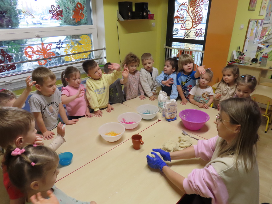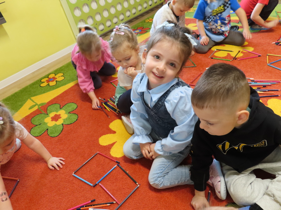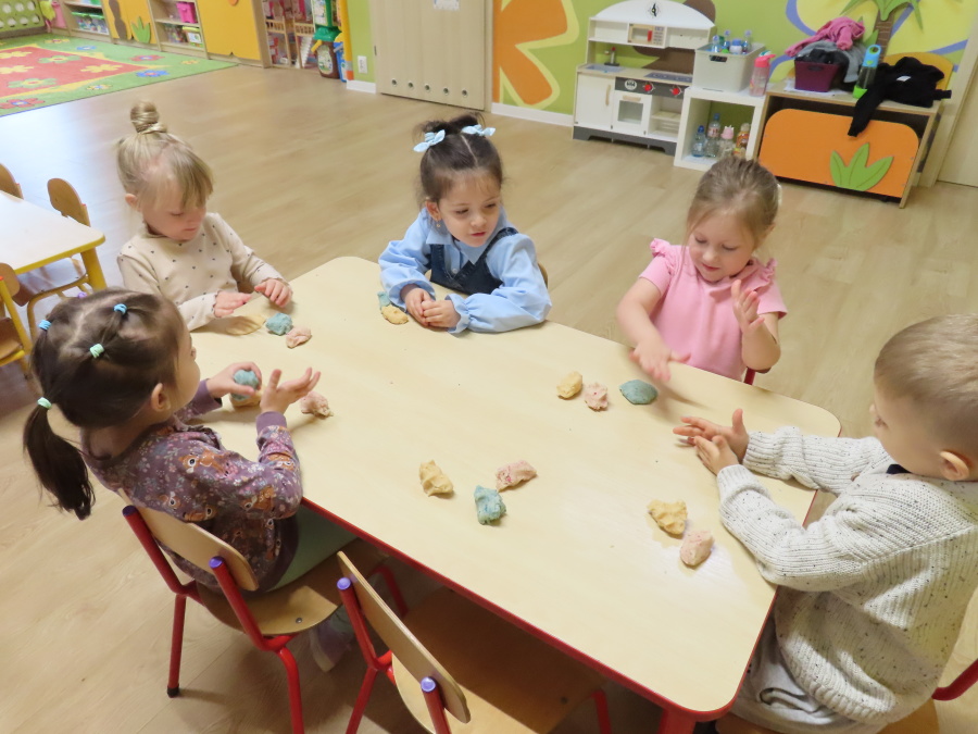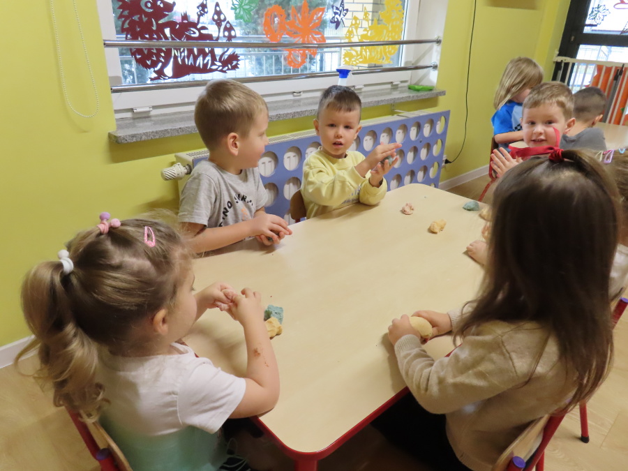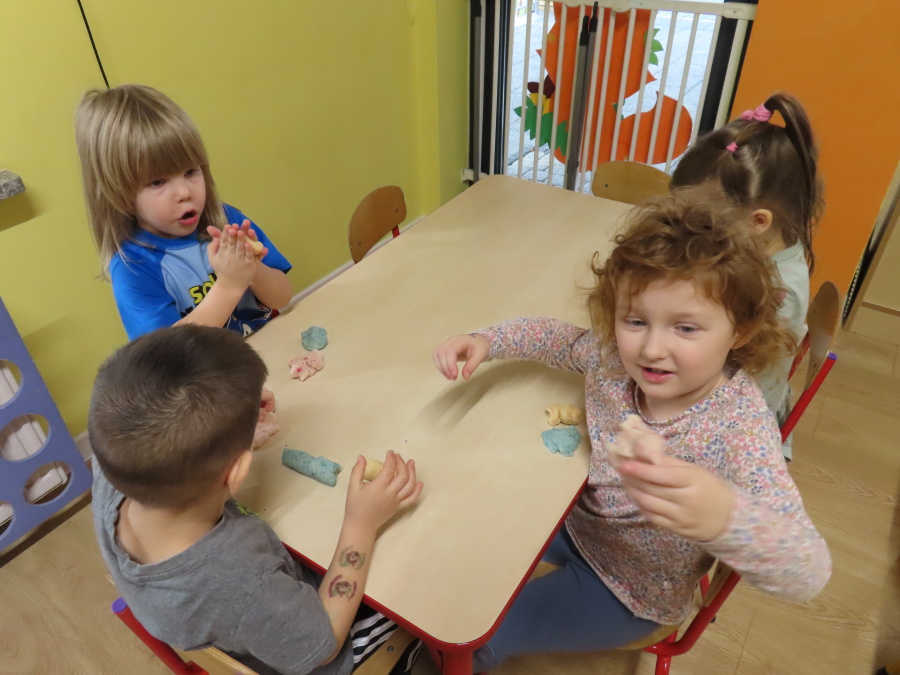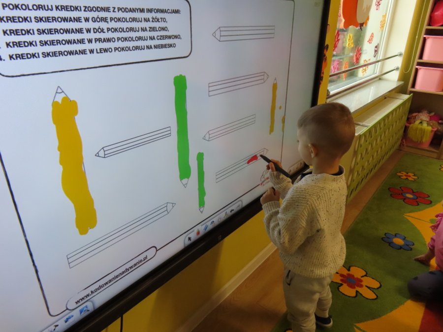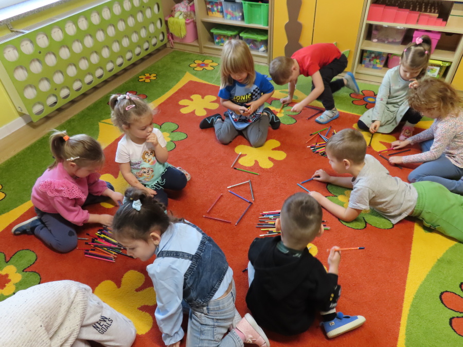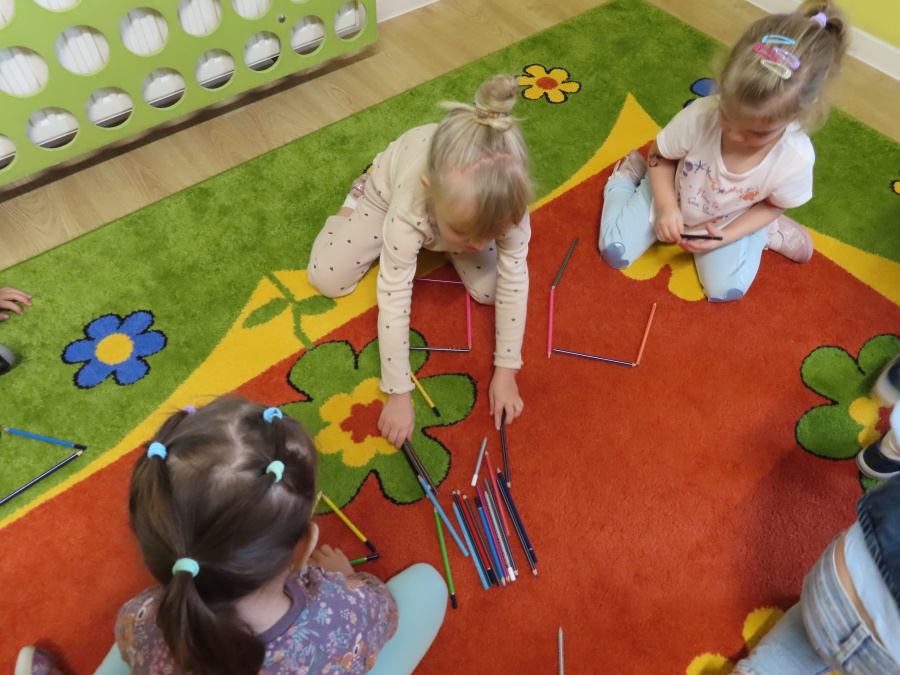 W grupie Tygrysków obchodziliśmy dziś Dzień Kredki, pełen barw i twórczej zabawy. Dzieci dowiedziały się, jak wytwarzane są kredki, a następnie z zaangażowaniem rozwiązywały zadania na tablicy multimedialnej. Na dywanie układały różne figury z kolorowych kredek, rozwijając przy tym wyobraźnię i sprawność manualną. Nie zabrakło także kolorowania – każdy uczestnik ozdabiał obrazek przedstawiający kredki, dobierając barwy według własnego pomysłu. W ramach zajęć sensorycznych przedszkolaki wspólnie przygotowały masę plastyczną, wykorzystując starte na tarce kredki świecowe jako naturalne barwniki, a następnie lepiły z niej małe figurki i kształty, ćwicząc zręczność i kreatywność
