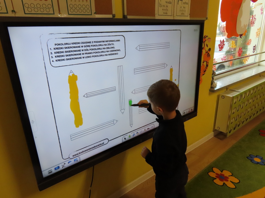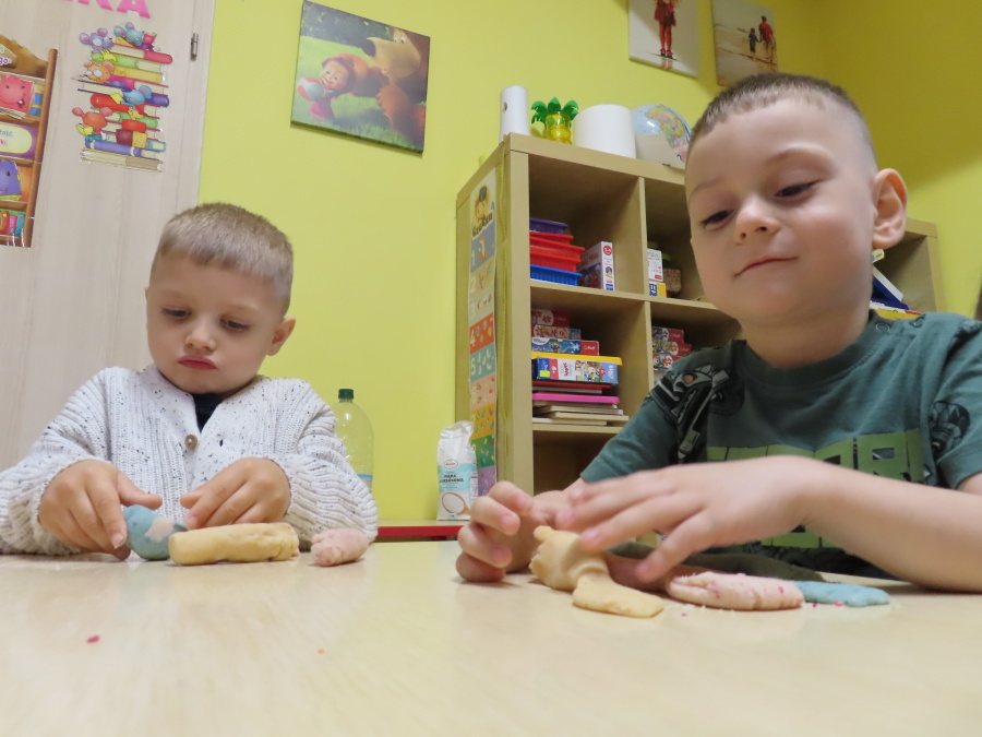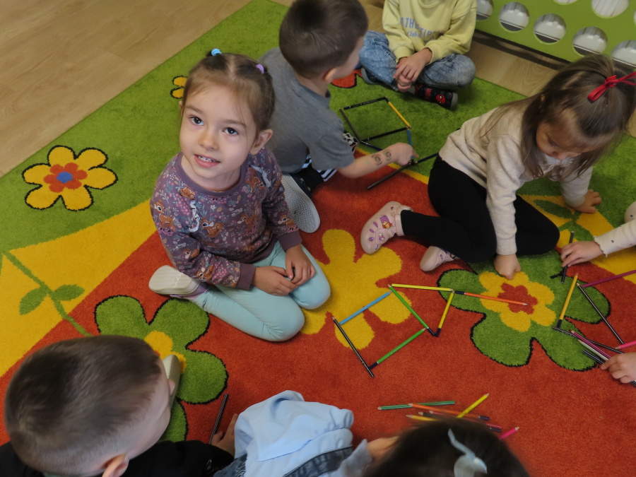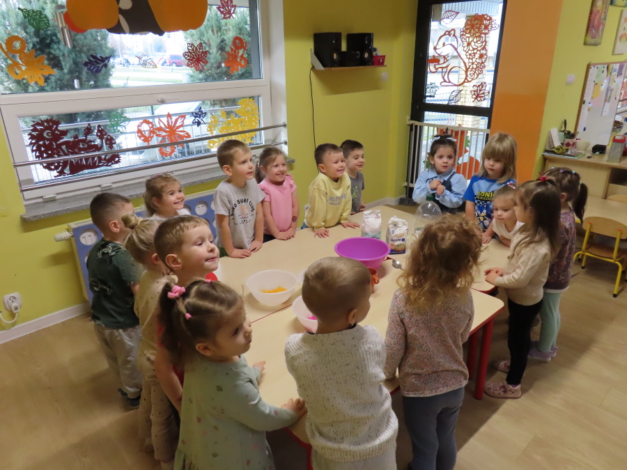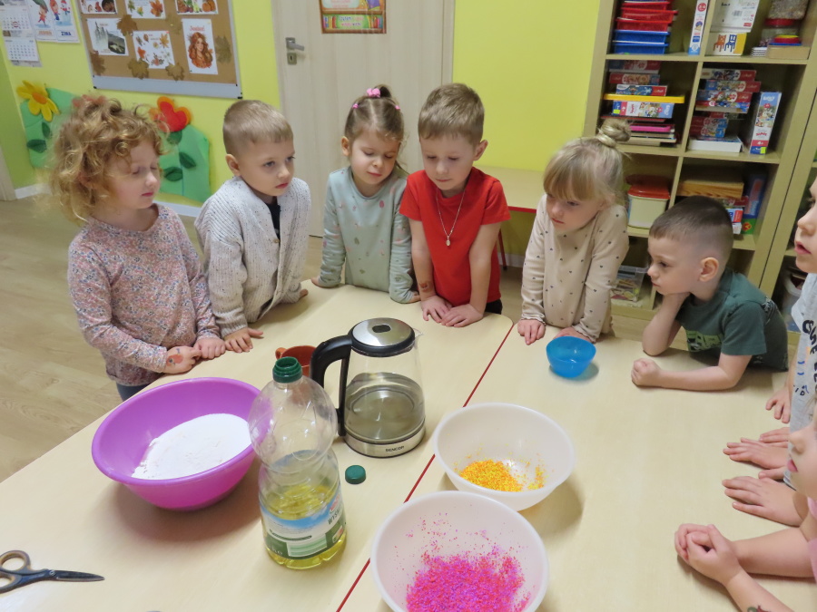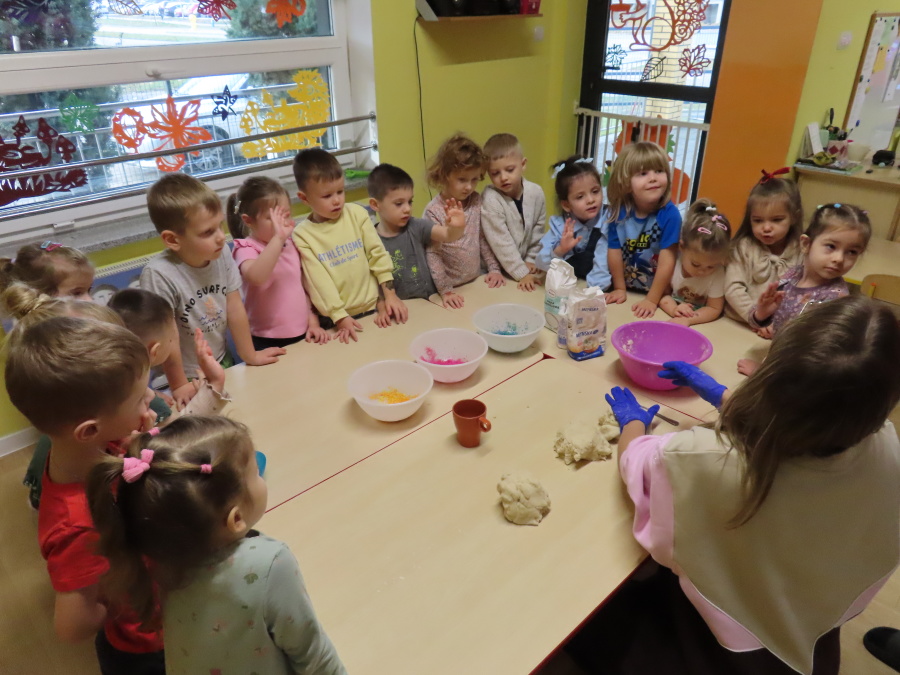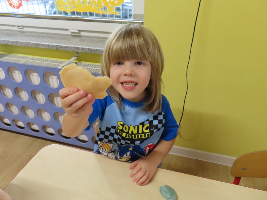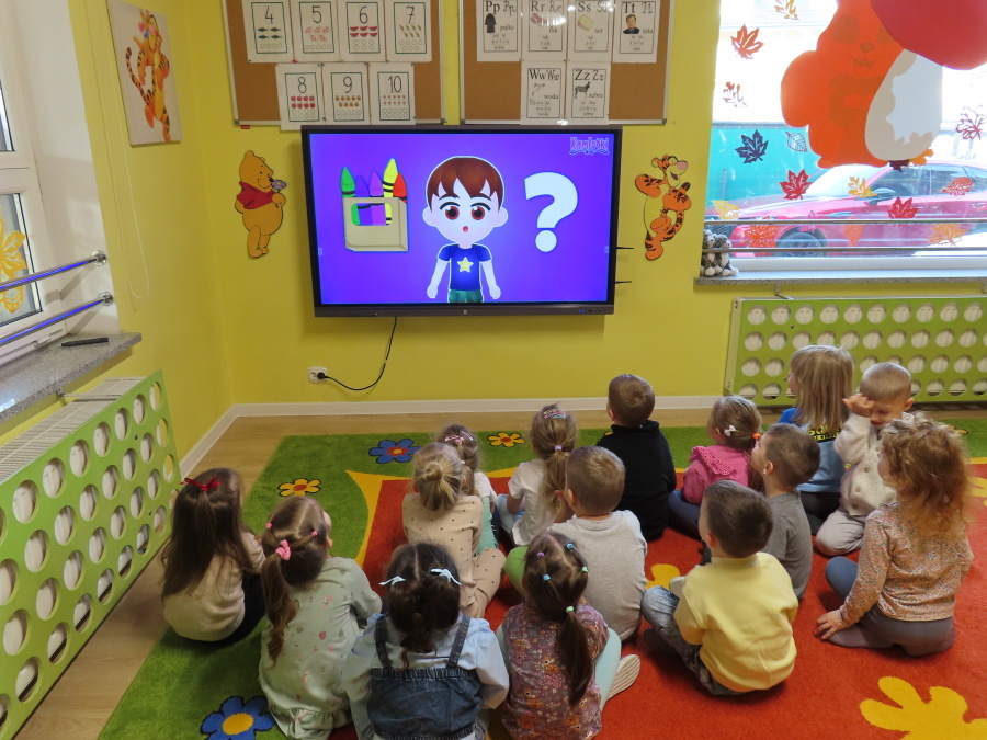W grupie Tygrysków obchodziliśmy dziś Dzień Kredki, pełen barw i twórczej zabawy. Dzieci dowiedziały się, jak wytwarzane są kredki, a następnie z zaangażowaniem rozwiązywały zadania na tablicy multimedialnej. Na dywanie układały różne figury z kolorowych kredek, rozwijając przy tym wyobraźnię i sprawność manualną. Nie zabrakło także kolorowania – każdy uczestnik ozdabiał obrazek przedstawiający kredki, dobierając barwy według własnego pomysłu. W ramach zajęć sensorycznych przedszkolaki wspólnie przygotowały masę plastyczną, wykorzystując starte na tarce kredki świecowe jako naturalne barwniki, a następnie lepiły z niej małe figurki i kształty, ćwicząc zręczność i kreatywność