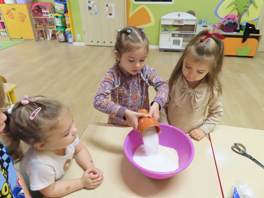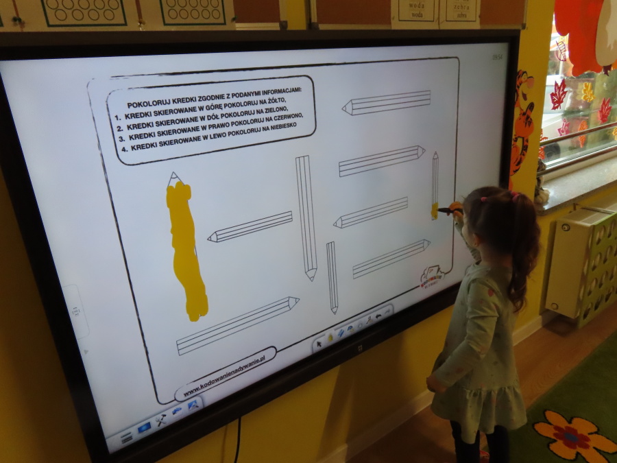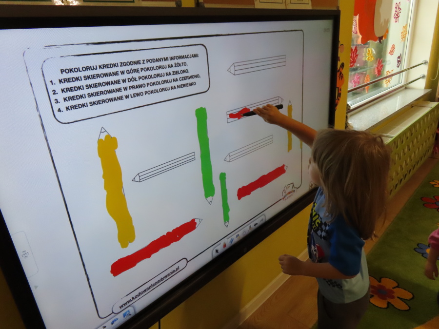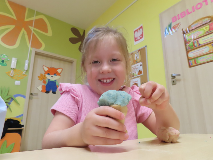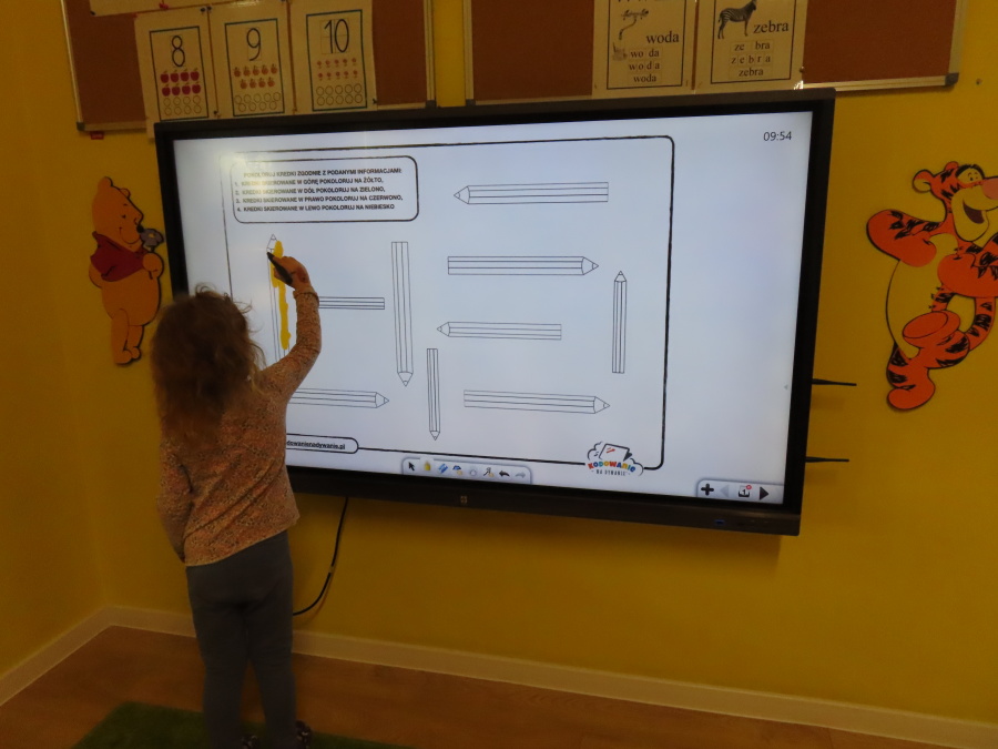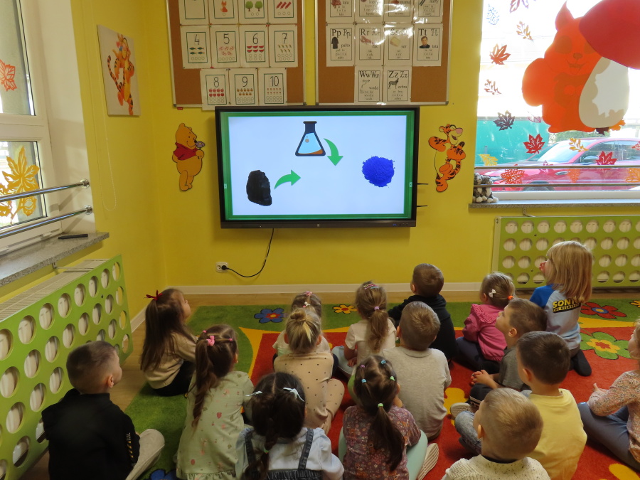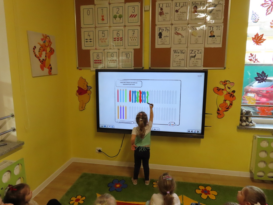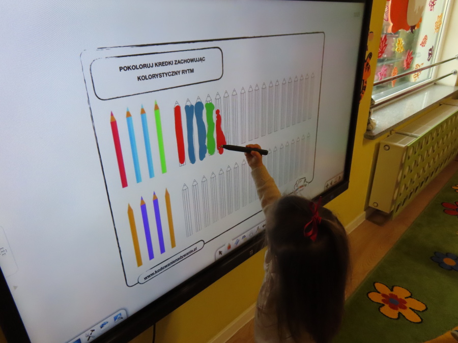 W grupie Tygrysków obchodziliśmy dziś Dzień Kredki, pełen barw i twórczej zabawy. Dzieci dowiedziały się, jak wytwarzane są kredki, a następnie z zaangażowaniem rozwiązywały zadania na tablicy multimedialnej. Na dywanie układały różne figury z kolorowych kredek, rozwijając przy tym wyobraźnię i sprawność manualną. Nie zabrakło także kolorowania – każdy uczestnik ozdabiał obrazek przedstawiający kredki, dobierając barwy według własnego pomysłu. W ramach zajęć sensorycznych przedszkolaki wspólnie przygotowały masę plastyczną, wykorzystując starte na tarce kredki świecowe jako naturalne barwniki, a następnie lepiły z niej małe figurki i kształty, ćwicząc zręczność i kreatywność