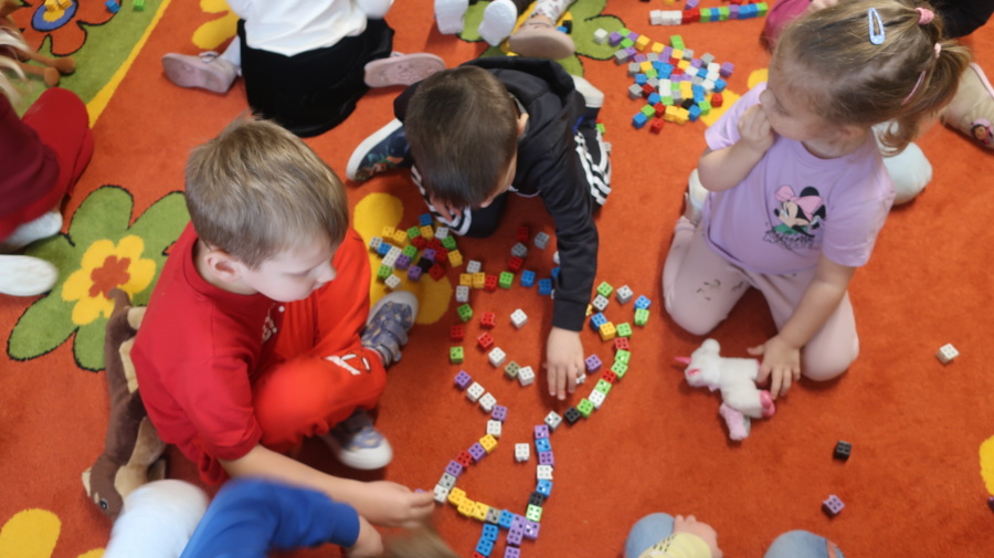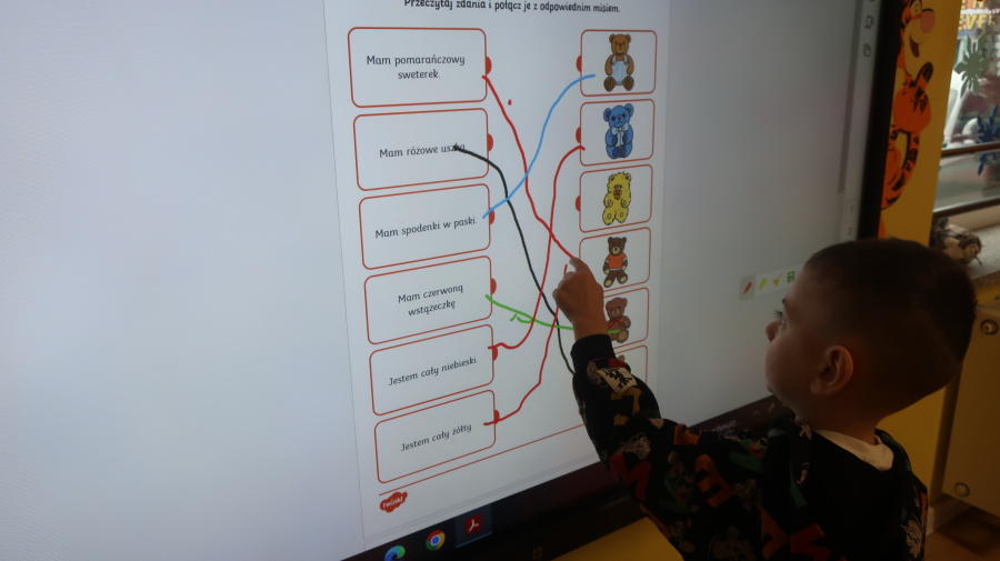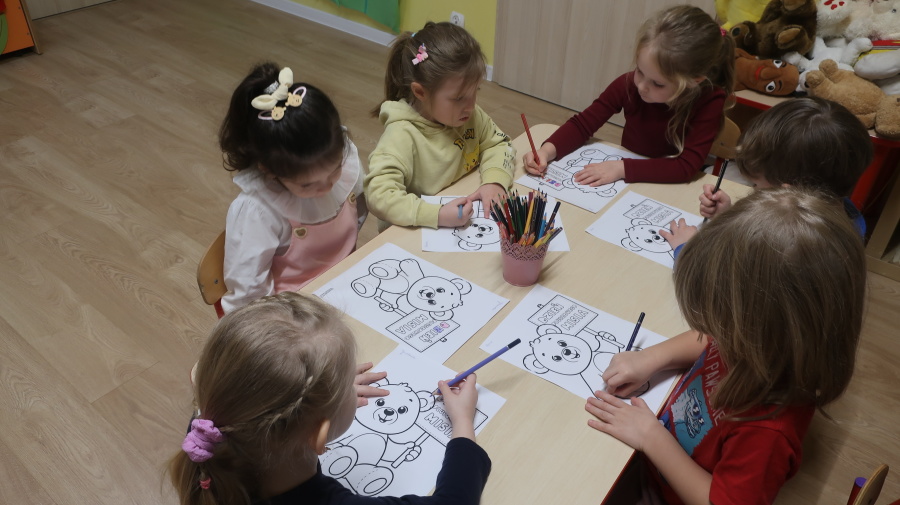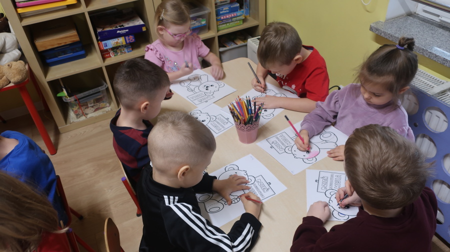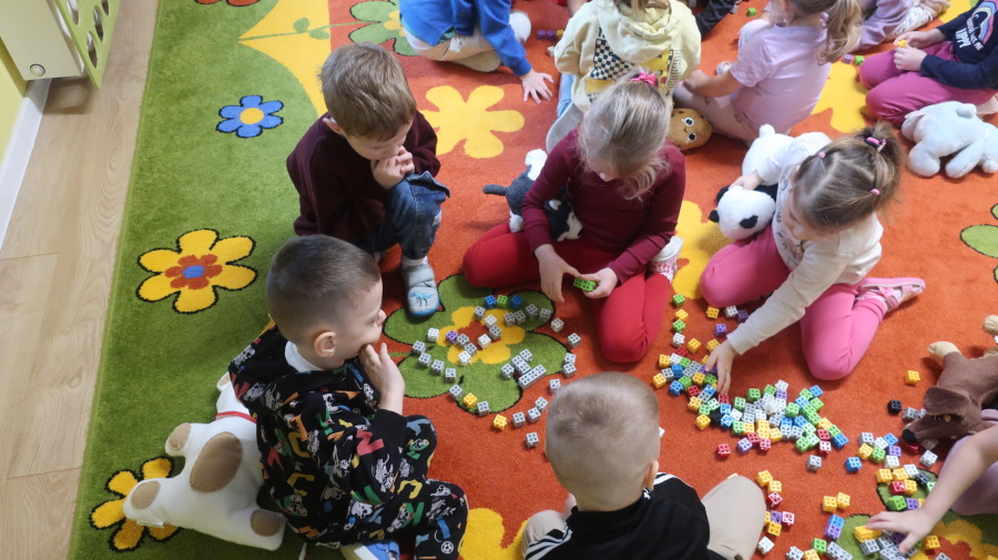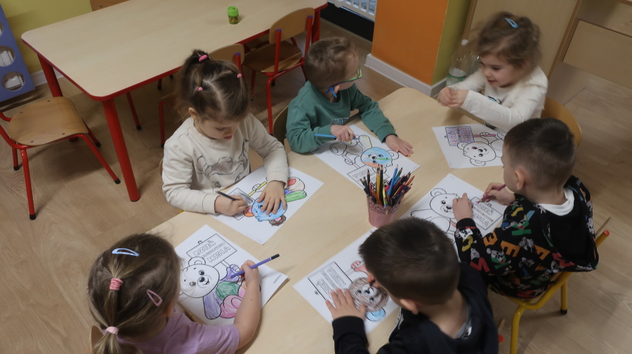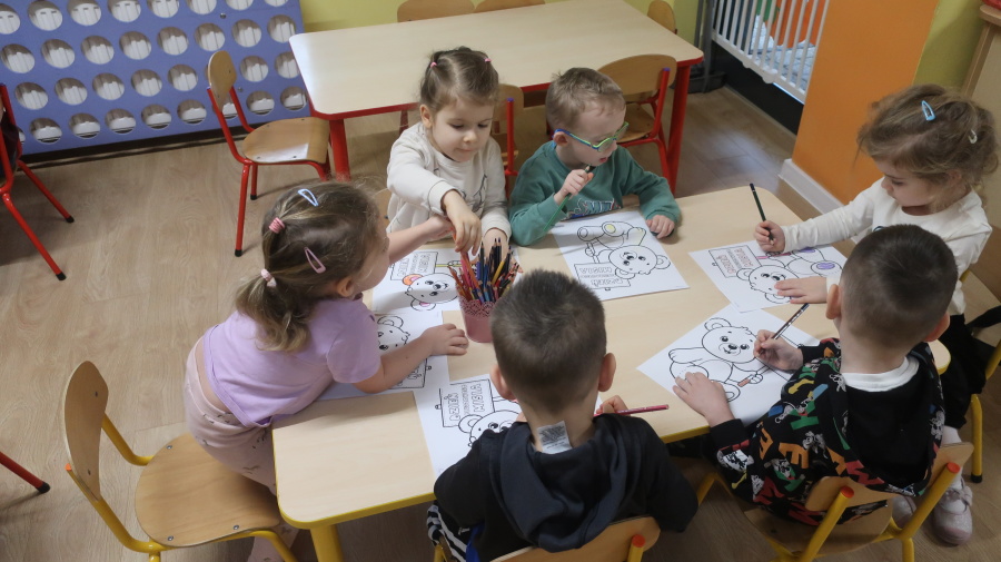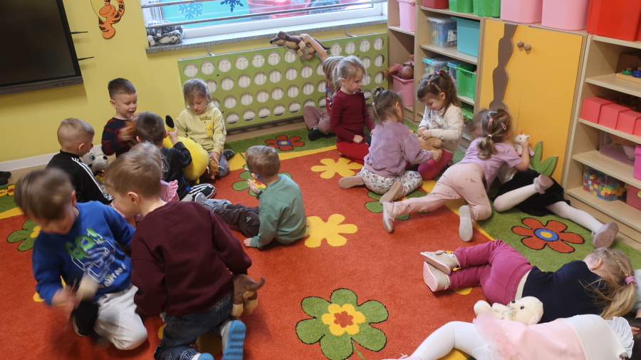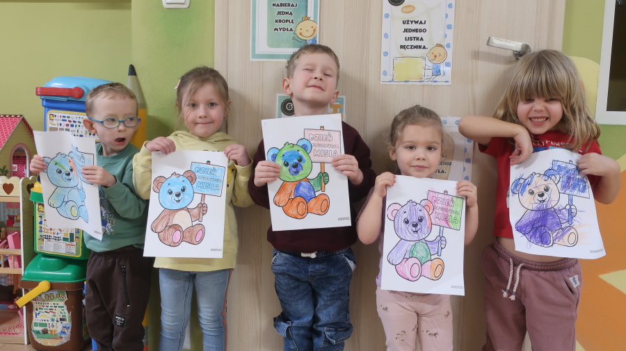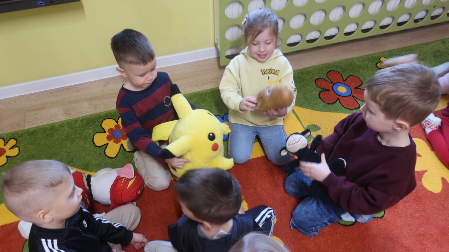 Dziś w naszej grupie świętowaliśmy Dzień Pluszowego Misia. Z tej okazji dzieci przyniosły swoje ulubione pluszaki, które na początku zajęć wzajemnie sobie przedstawiały, opowiadając o nich i bawiąc się wspólnie. Następnie obejrzeliśmy prezentację pokazującą, jak powstały pluszowe misie oraz wykonaliśmy kilka ciekawych zadań związanych z misiami. Kolejnym punktem zajęć było układanie misiów z klocków, co sprawiło dzieciom dużo radości i pozwoliło rozwijać ich kreatywność. Po zabawie wykonaliśmy pracę plastyczną polegającą na kolorowaniu obrazków, a na zakończenie dzieci miały czas na swobodną zabawę ze swoimi pluszakami.
