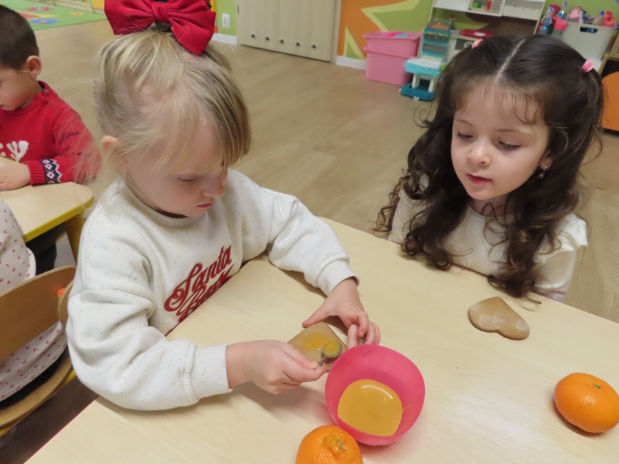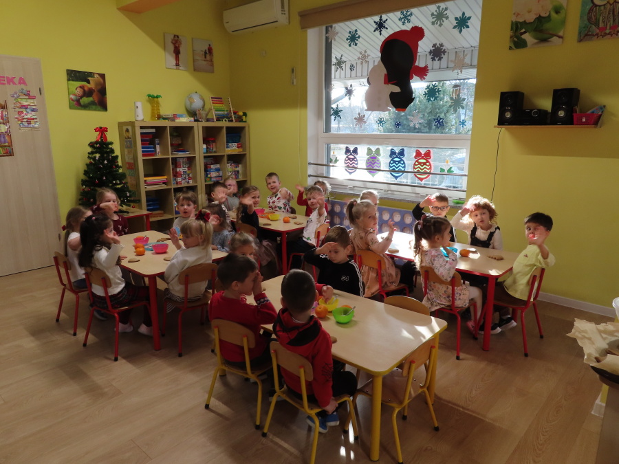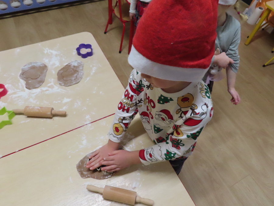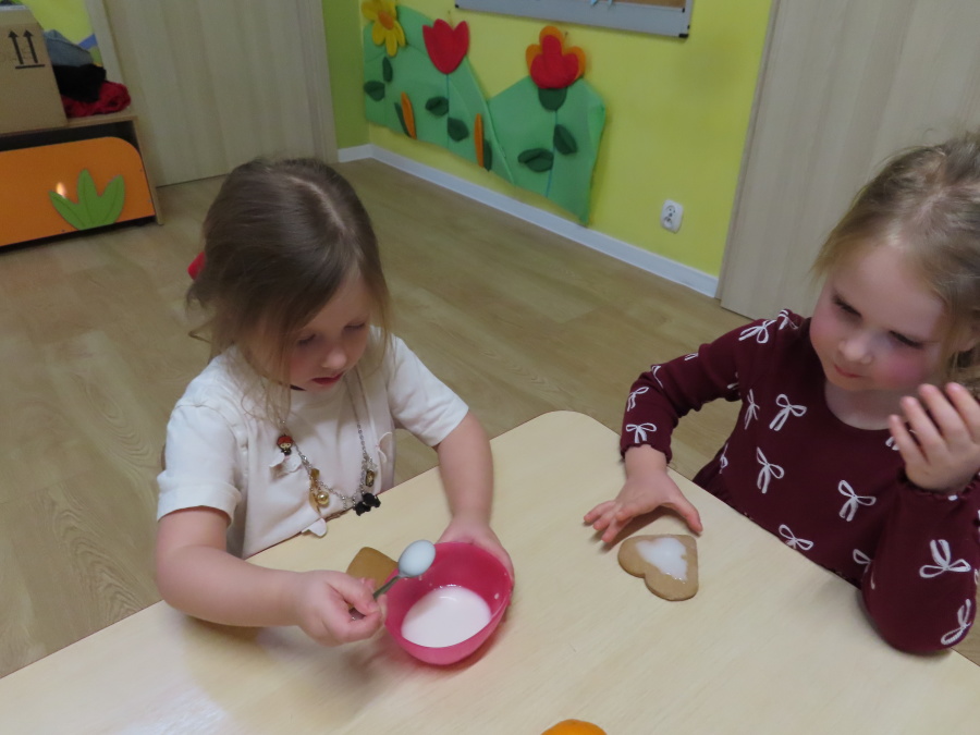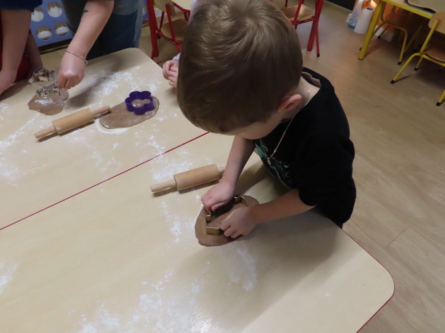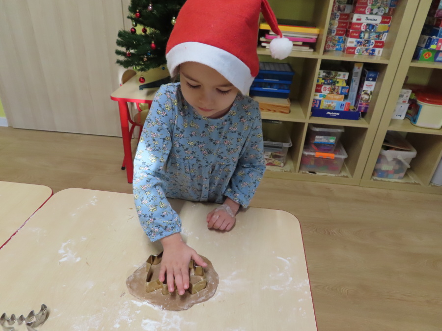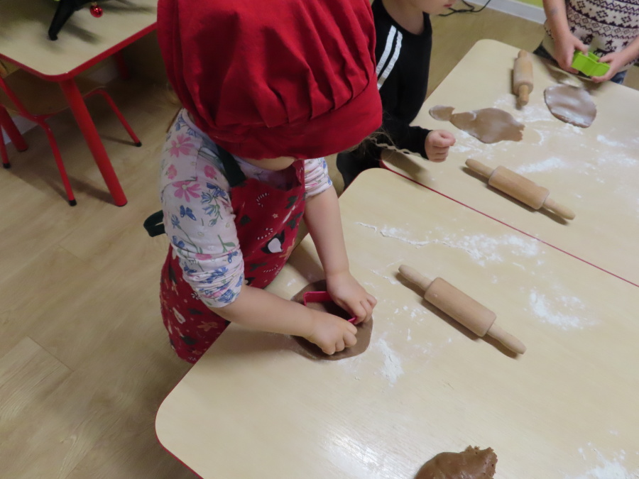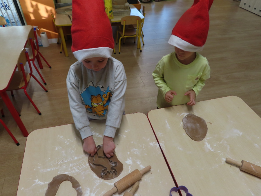 Dziś w naszej grupie rozmawialiśmy o świątecznych tradycjach związanych z wigilijnym stołem. Dzieci dowiedziały się, dlaczego na stole pojawia się 12 potraw, po co wkładamy sianko pod obrus i dlaczego zostawiamy puste nakrycie przy wigilijnym stole. Mówiliśmy też o tradycji pieczenia i ozdabiania pierniczków. Po rozmowie sami zabraliśmy się do pracy. Dzieci wyrabiały ciasto, wycinały świąteczne kształty, a potem oglądały, jak pierniczki się pieką. Gdy ostygły, każdy mógł je pięknie ozdobić kolorowym lukrem i posypkami. Na końcu wszyscy z radością zjedli swoje pyszne pierniczki.