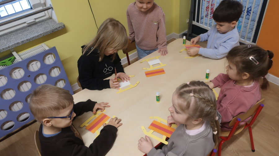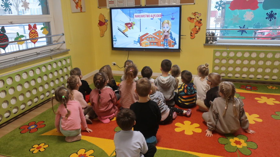 Dziś w naszej grupie Tygrysków odbyły się zajęcia pt. „Zimowa rozgrzewka – zawody sportowe”. ⛄️❄️????️Na początku dzieci obejrzały film edukacyjny dotyczący zimowych dyscyplin sportowych, dzięki któremu poznały różne sporty uprawiane zimą. Następnie wzięły udział w quizach utrwalających zdobytą wiedzę. Kolejnym etapem zajęć było wykonanie pracy plastycznej – sanek, podczas której dzieci rozwijały sprawność manualną i kreatywność. ❄️☃️????️ Na zakończenie zajęć wyszliśmy na zewnątrz, gdzie dzieci miały okazję pobawić się na śniegu i aktywnie spędzić czas na świeżym powietrzu.
