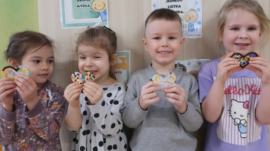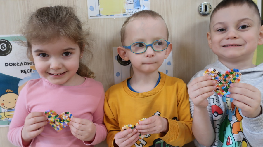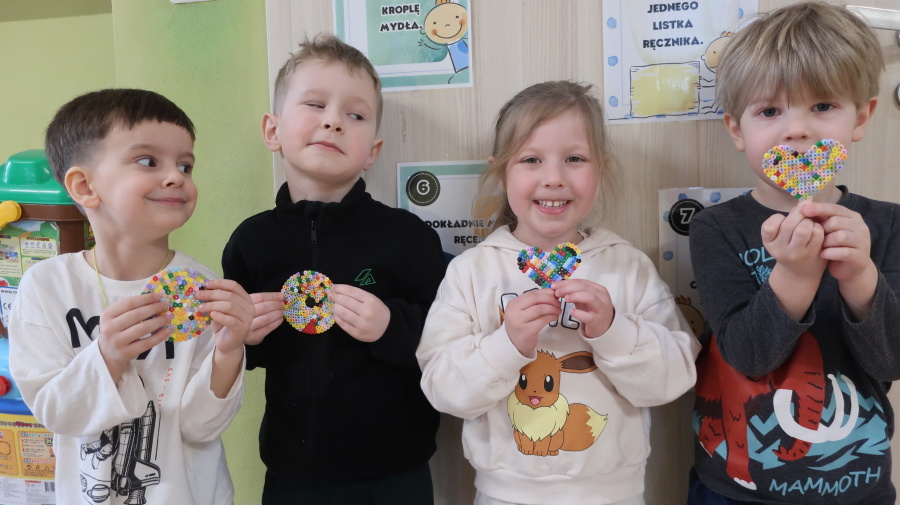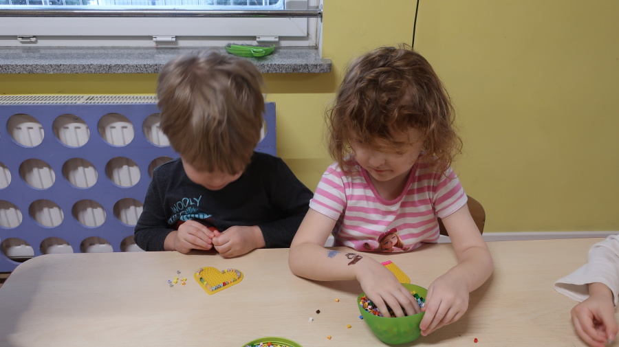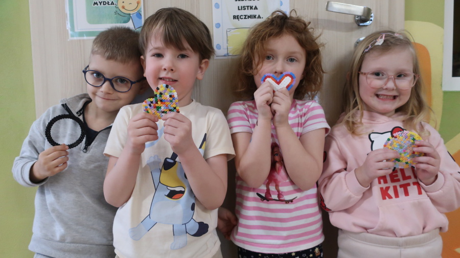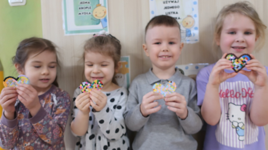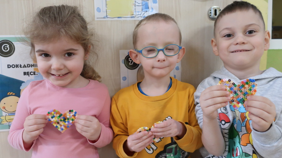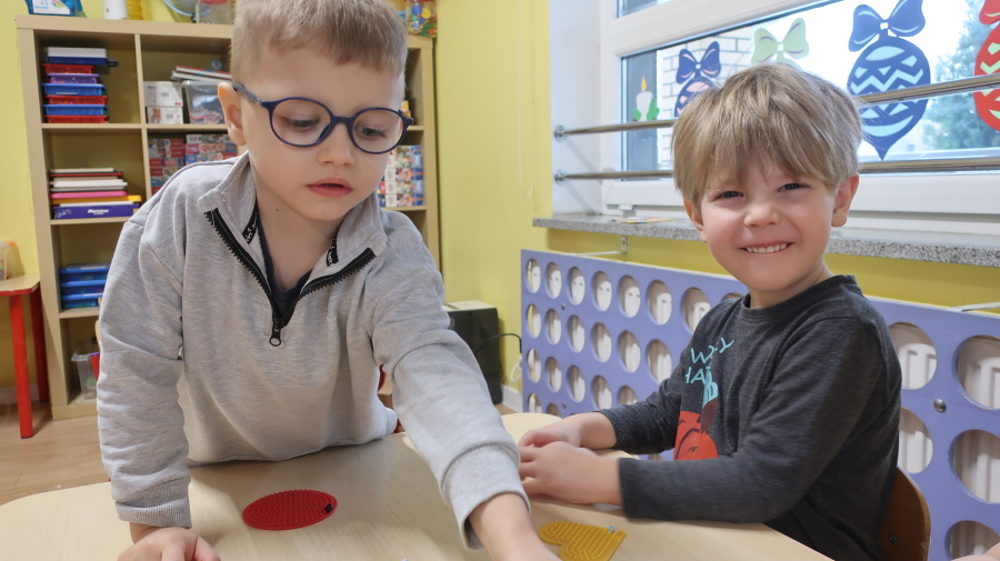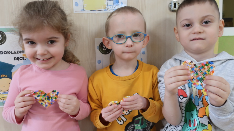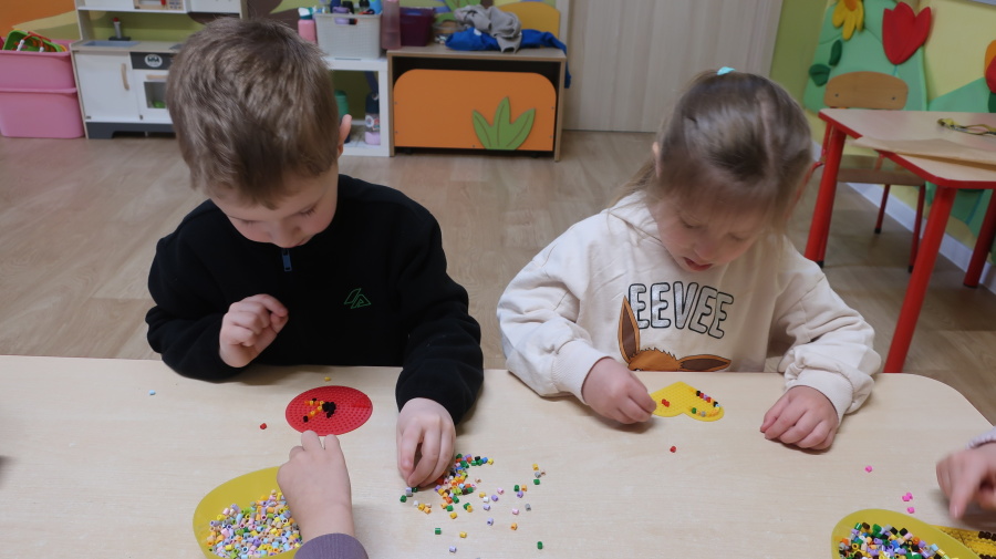 Sensoryka w grupie Tygrysków Podczas dzisiejszych zajęć sensorycznych dzieci układały koraliki do prasowania według własnych pomysłów. Aktywność rozwijała sprawność manualną, koordynację wzrokowo-ruchową oraz koncentrację uwagi. Zajęcia sprzyjały także ćwiczeniu cierpliwości i kreatywności dzieci.
