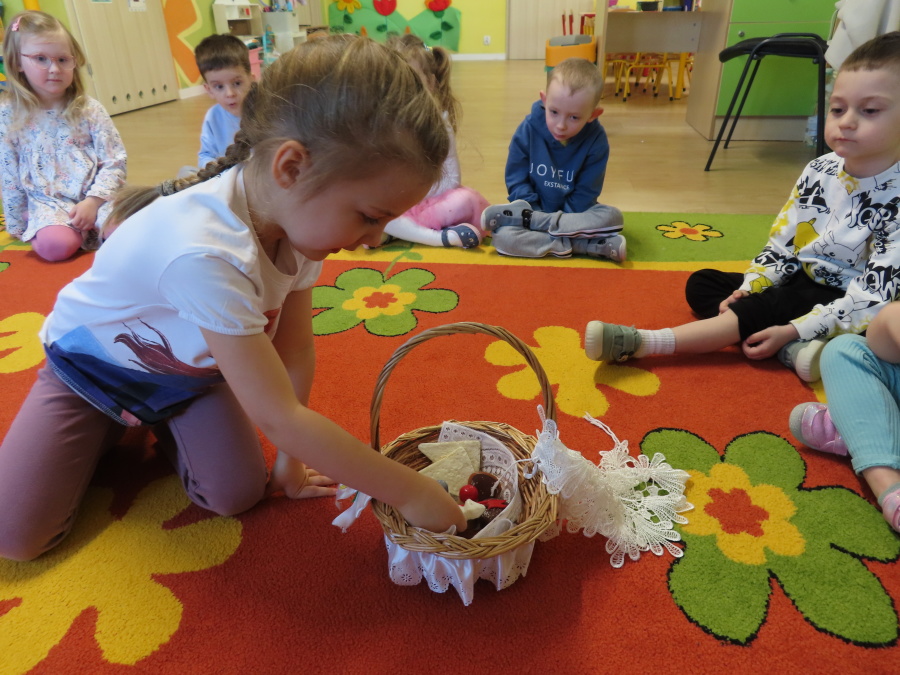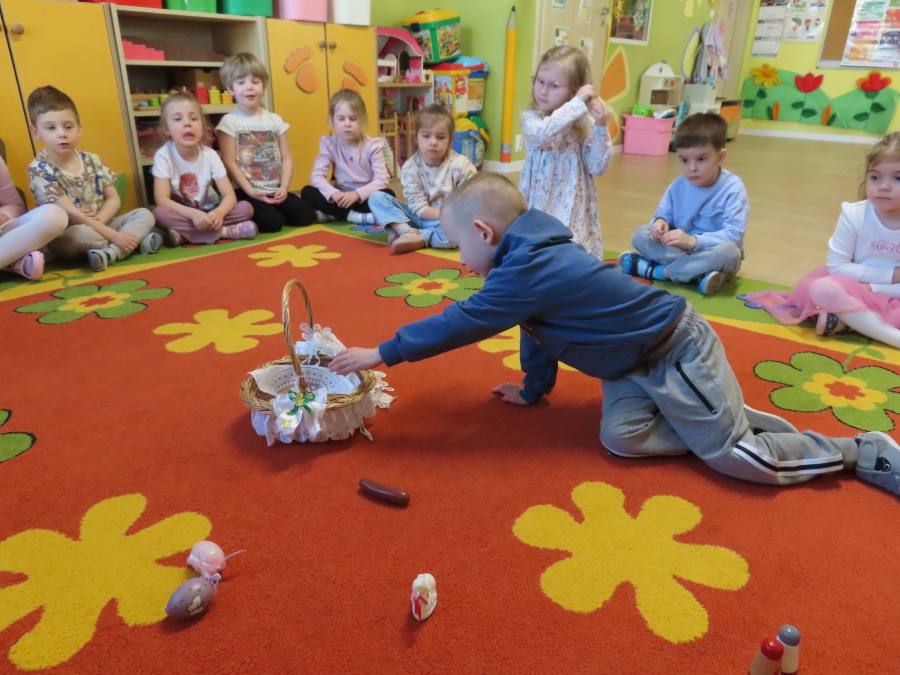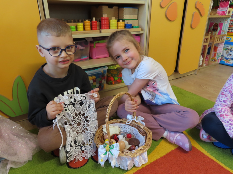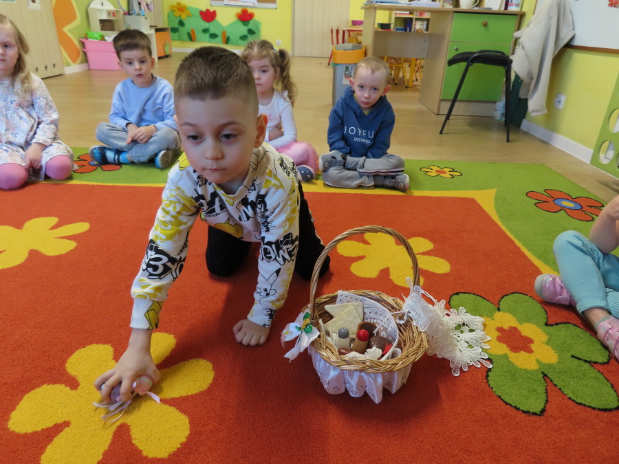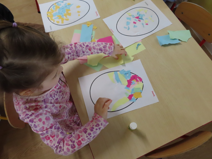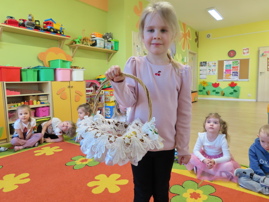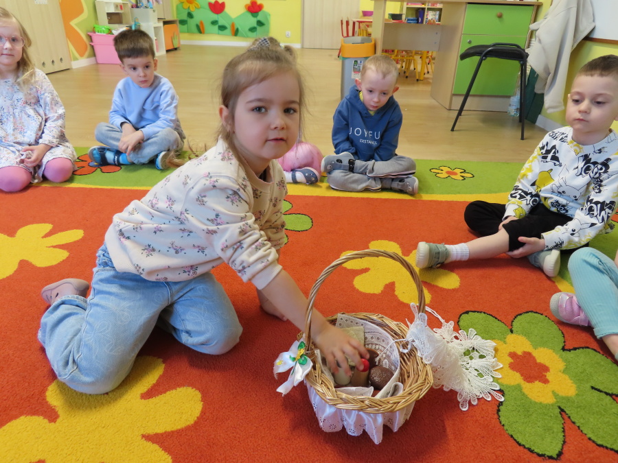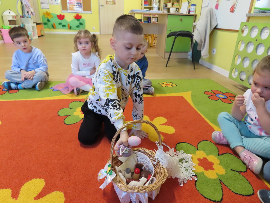 Podczas dzisiejszych zajęć Tygryski zapoznały się z tradycjami wielkanocnymi. Omówiliśmy zwyczaje związane z przygotowaniem palmy wielkanocnej, przygotowaniem i święceniem pokarmów, wykonywaniem pisanek oraz przygotowaniem Wielkanocnych potraw. Dzieci dowiedziały się, jakie produkty wkładamy do koszyczka oraz jakie jest ich symboliczne znaczenie. Zajęcia miały charakter wzbogacający wiedzę o polskich tradycjach. W części praktycznej dzieci wykonały pracę plastyczną – pisanki metodą wydzieranki, rozwijając swoją kreatywność, sprawność manualną oraz estetykę wykonania.