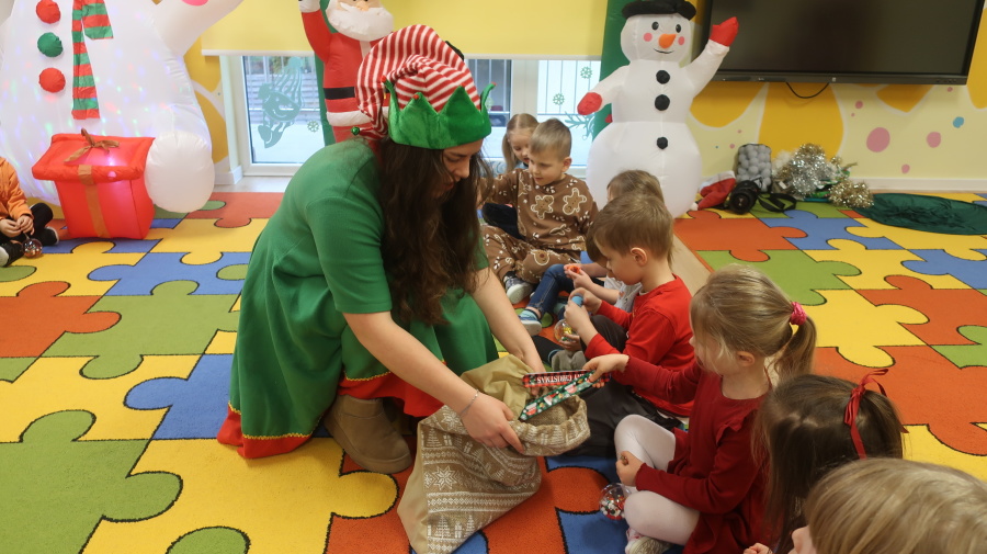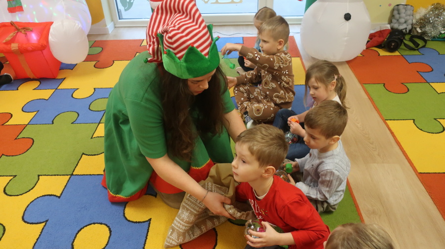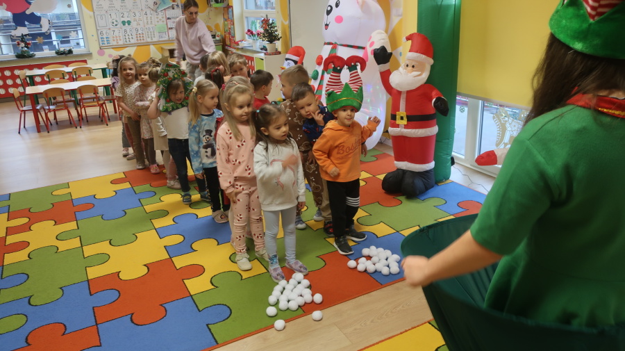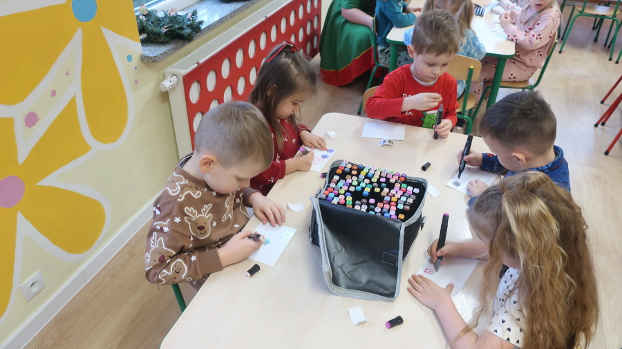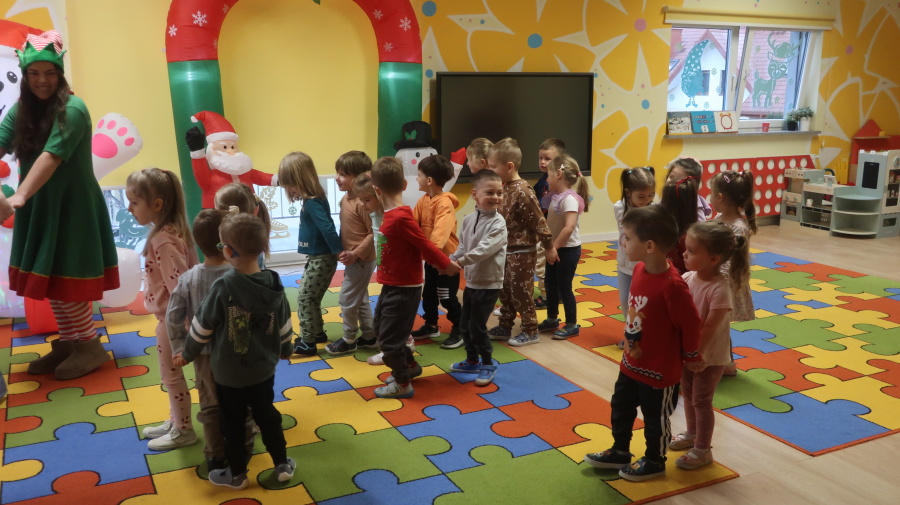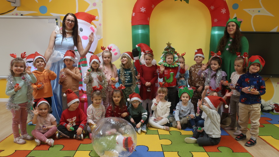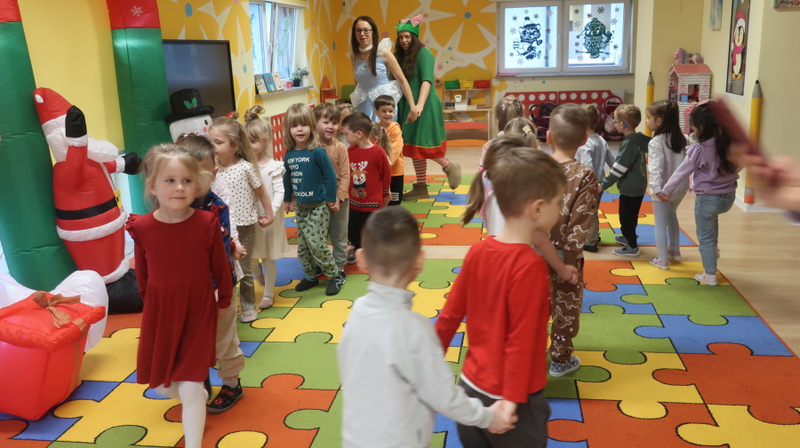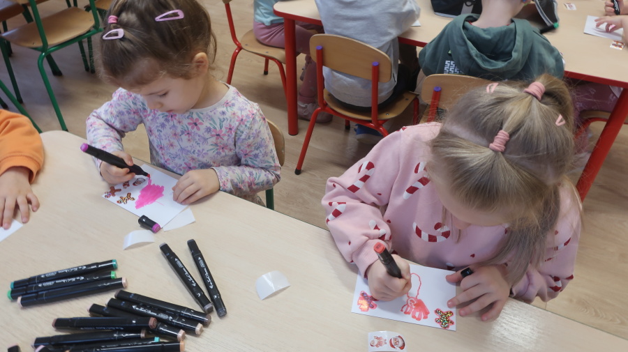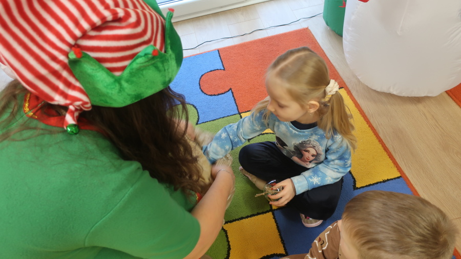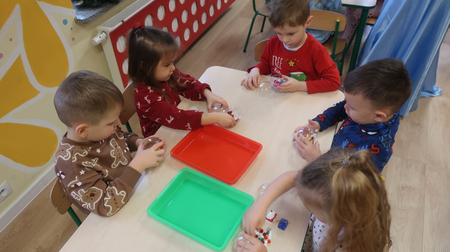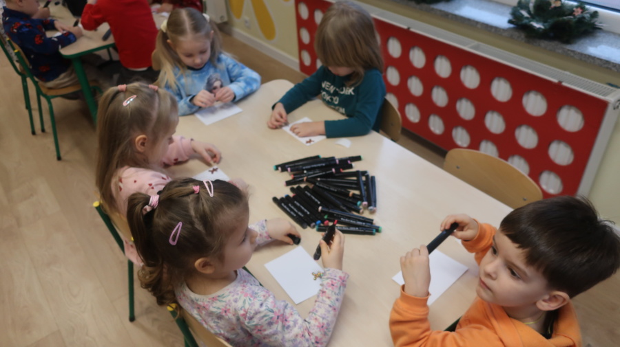 W grupie Tygrysków odbyły się warsztaty świąteczne pełne kreatywnego zamieszania. Dzieci tworzyły kartki i bombki tak zaangażowanie, że nawet Mikołaj byłby pod wrażeniem! Brokat fruwał jak śnieg na biegunie północnym, a świąteczna muzyka zachęcała do tańców, podskoków i… kilku nieplanowanych piruetów. Tygryski bawiły się doskonale, a świąteczny nastrój udzielił się absolutnie każdemu! ????✨
