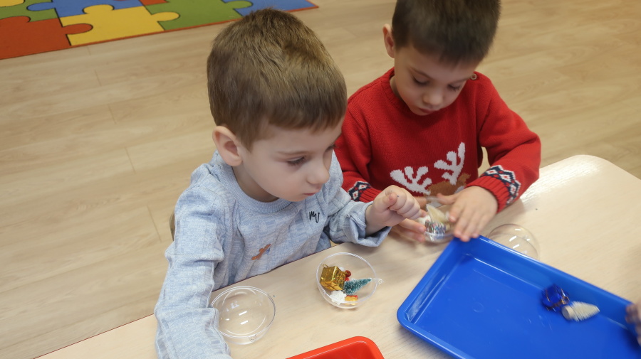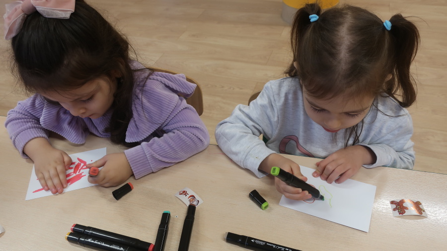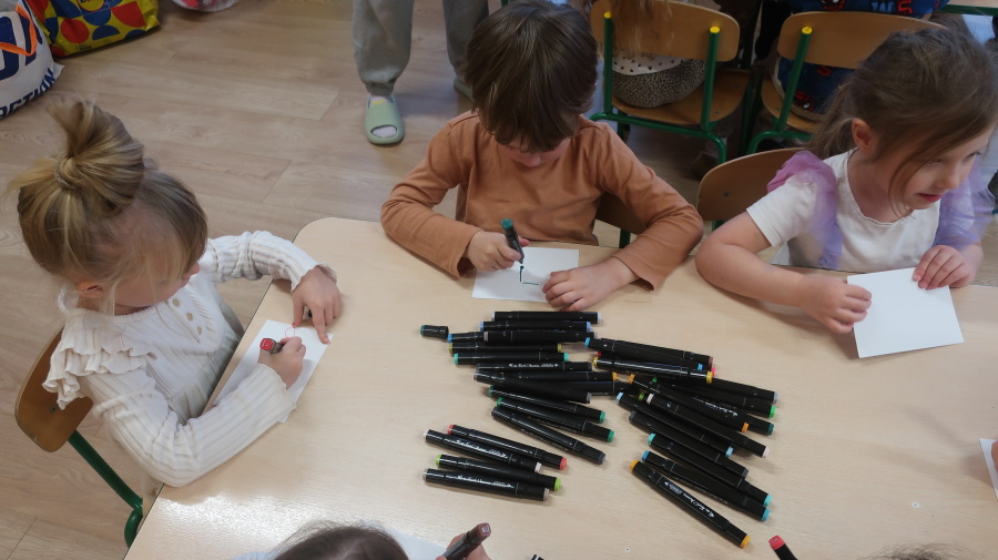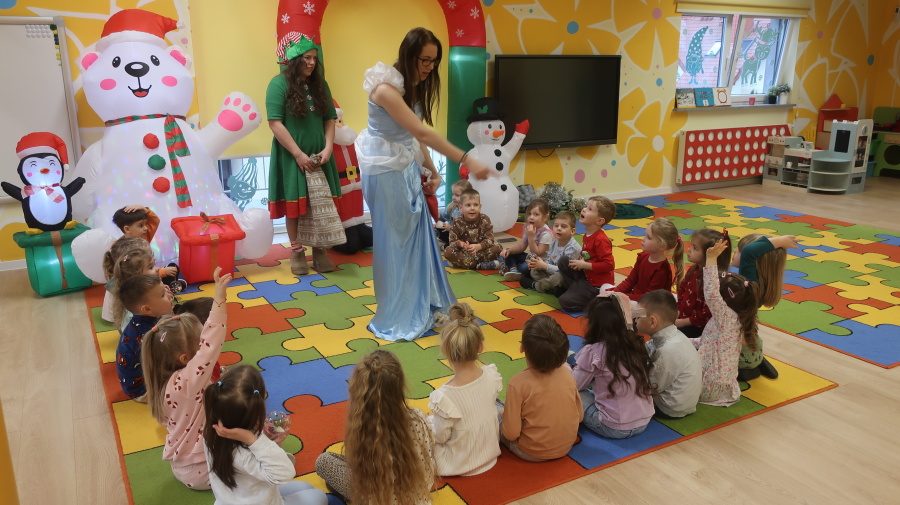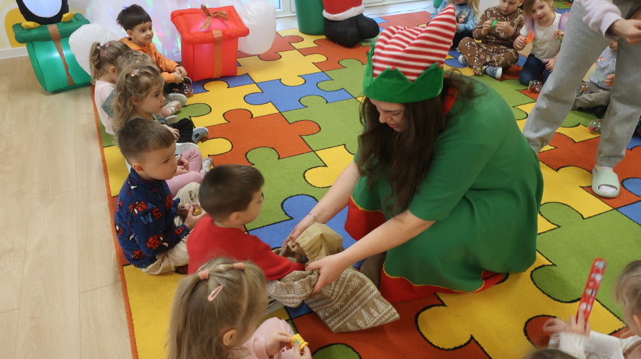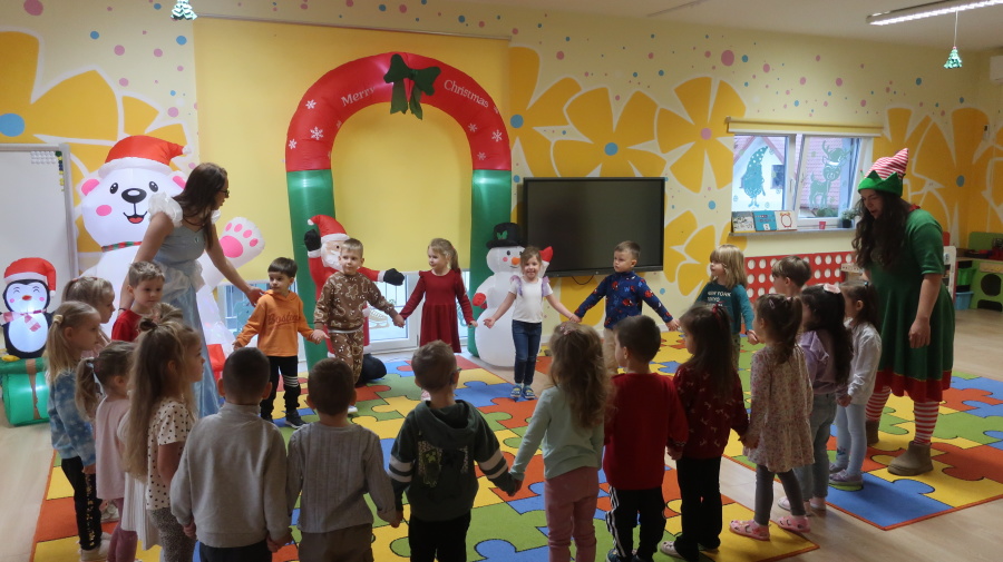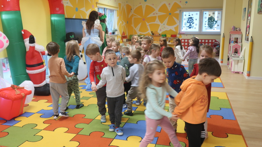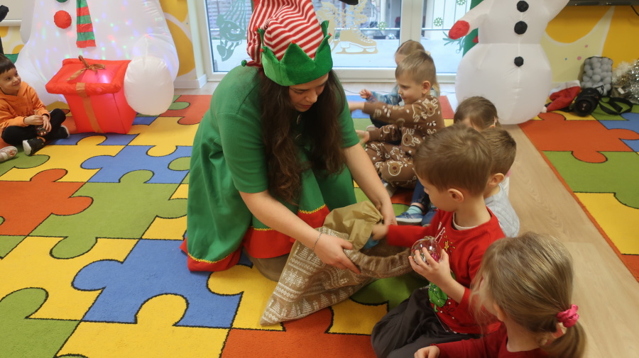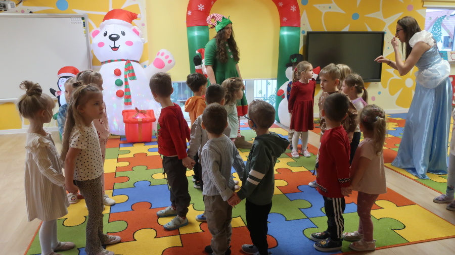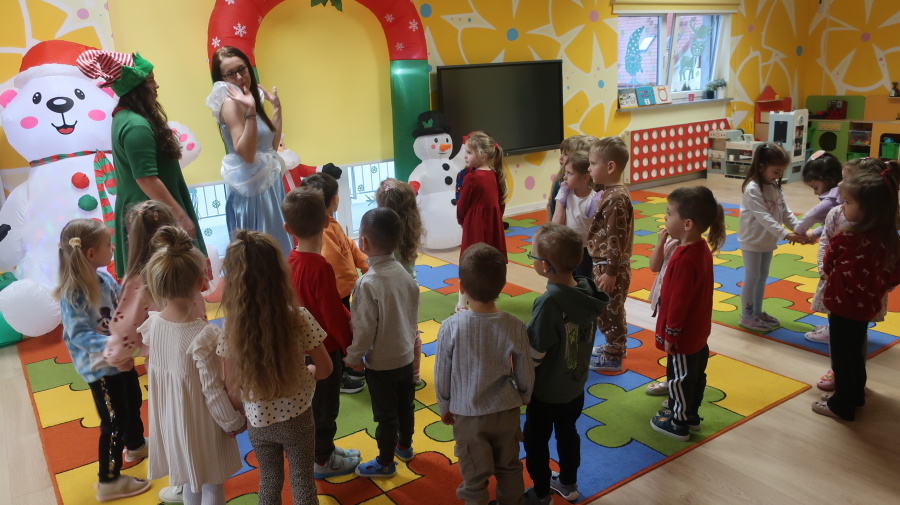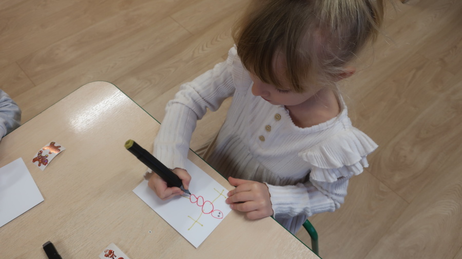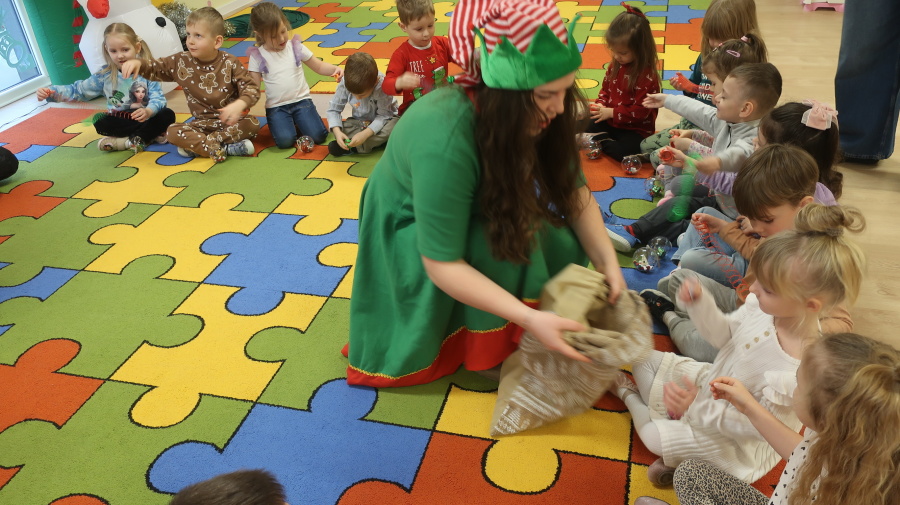 W grupie Tygrysków odbyły się warsztaty świąteczne pełne kreatywnego zamieszania. Dzieci tworzyły kartki i bombki tak zaangażowanie, że nawet Mikołaj byłby pod wrażeniem! Brokat fruwał jak śnieg na biegunie północnym, a świąteczna muzyka zachęcała do tańców, podskoków i… kilku nieplanowanych piruetów. Tygryski bawiły się doskonale, a świąteczny nastrój udzielił się absolutnie każdemu! ????✨