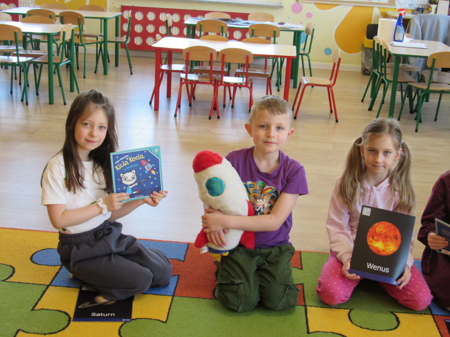 Dziś w grupie Kropeczek panowała prawdziwie kosmiczna atmosfera! Dzieci poznały układ słoneczny i z wielkim zainteresowaniem uczestniczyły w przygotowanych zajęciach. Każdy przyniósł z domu swoją ulubioną książkę, robocika lub inną ciekawą zabawkę, dzięki czemu mogliśmy wspólnie dzielić się swoimi pasjami i zainteresowaniami. Zabawa została połączona z nauką – dzieci poznawały nowe pojęcia, zadawały pytania i z radością odkrywały świat. Było bardzo wesoło, sympatycznie i pouczająco. To był dzień pełen uśmiechu, współpracy i kreatywności! ????✨